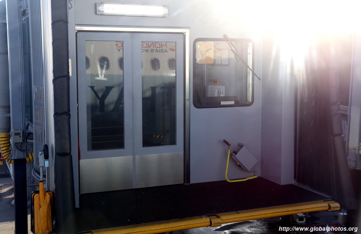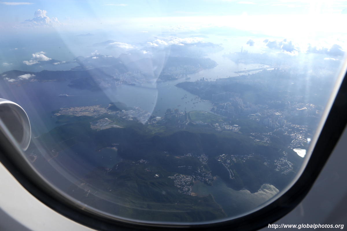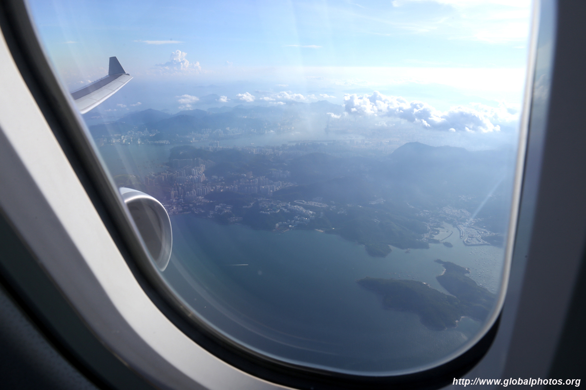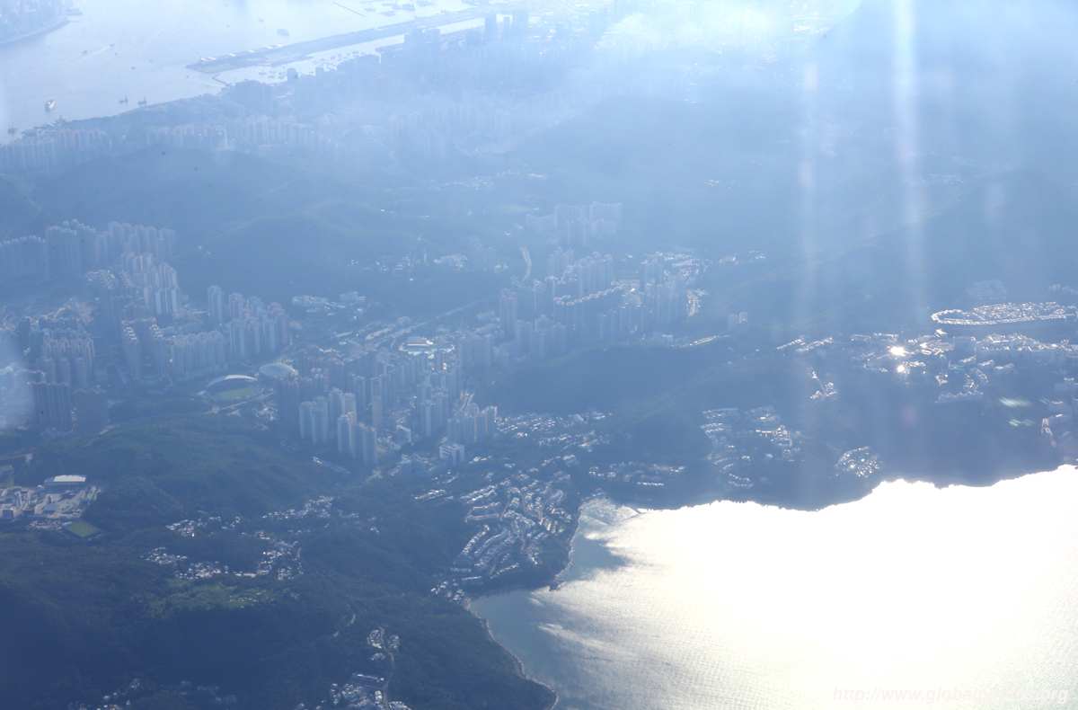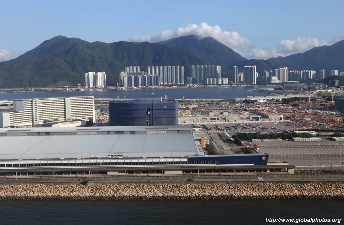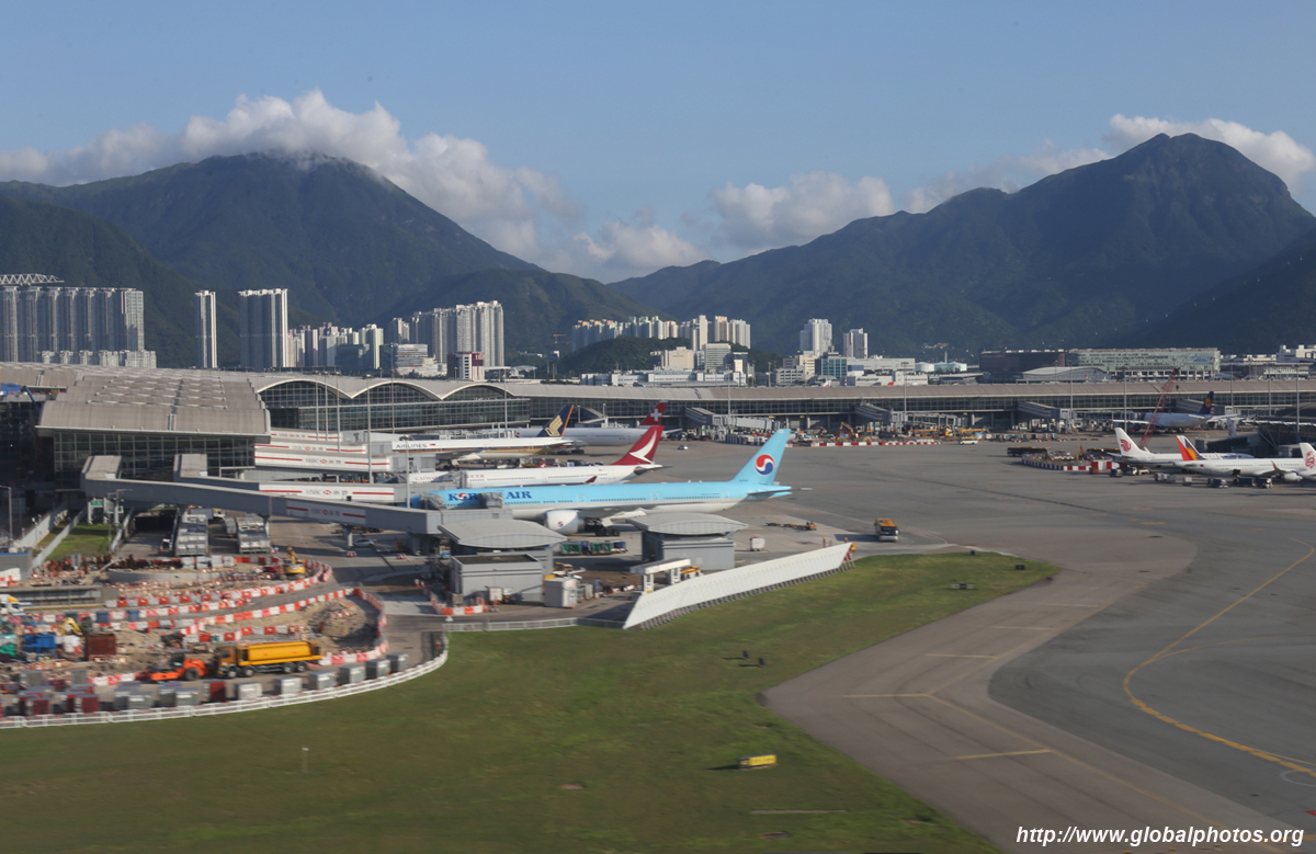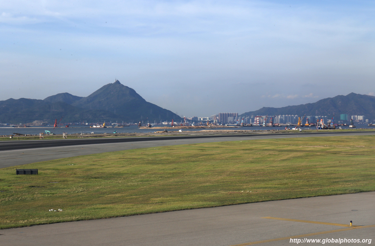 On final approach, the boundary facilities of the new bridge to Macau and Zhuhai are visible, mostly empty. Cars and trucks still don't frequent this new piece of infrastructure yet, although buses are packed full even if they depart every few minutes.