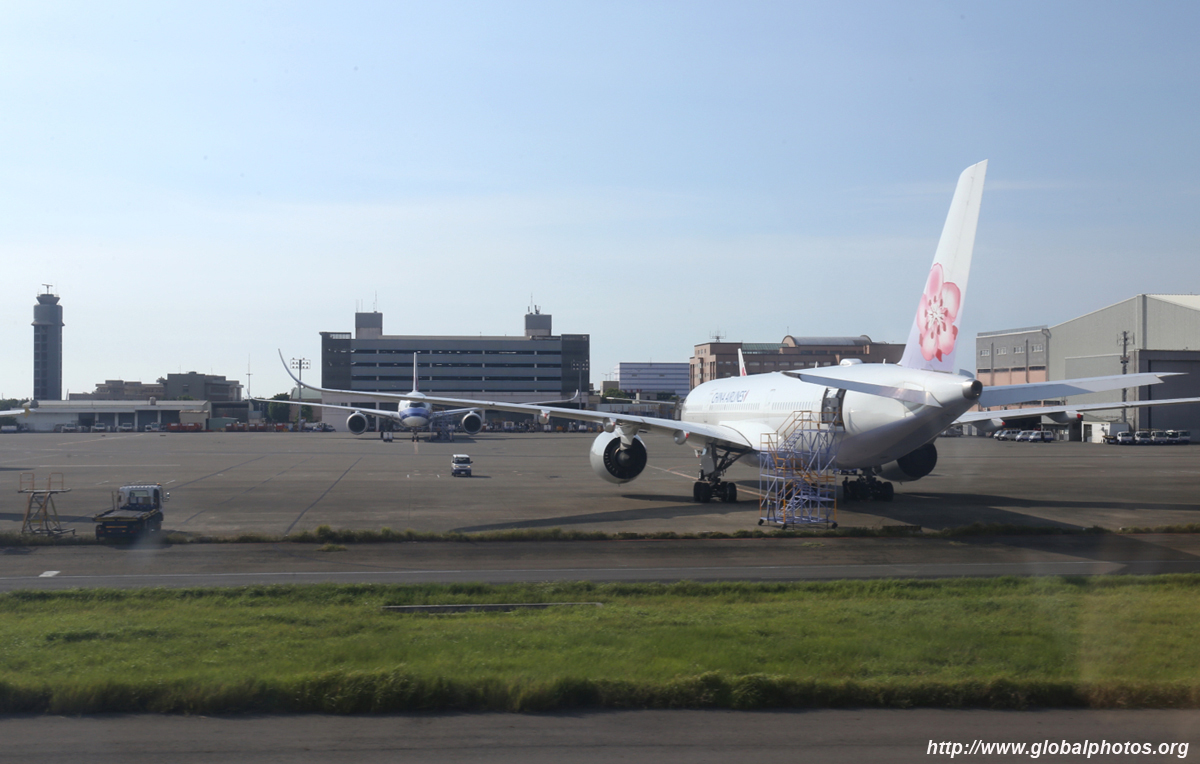 It was a short taxi to the runway. A number of China Airlines planes were parked at the tarmac, including a special livery jet.
