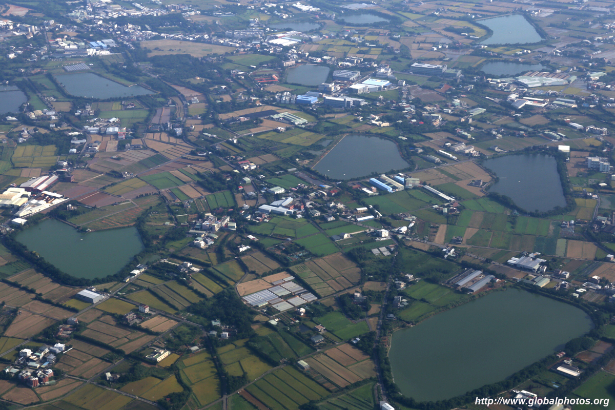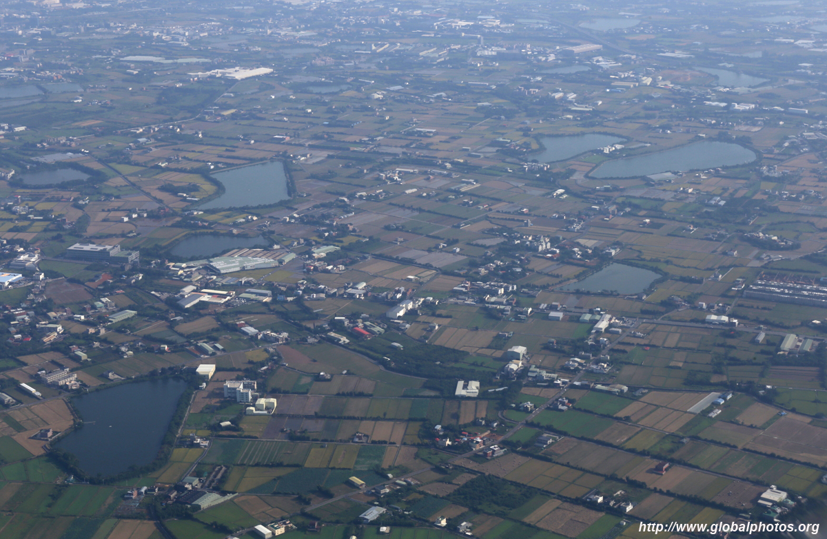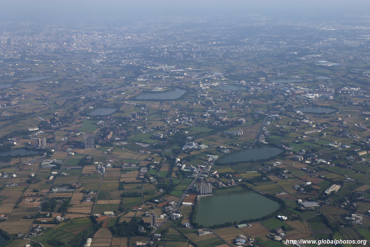 We took off towards the south, and my window had a very nice view of the surrounding countryside, framed by the urban areas beyond.