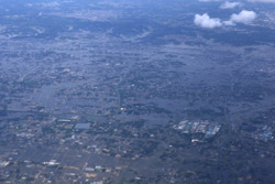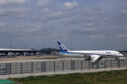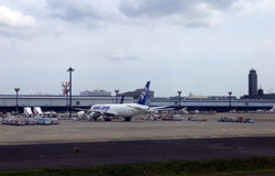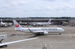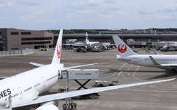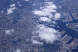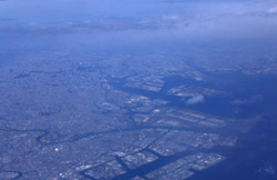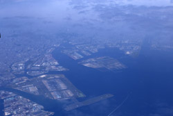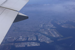 We took off towards the north and looped around. There was some cloud cover with sunny breaks over Tokyo this morning, but soon, Haneda Airport and Tokyo Bay came into view and the skies cleared over the city.