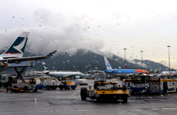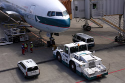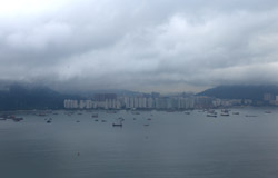 The flight was generally smooth with a few mild bumps here and there. As we approached Hong Kong, the captain came back to update us on the arrival time. If we were making a straight approach, the earliest we could arrive would be 3:05, still a very decent time, but due to bad weather, we would hold for 30 minutes and eventually arrived an hour late at a remote stand.