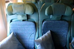The boarding time was revised to 10:15 at the gate display and there weren't enough seats for all of us. Finnair was getting ready to board next to us and there wasn't enough space to put all the lines in. Nevertheless, boarding was fairly orderly and I made it to my window seat, which was in the old style and legroom was quite good.