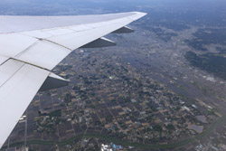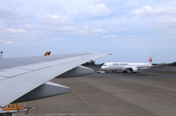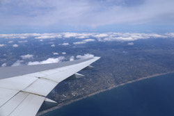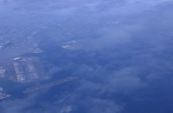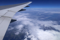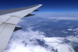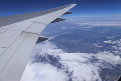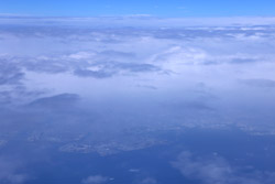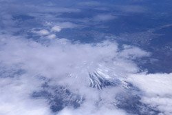 I chose the right window to get decent aerials of Japan upon departure. Mount Fuji soon came into view, shrouded by clouds but the snow-capped top was still visible. Mornings remained cool in Tokyo so it was not yet T-shirt weather.