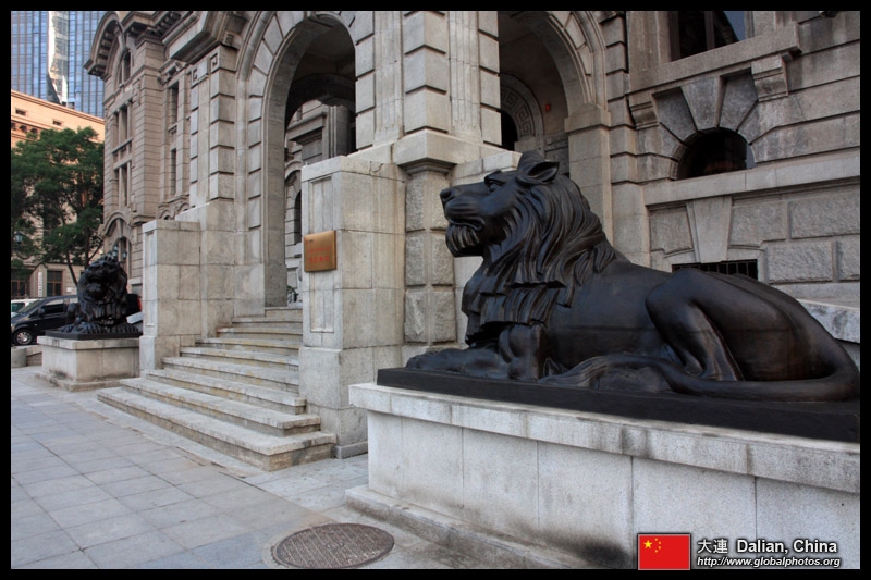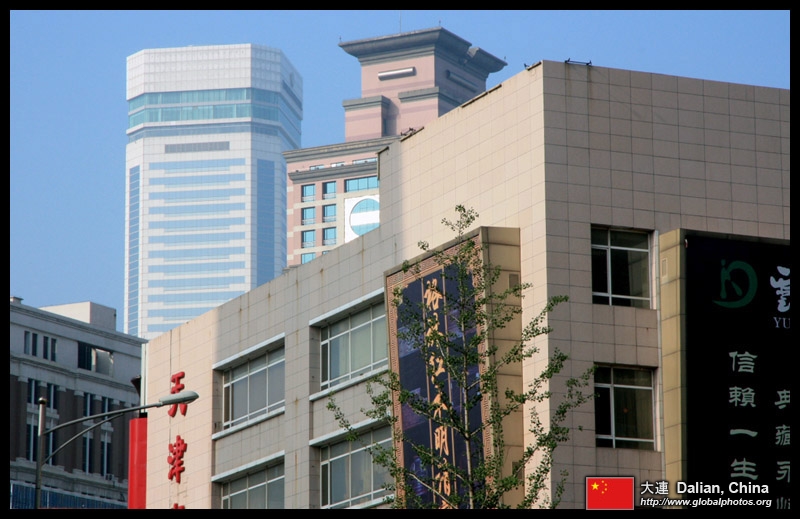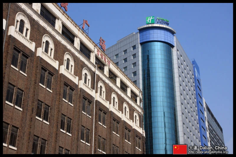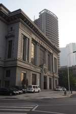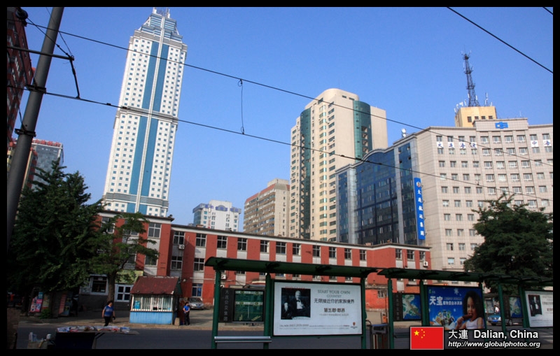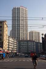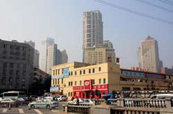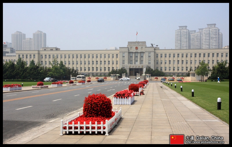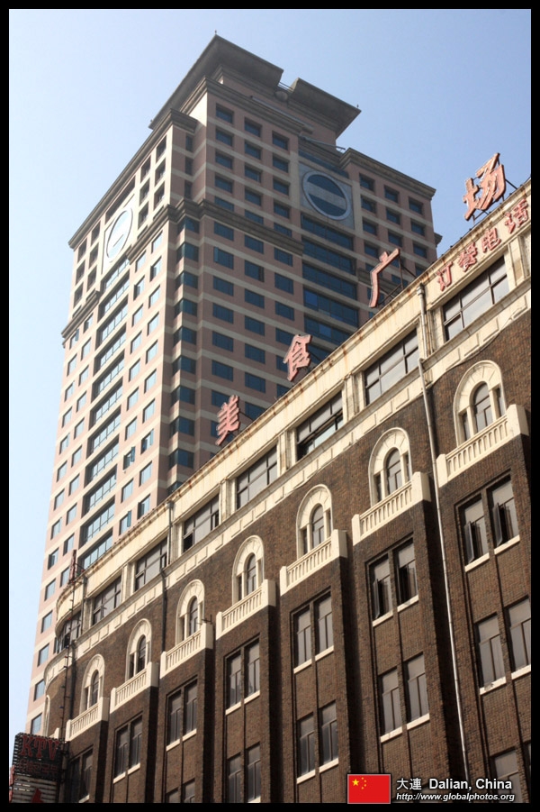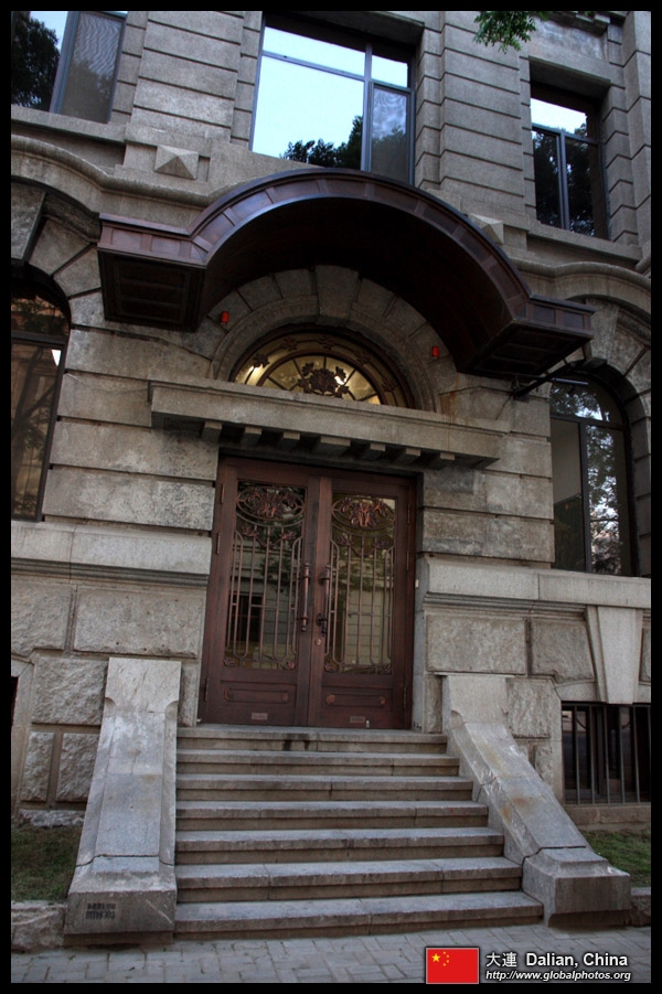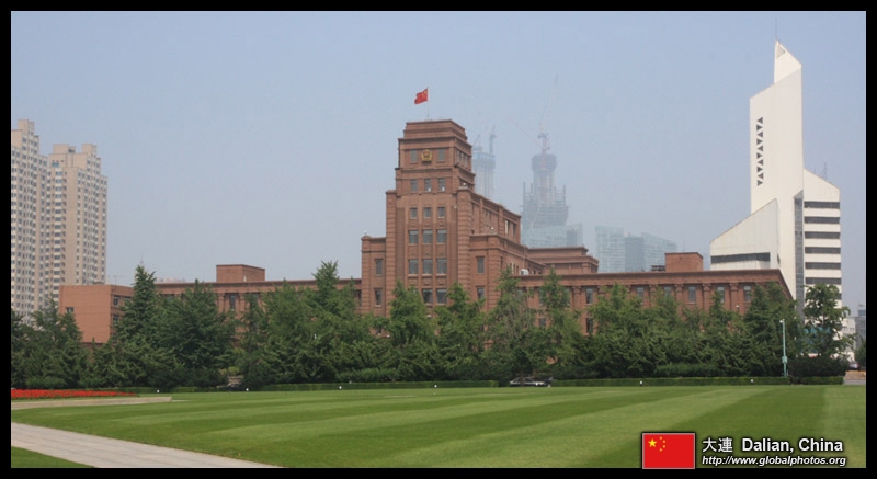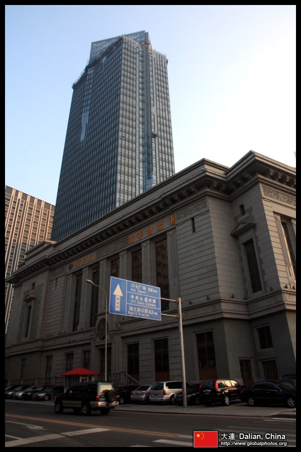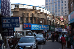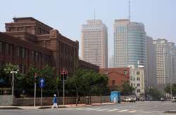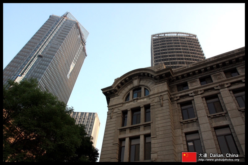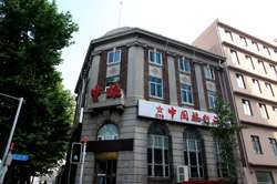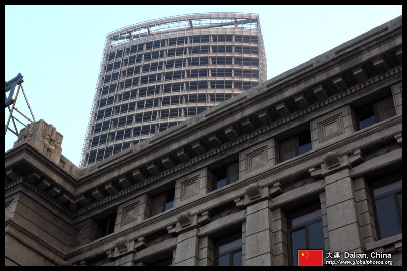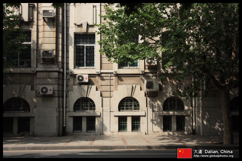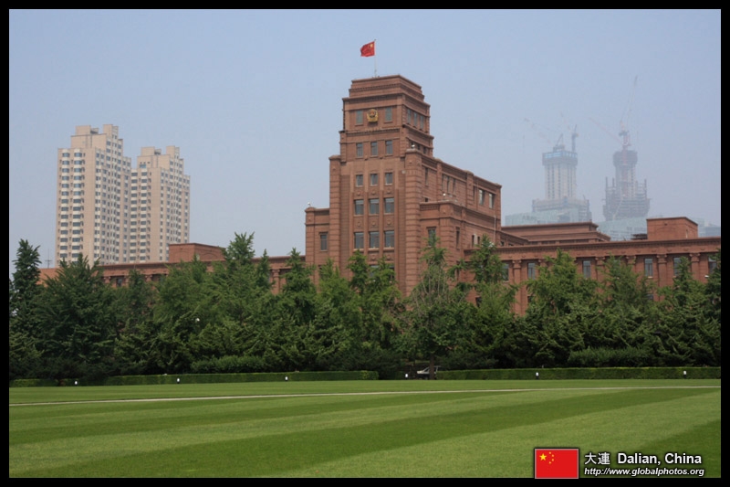 Dalian is a city of squares. Minzhu Square is to the northeast of Zhongshan Square, but it isn't a pedestrian spot, but more a spacious tram stop, bordered by buildings like this historic one.