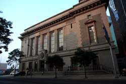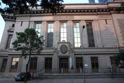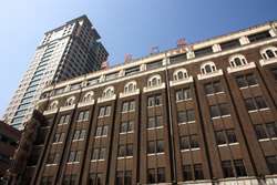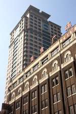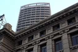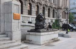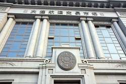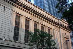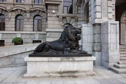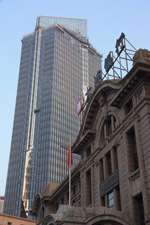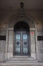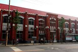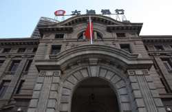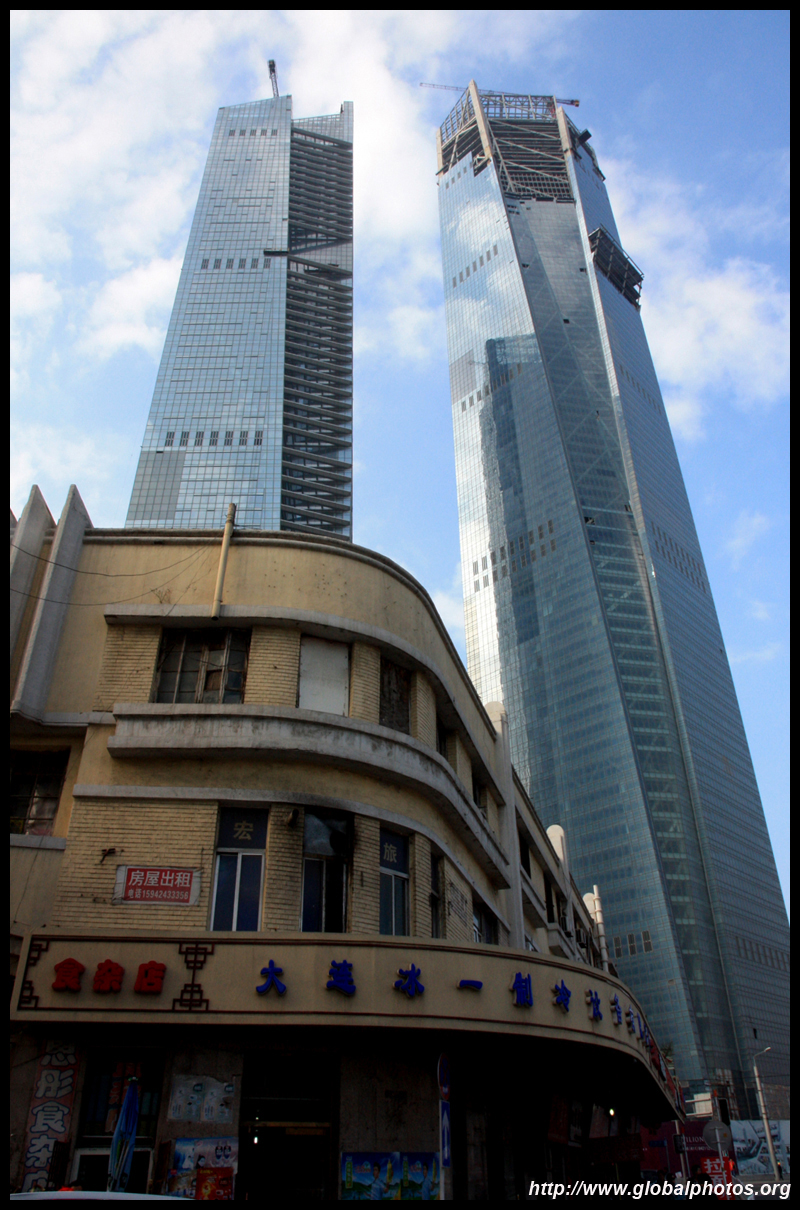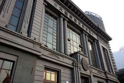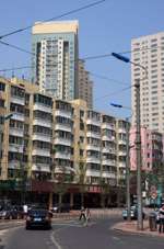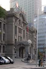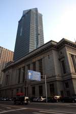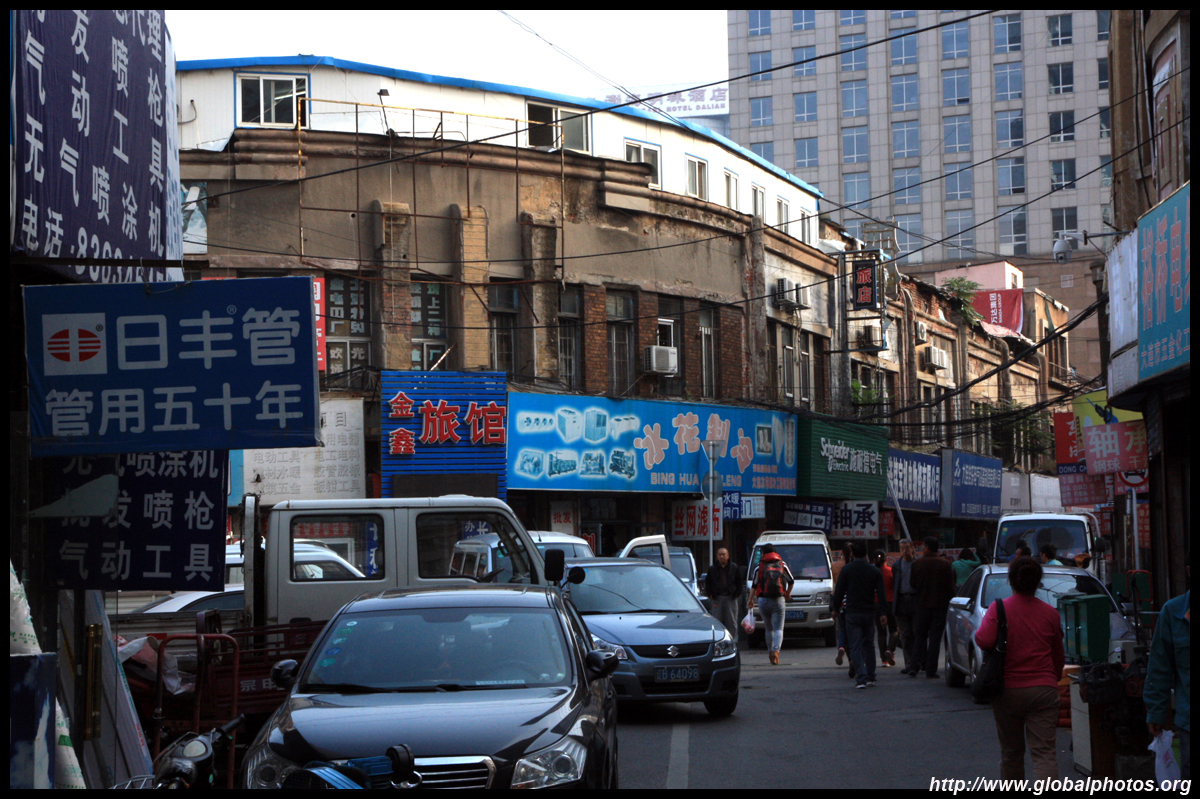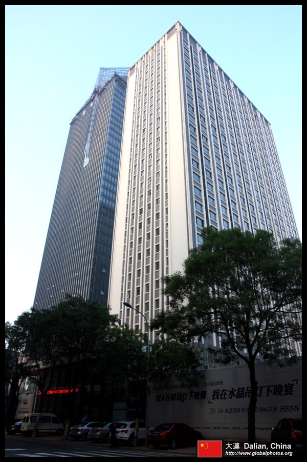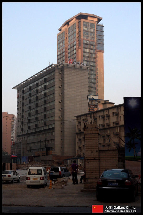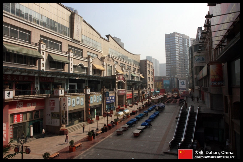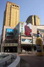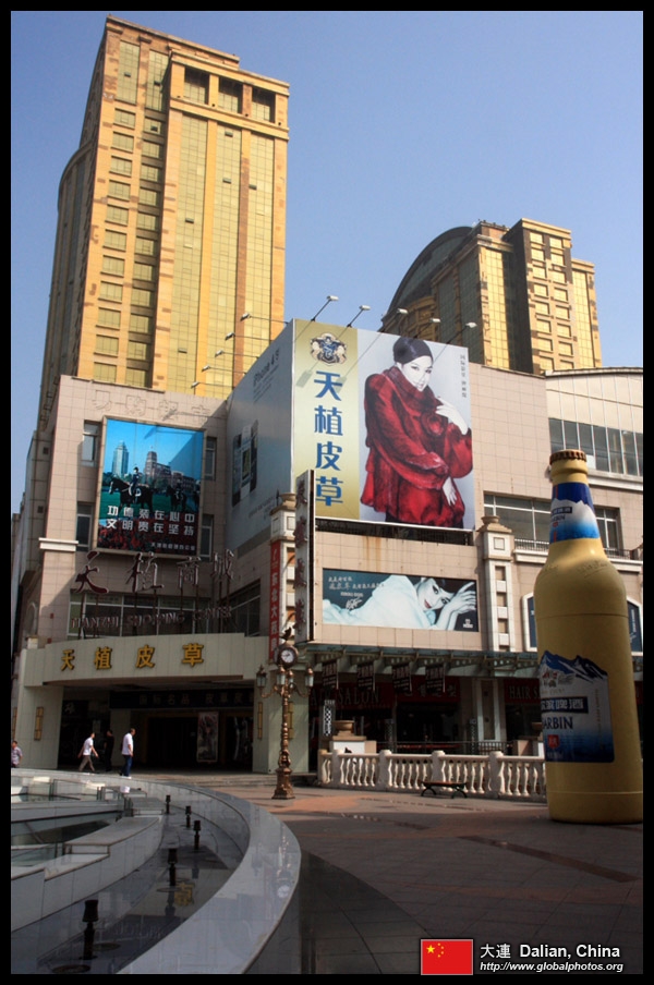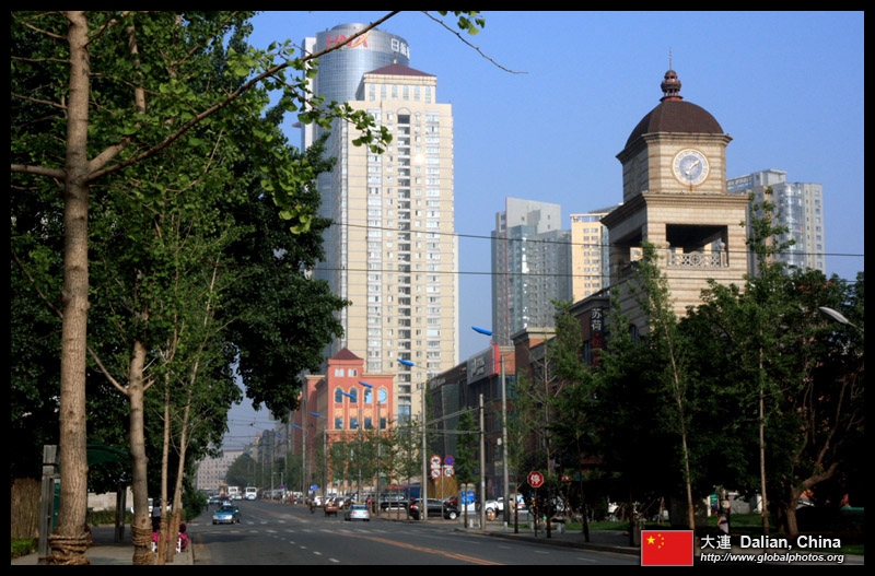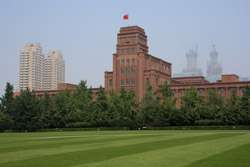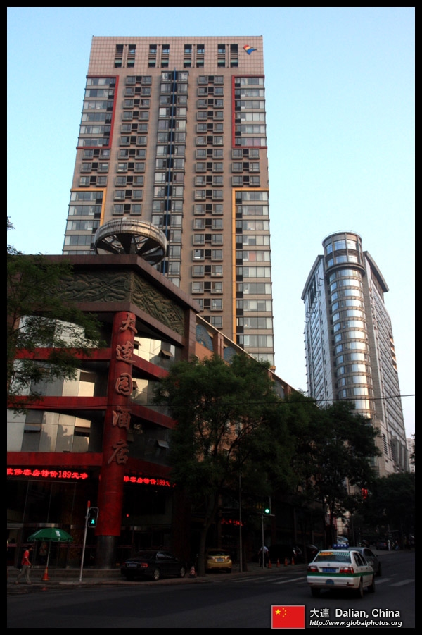 Dalian is a city of squares. Minzhu Square is to the northeast of Zhongshan Square, but it isn't a pedestrian spot, but more a spacious tram stop, bordered by buildings like this historic one.