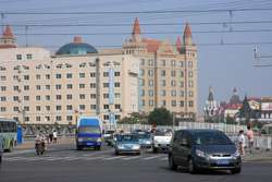 I head west along Changjiang Road towards the modern Hotel Nikko.