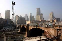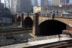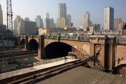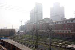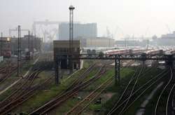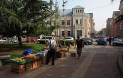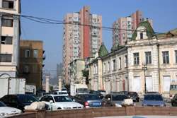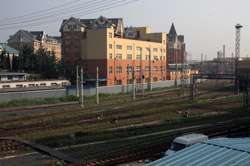 Railroad tracks separate Russian Street from the rest of the city centre.