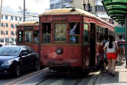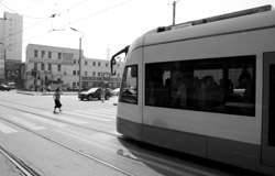 Not all stops have dedicated platforms. Many are right on the street, and passengers have no place to safely wait along the tracks.