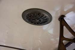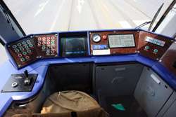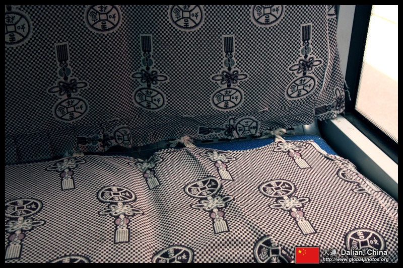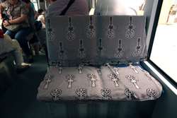 Seats on the new vehicles have this type of tarp strewn over them, presumably to slow down their wear and tear.