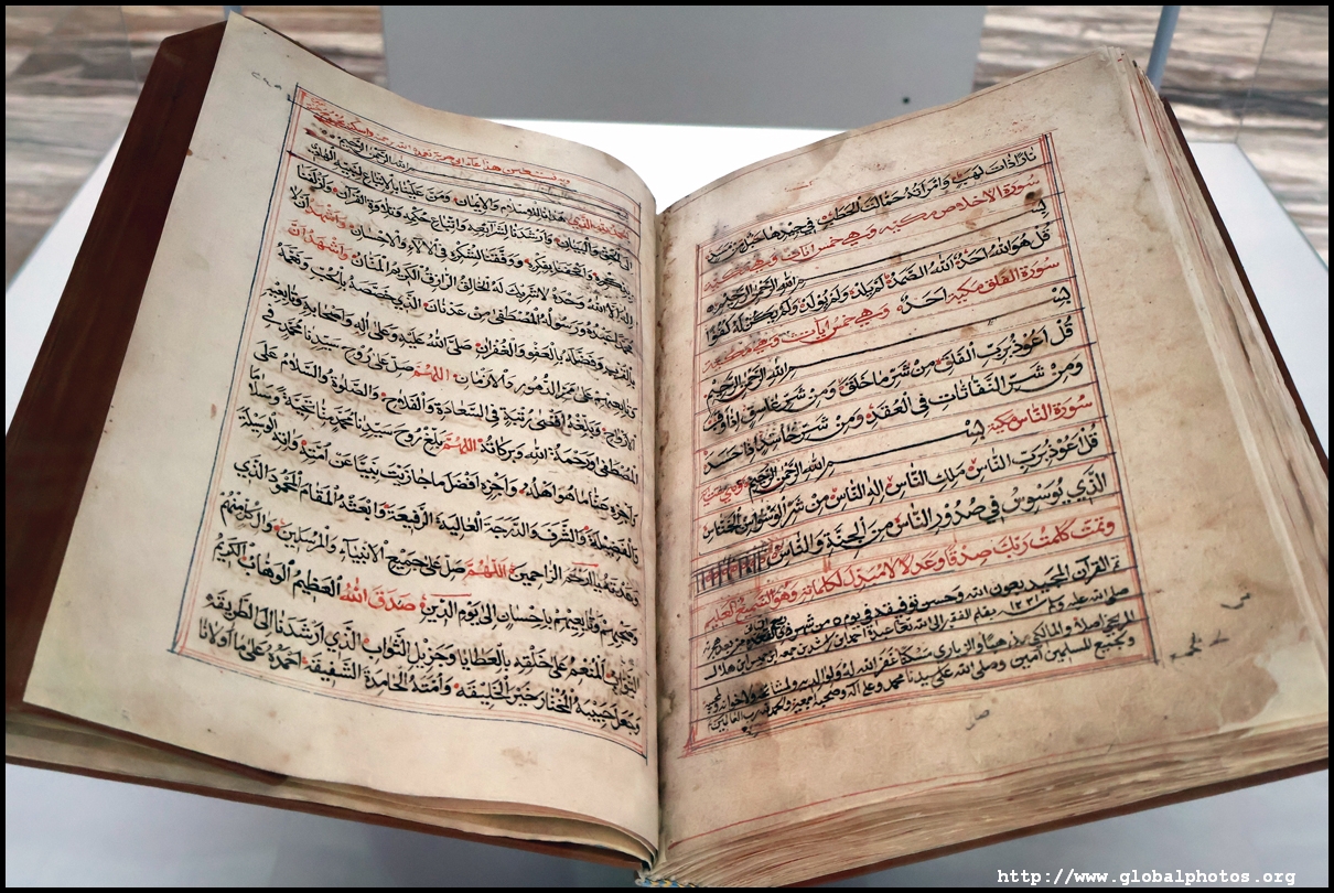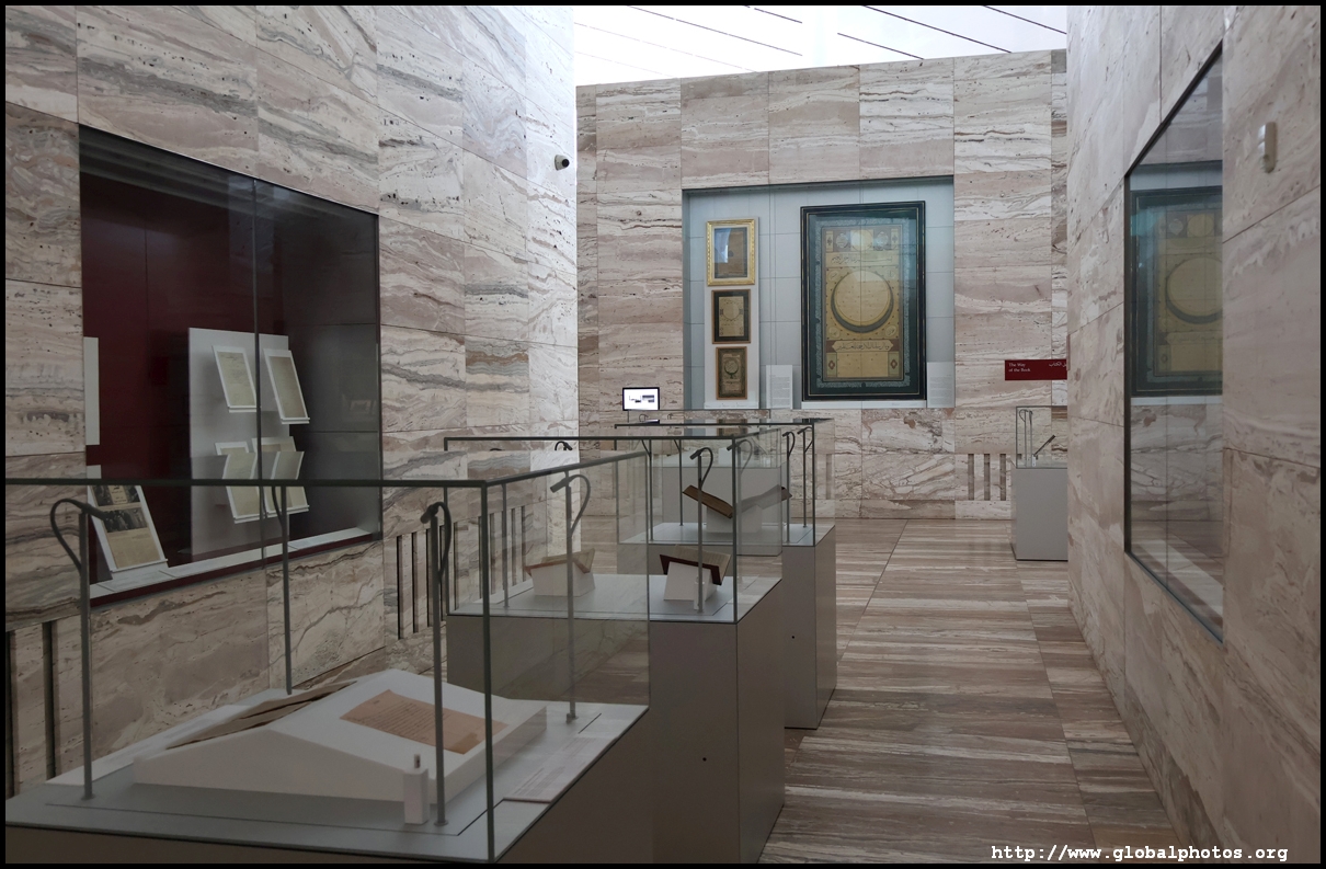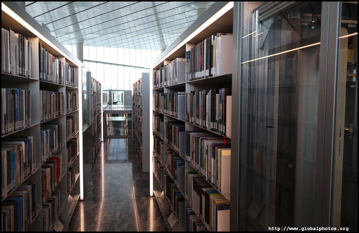 Doha has a university town in the city's west end, conveniently connected by the metro. Inside this huge campus is the Qatar National Library, which was inaugurated in 2018 and is home to over a million books. Designed by Rem Koolhaas, the structure resembles 2 pieces of paper being pulled apart and folded diagonally into a shell.Education City is a 12 square km campus home to several Western universities' Qatar campuses. These include Carnegie Mellon, Georgetown, Northwestern, and Texas A&M. With 8 universities and 13 schools, the total student population exceeds 10,000. Besides books, there are large exhibition areas within the library. This one showcases the tradition of book-making in Morocco from tanneries, papermills, market, to the book binder's workshop where manuscripts are assembled. Morocco's industry was among the most active in the Islamic world, flourishing from the 12th century until the decline of French colonial rule in the 1940s. Many of these beautiful books and manuscripts are copies of Korans and other religious works. Downstairs, they have on display all sorts of artifacts from across the Middle East. From above, it looks like an archaeological dig into the ground.