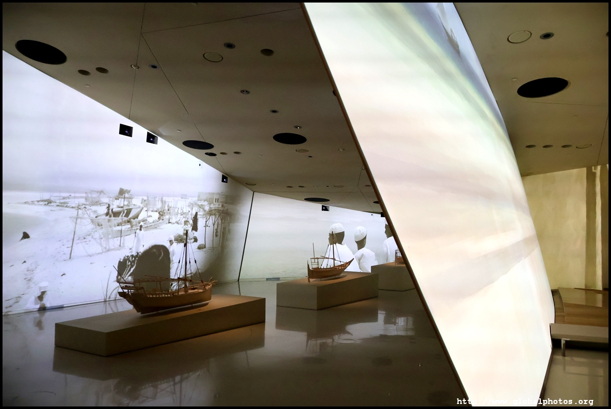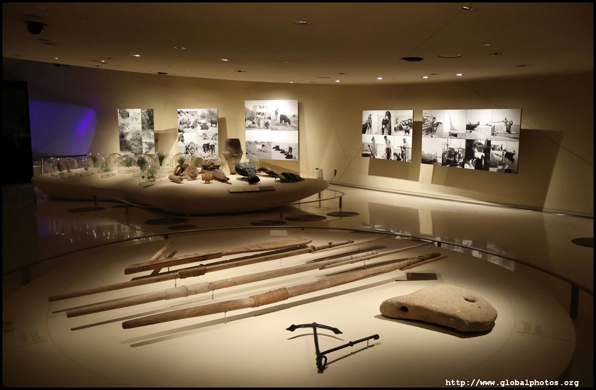 The first gallery begins with the geological formation of Qatar and the creatures that call this place home. The peninsula emerged about 4000 years ago. There are models of the various land and sea creatures in a re-created ecosystem down to the smallest details. Of particular interest is the oryx, which lives in the desert plains and low sand dunes, being able to endure up to 6 months without drinking water.
