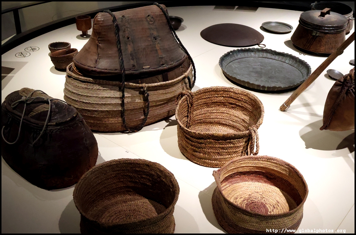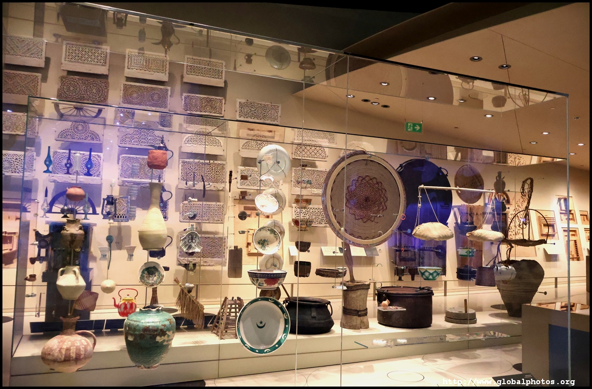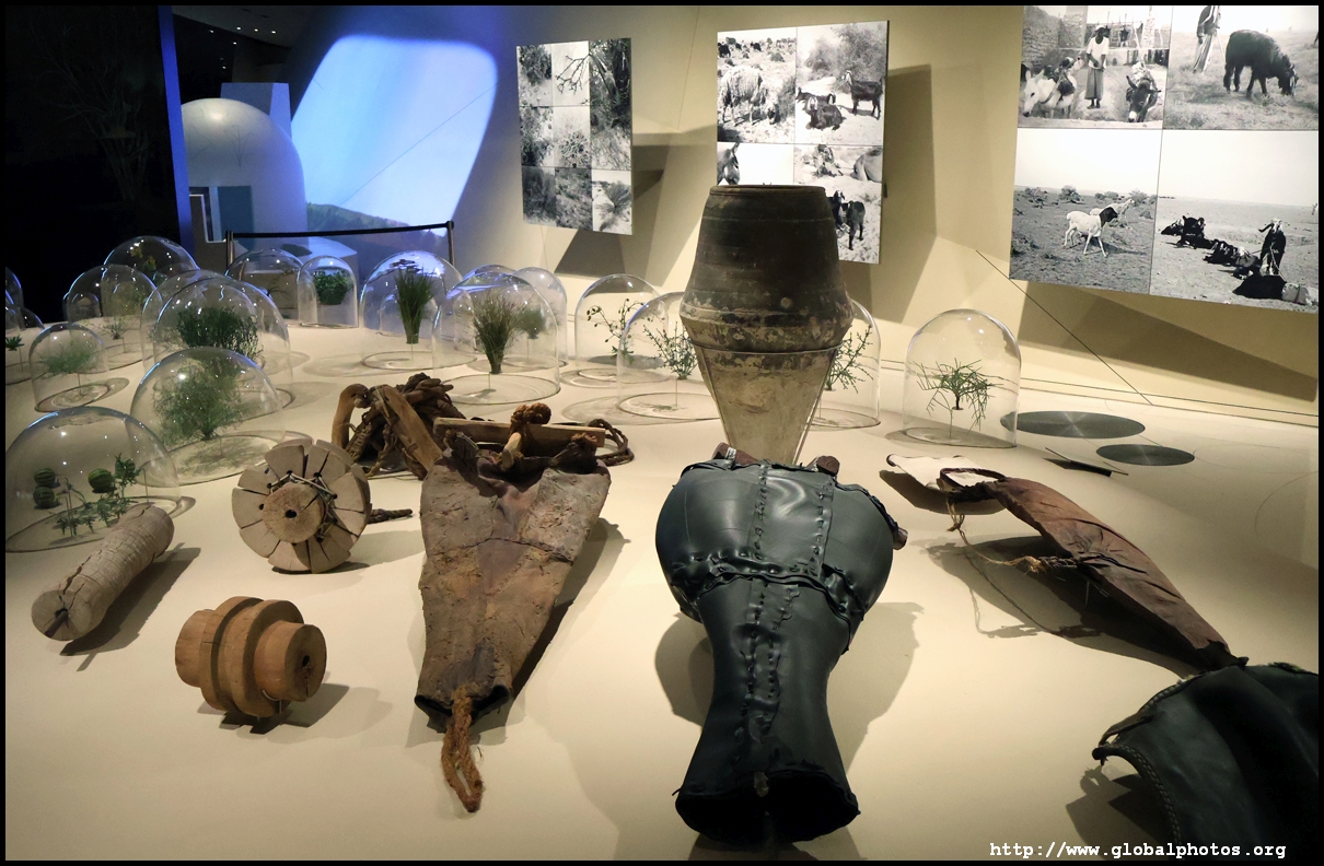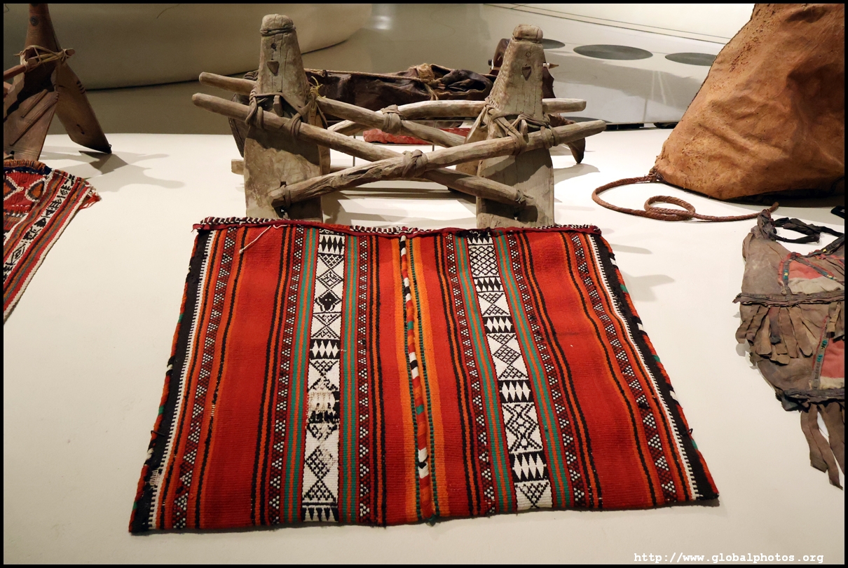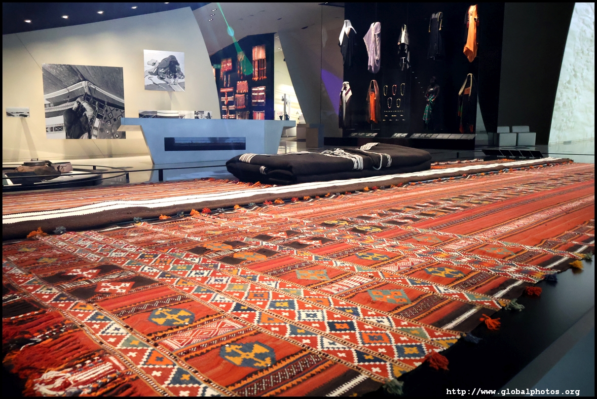 Continuing on, there is a huge glass case of archaeological finds, followed by objects from the traditional lifestyle. The next gallery showcases life in the desert with objects such as a tent, falconry equipment, coffee-making tools, and traditional clothes.