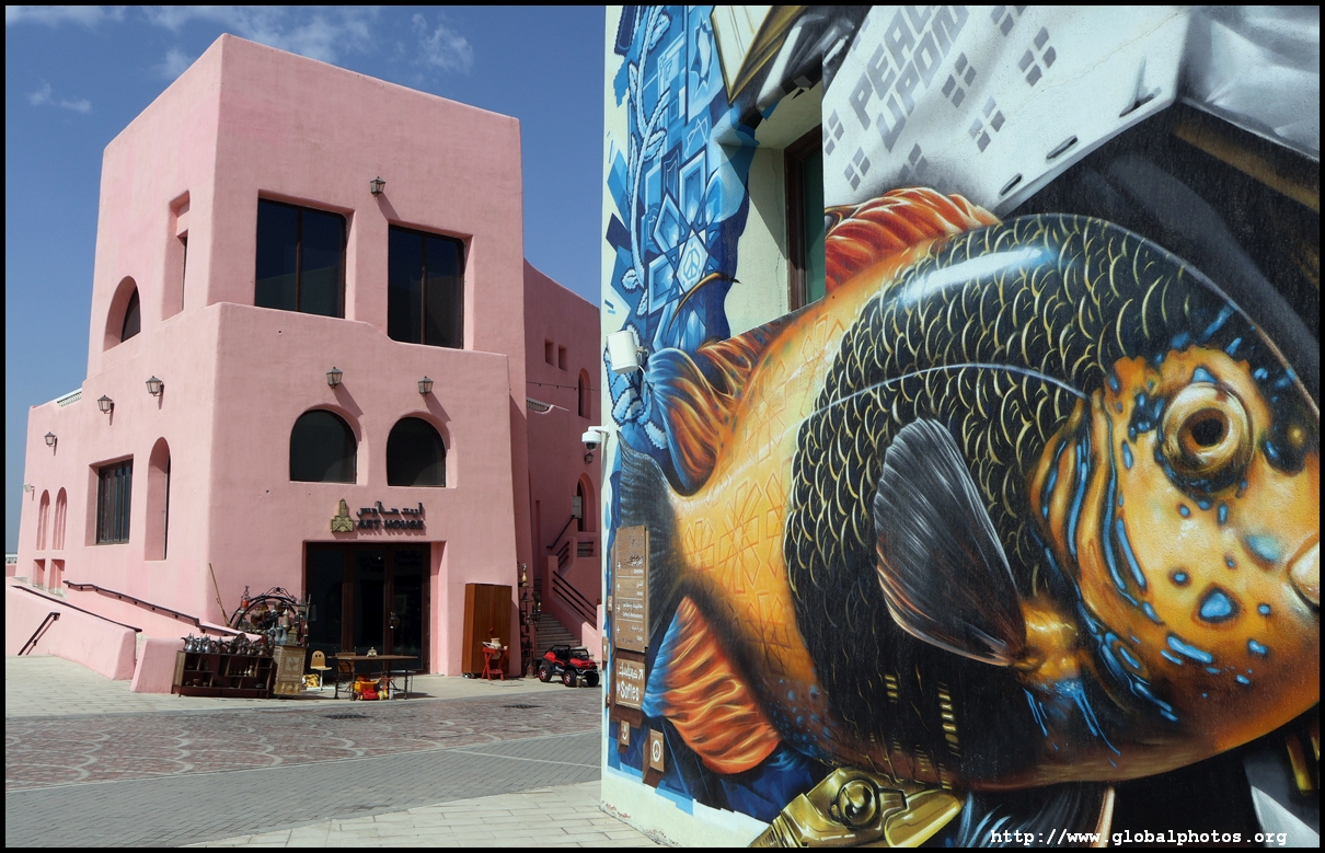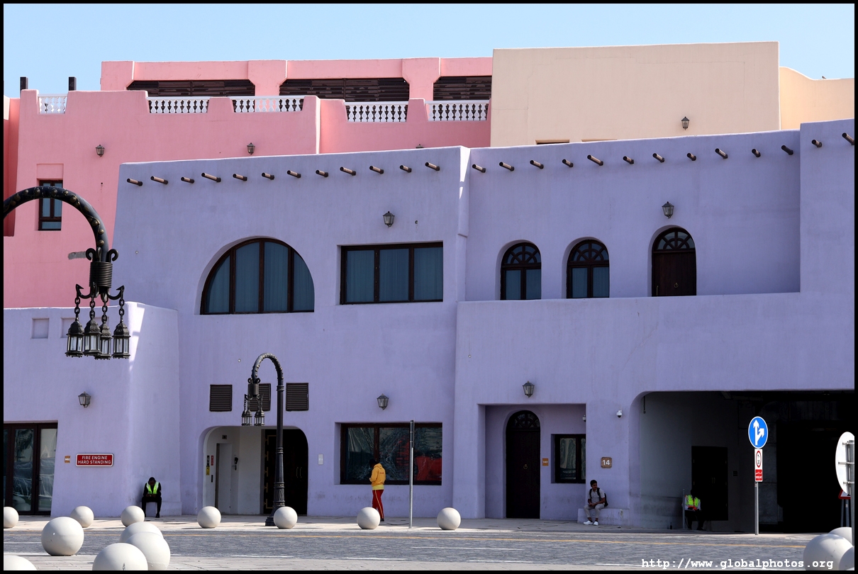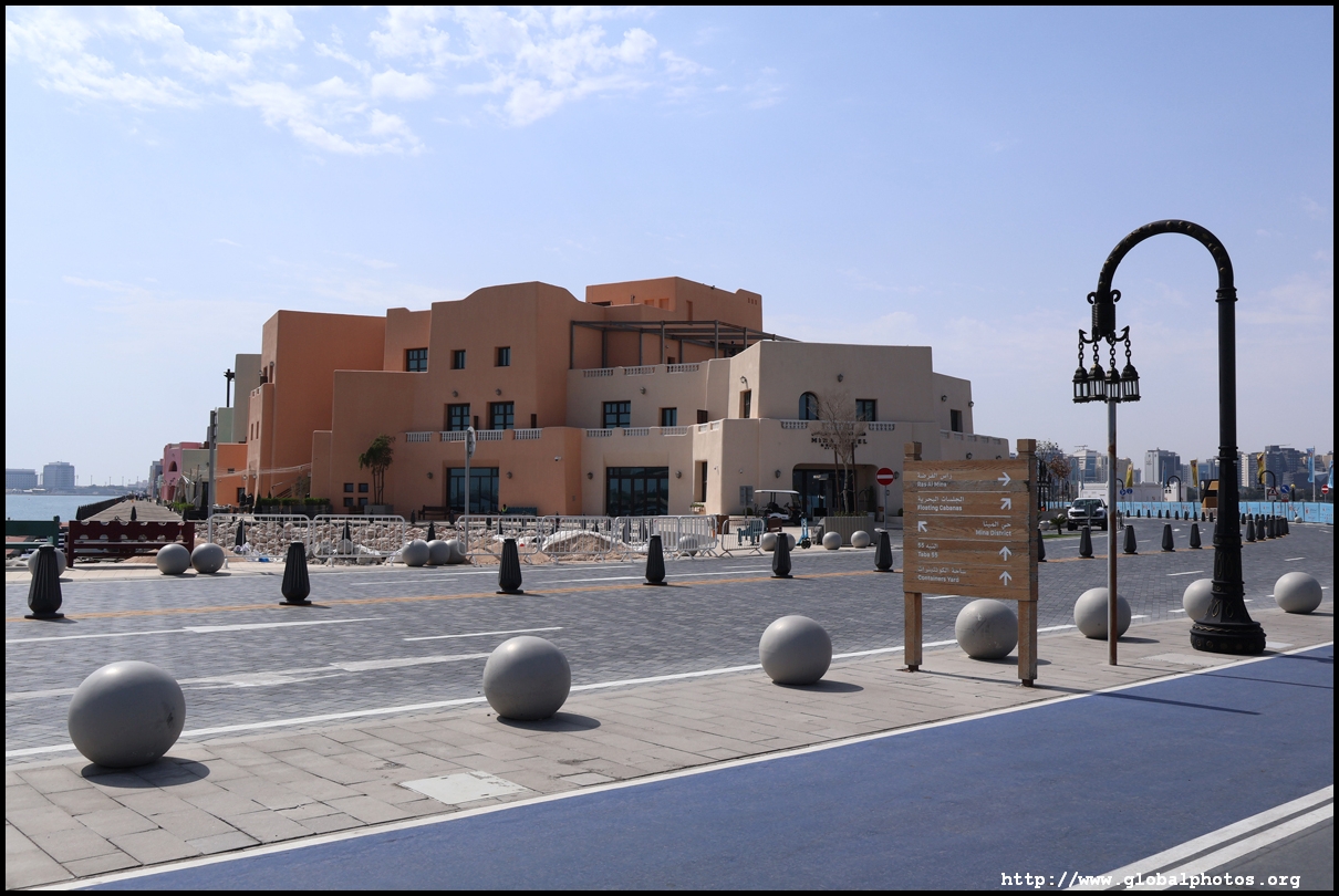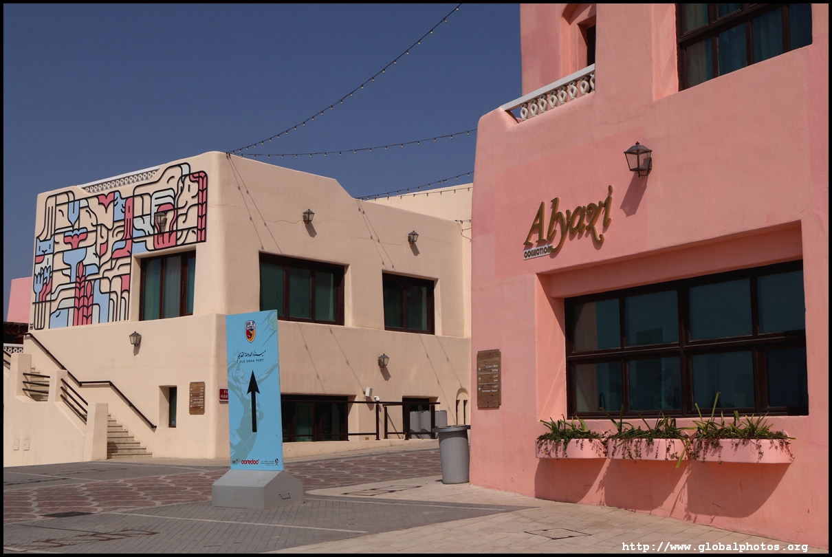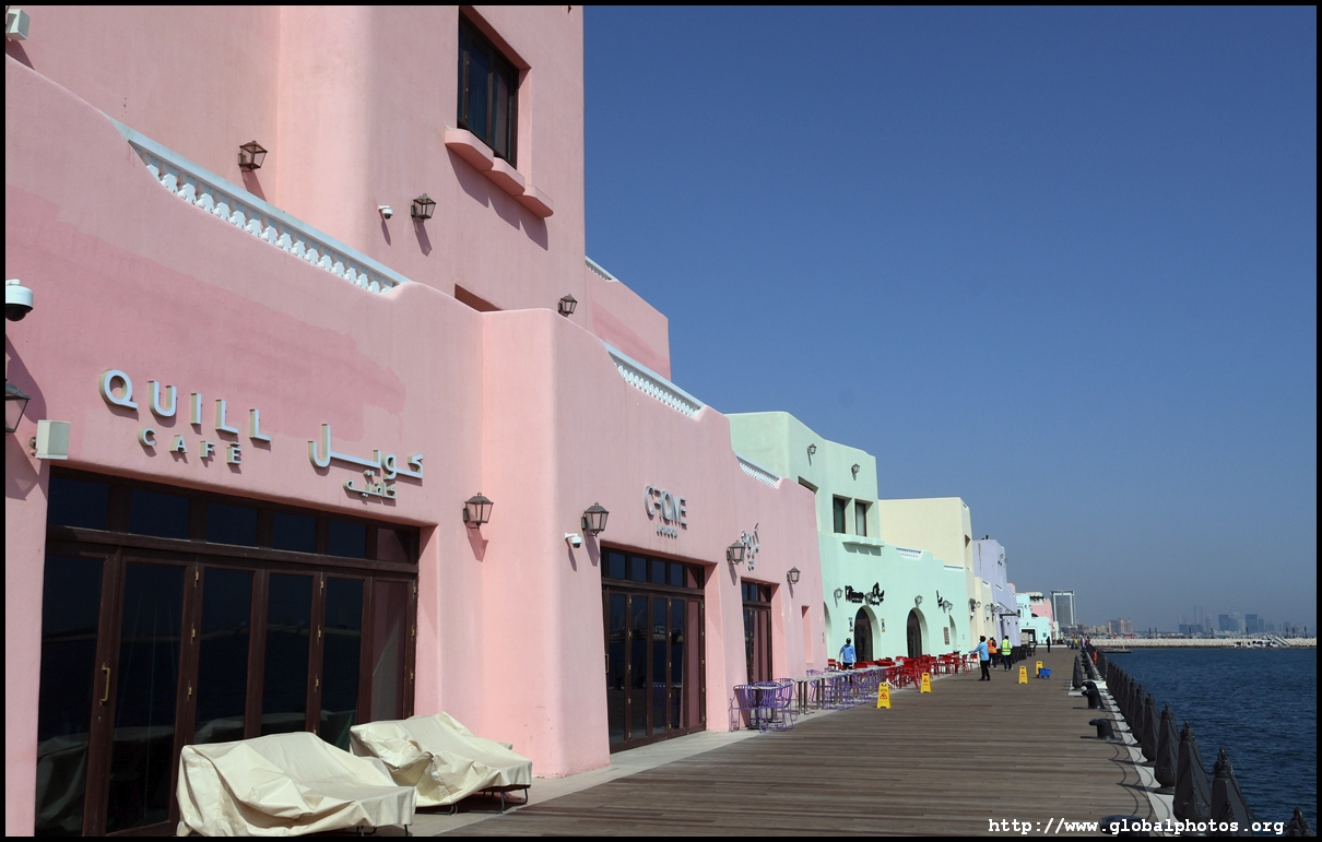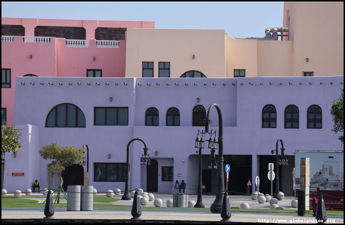 The Doha Port area today is a nice place for a walk. Just steps from the city centre, there is plenty of parkland and waterfront promenade where you can enjoy views of the skyline and yachts. Along the way, there are a few purpose-made attractions to entice you to stay.I came early in the morning during Ramadan before it got too hot. This area barely has any shade and even during March, it can get quite warm during the day. With the city's shops and restaurants shut during the daytime, there wasn't much to browse within the buildings but plenty of views outside to enjoy. To the east of Box Park, Mina District is a colourful neighbourhood with pedestrianized streets set against pastel-coloured buildings. This is a redevelopment of the old port into a new cruise terminal and fish market. At the northern end of the district, the views open up again and you have the skyline in front of you once more, this time slightly closer than Box Park.