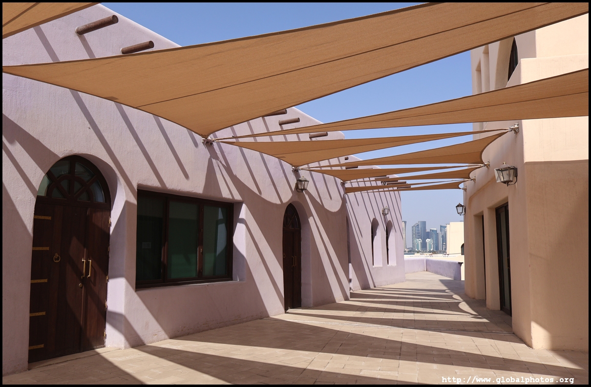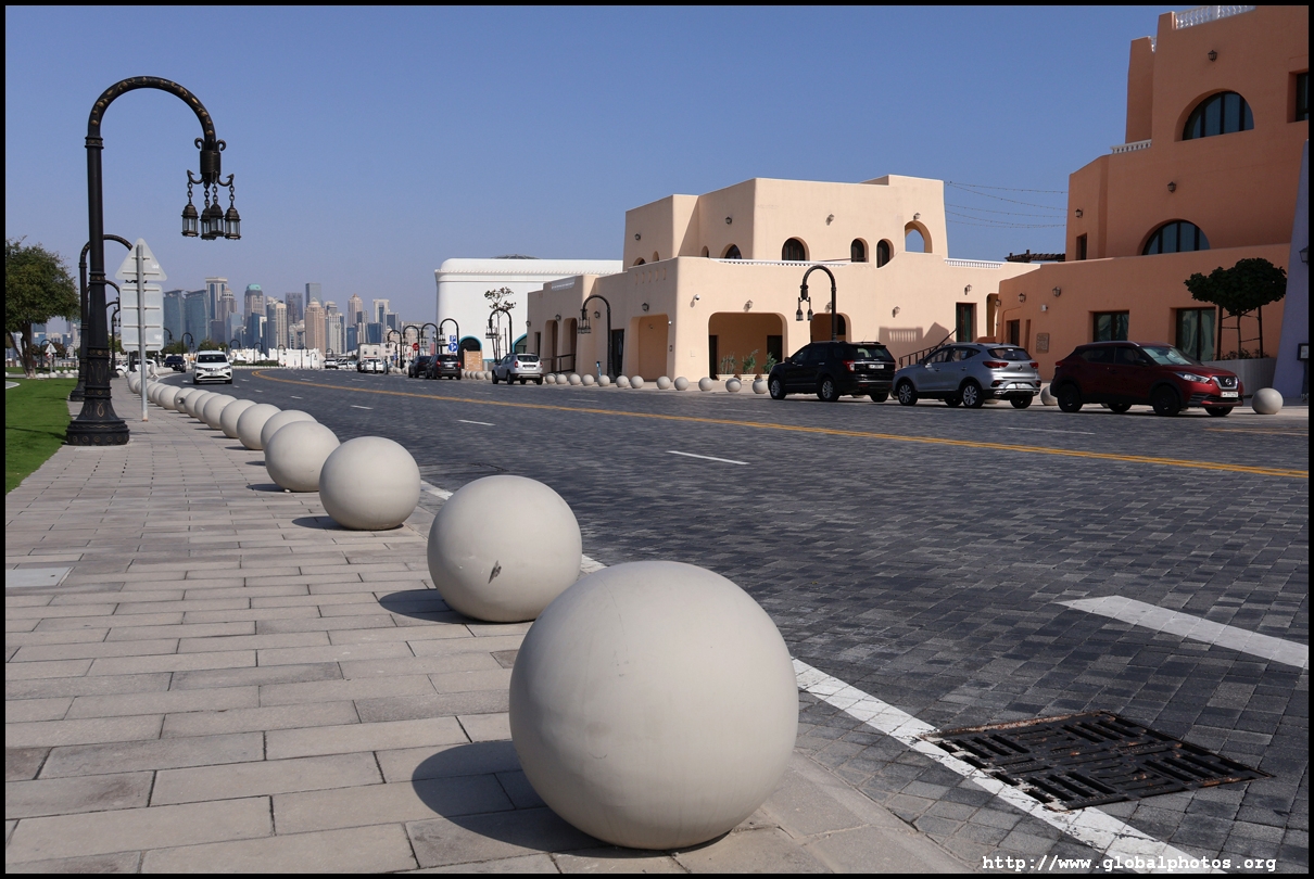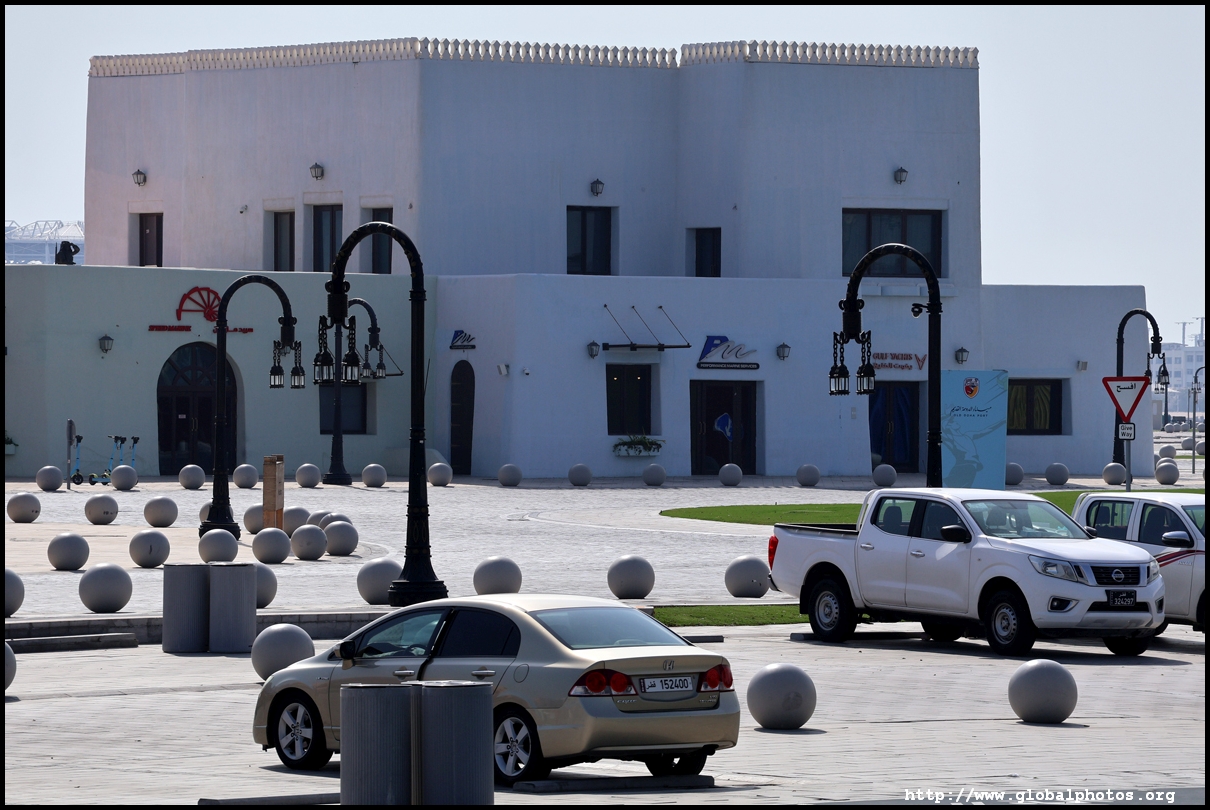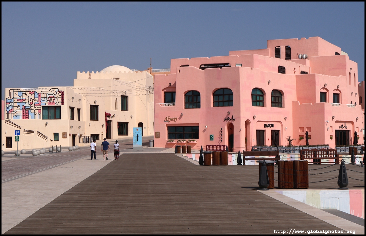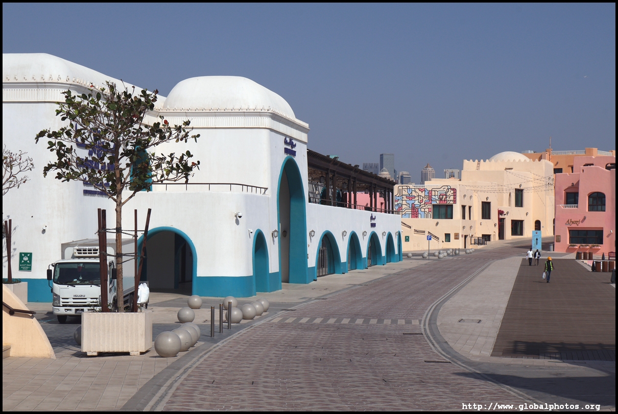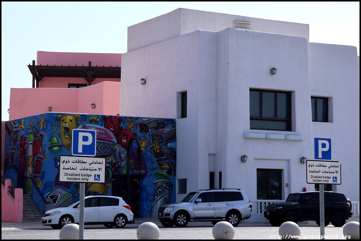 The Doha Port area today is a nice place for a walk. Just steps from the city centre, there is plenty of parkland and waterfront promenade where you can enjoy views of the skyline and yachts. Along the way, there are a few purpose-made attractions to entice you to stay.I came early in the morning during Ramadan before it got too hot. This area barely has any shade and even during March, it can get quite warm during the day. With the city's shops and restaurants shut during the daytime, there wasn't much to browse within the buildings but plenty of views outside to enjoy. To the east of Box Park, Mina District is a colourful neighbourhood with pedestrianized streets set against pastel-coloured buildings. This is a redevelopment of the old port into a new cruise terminal and fish market. At the northern end of the district, the views open up again and you have the skyline in front of you once more, this time slightly closer than Box Park.
