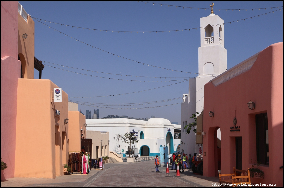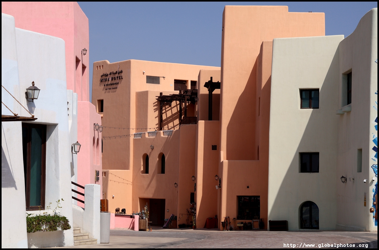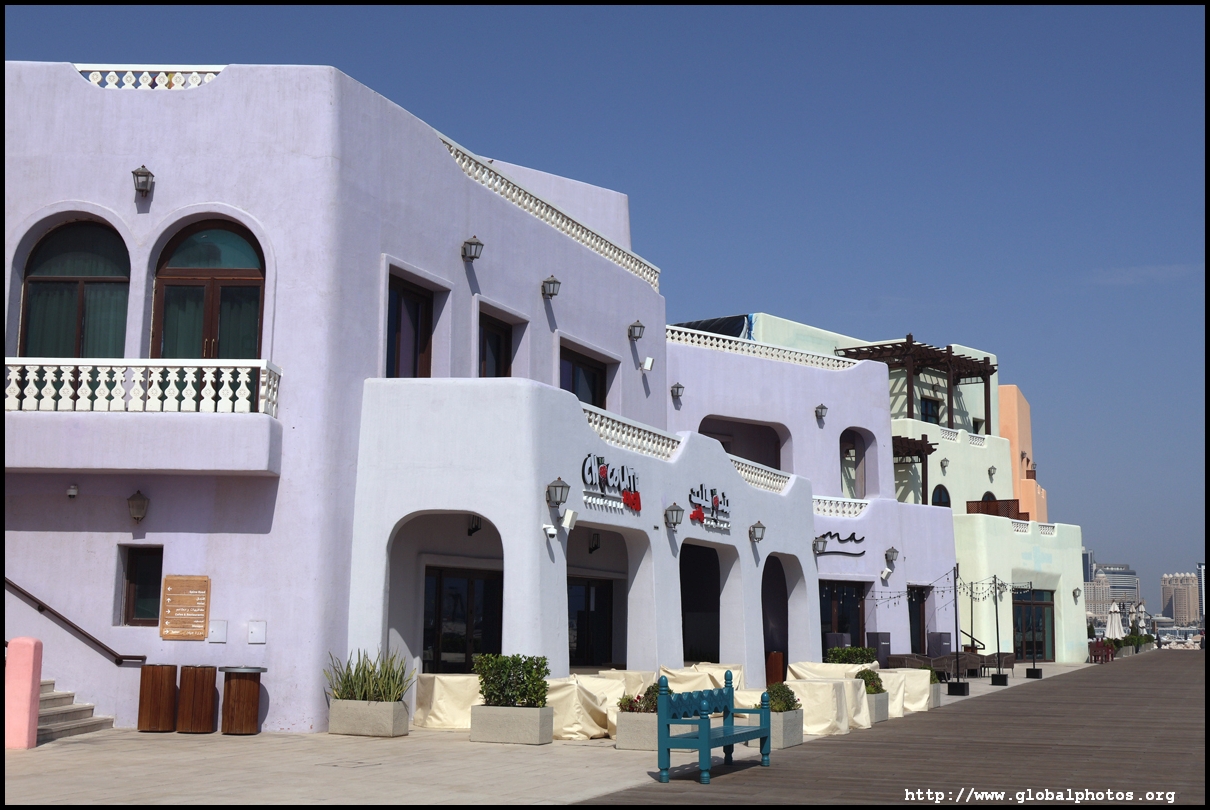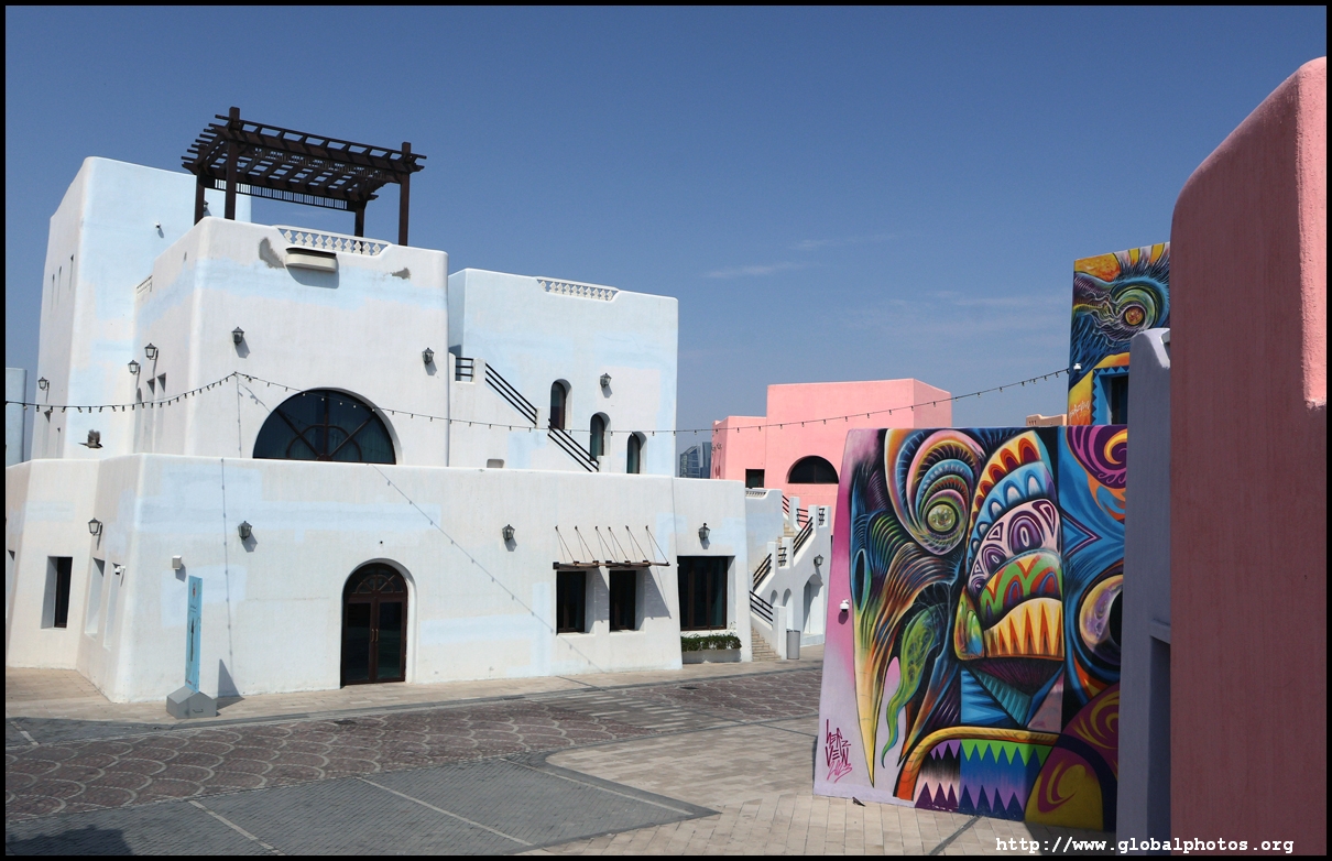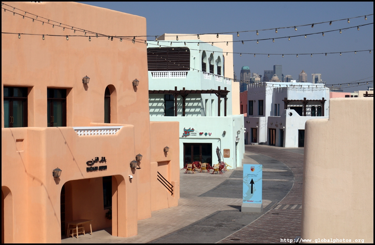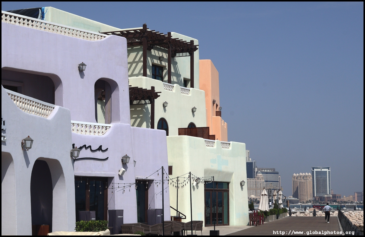 The Doha Port area today is a nice place for a walk. Just steps from the city centre, there is plenty of parkland and waterfront promenade where you can enjoy views of the skyline and yachts. Along the way, there are a few purpose-made attractions to entice you to stay.I came early in the morning during Ramadan before it got too hot. This area barely has any shade and even during March, it can get quite warm during the day. With the city's shops and restaurants shut during the daytime, there wasn't much to browse within the buildings but plenty of views outside to enjoy. To the east of Box Park, Mina District is a colourful neighbourhood with pedestrianized streets set against pastel-coloured buildings. This is a redevelopment of the old port into a new cruise terminal and fish market. At the northern end of the district, the views open up again and you have the skyline in front of you once more, this time slightly closer than Box Park.