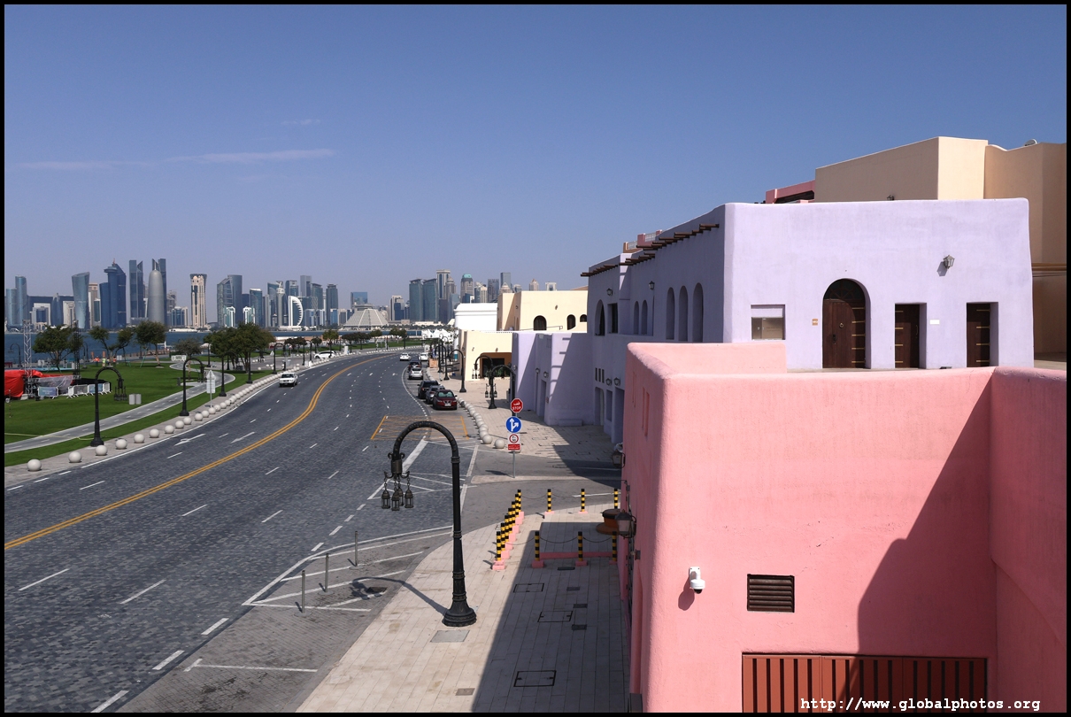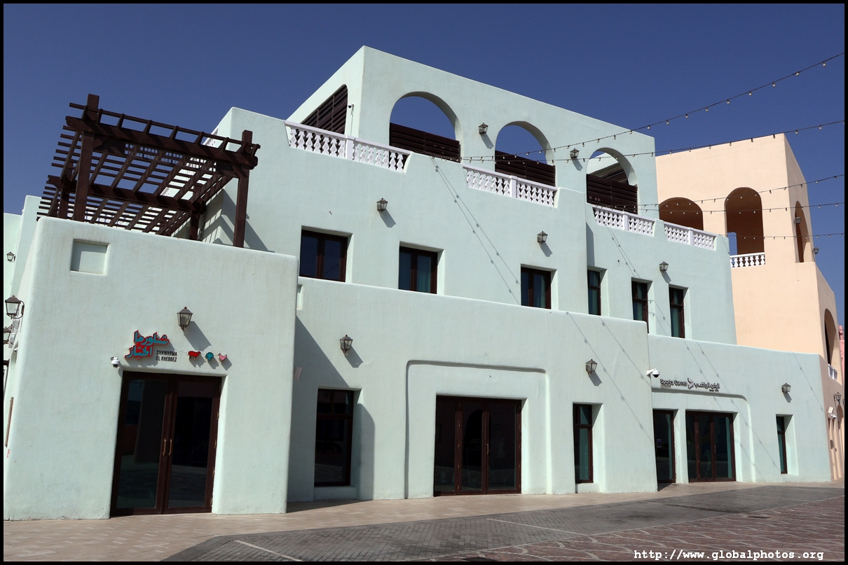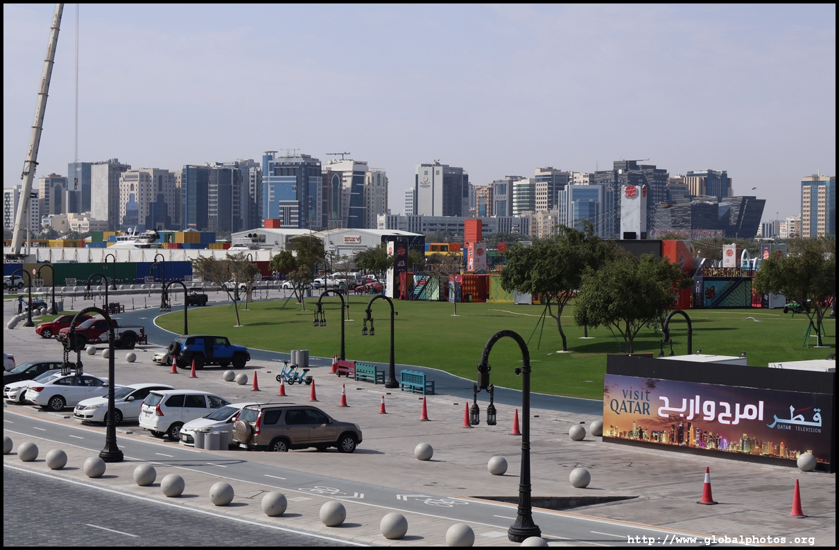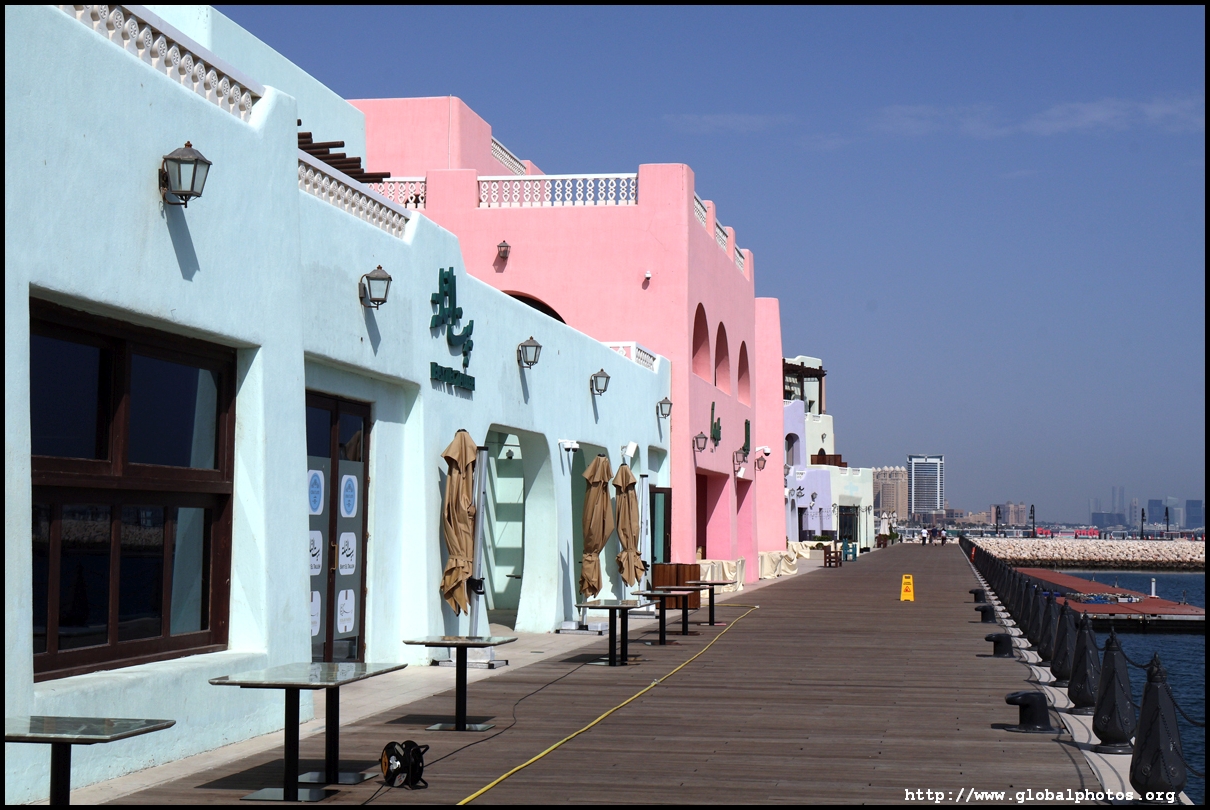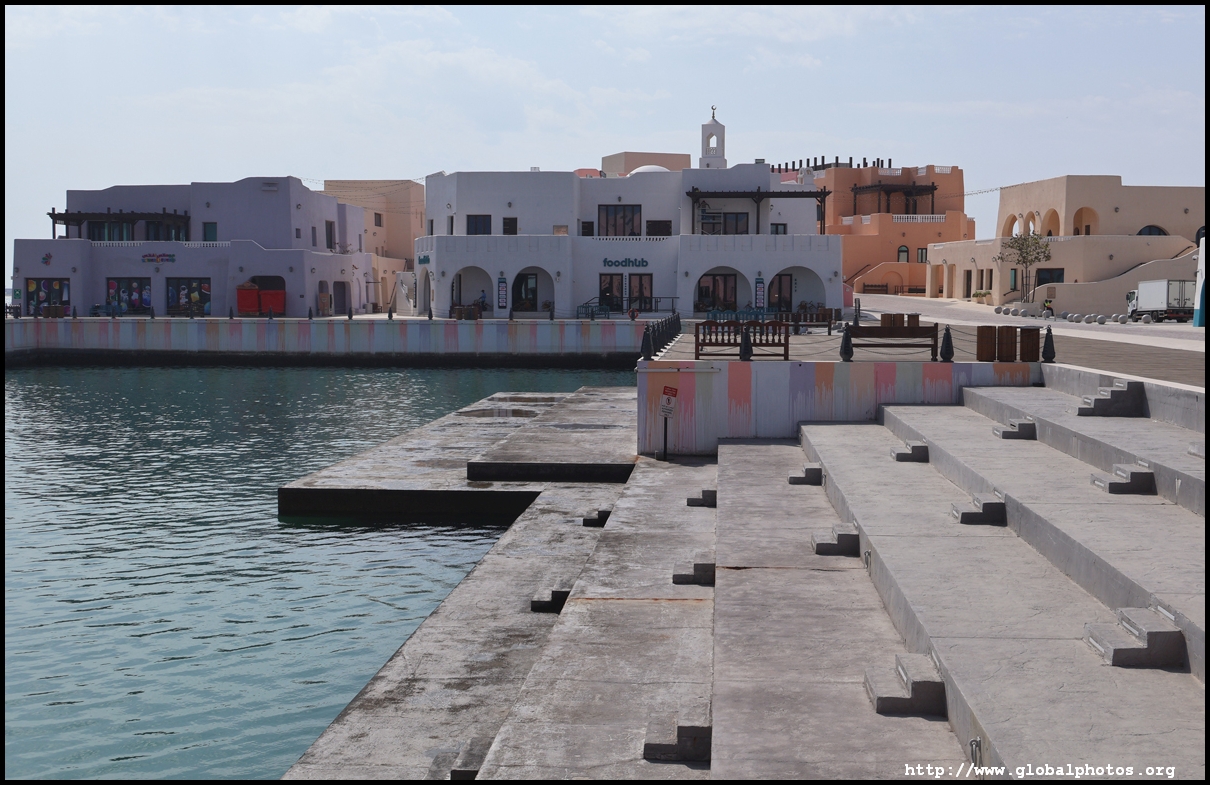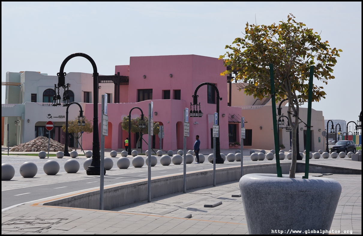 The Doha Port area today is a nice place for a walk. Just steps from the city centre, there is plenty of parkland and waterfront promenade where you can enjoy views of the skyline and yachts. Along the way, there are a few purpose-made attractions to entice you to stay.I came early in the morning during Ramadan before it got too hot. This area barely has any shade and even during March, it can get quite warm during the day. With the city's shops and restaurants shut during the daytime, there wasn't much to browse within the buildings but plenty of views outside to enjoy. To the east of Box Park, Mina District is a colourful neighbourhood with pedestrianized streets set against pastel-coloured buildings. This is a redevelopment of the old port into a new cruise terminal and fish market. At the northern end of the district, the views open up again and you have the skyline in front of you once more, this time slightly closer than Box Park.