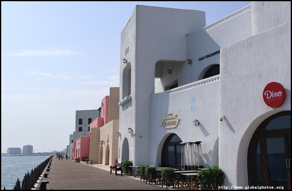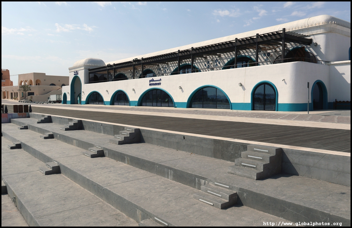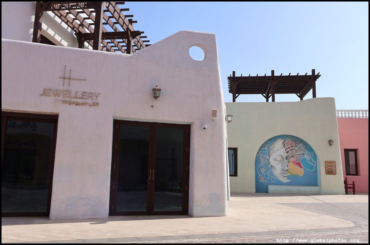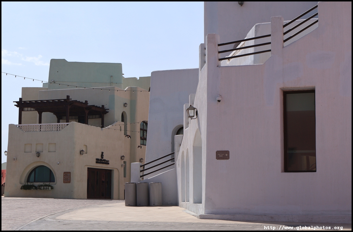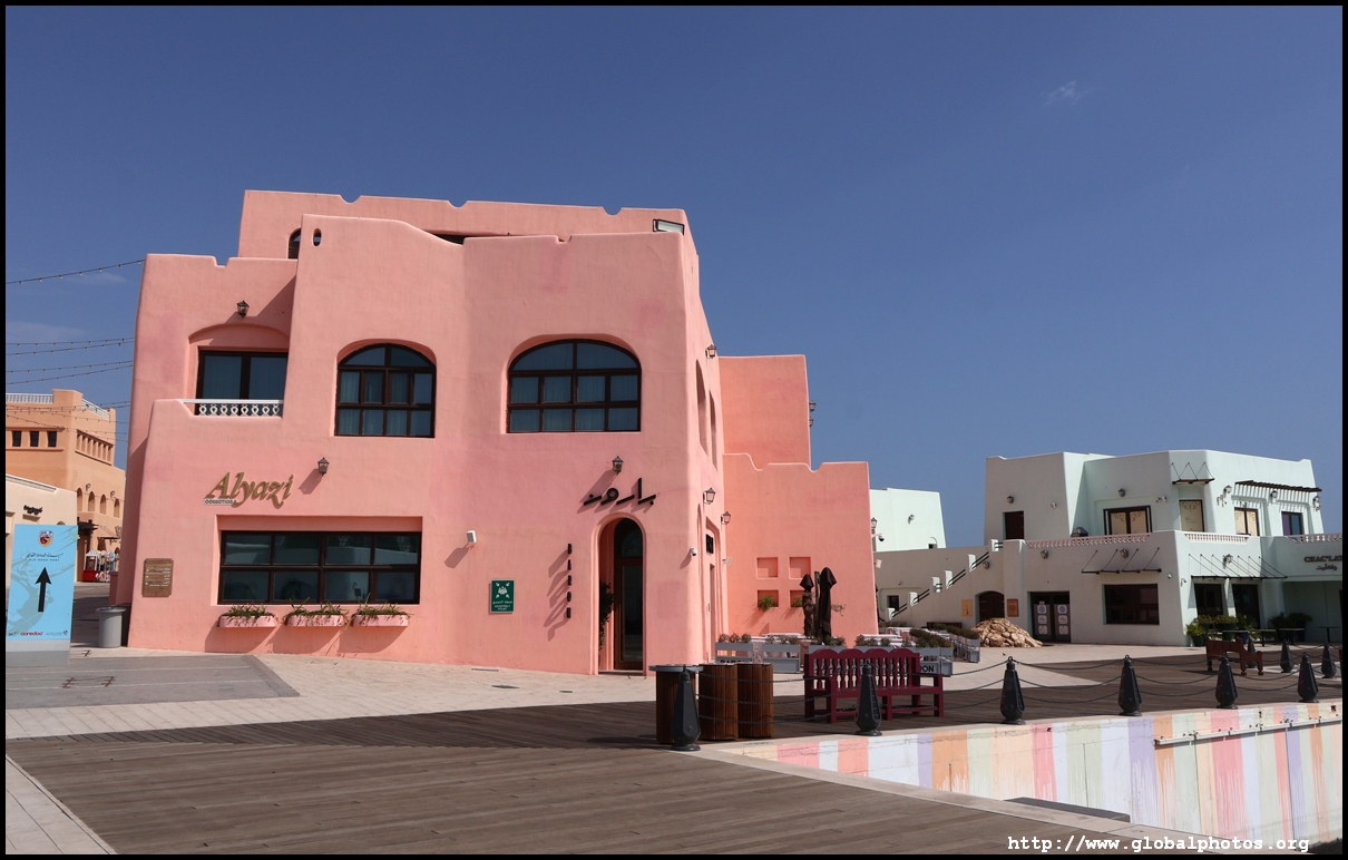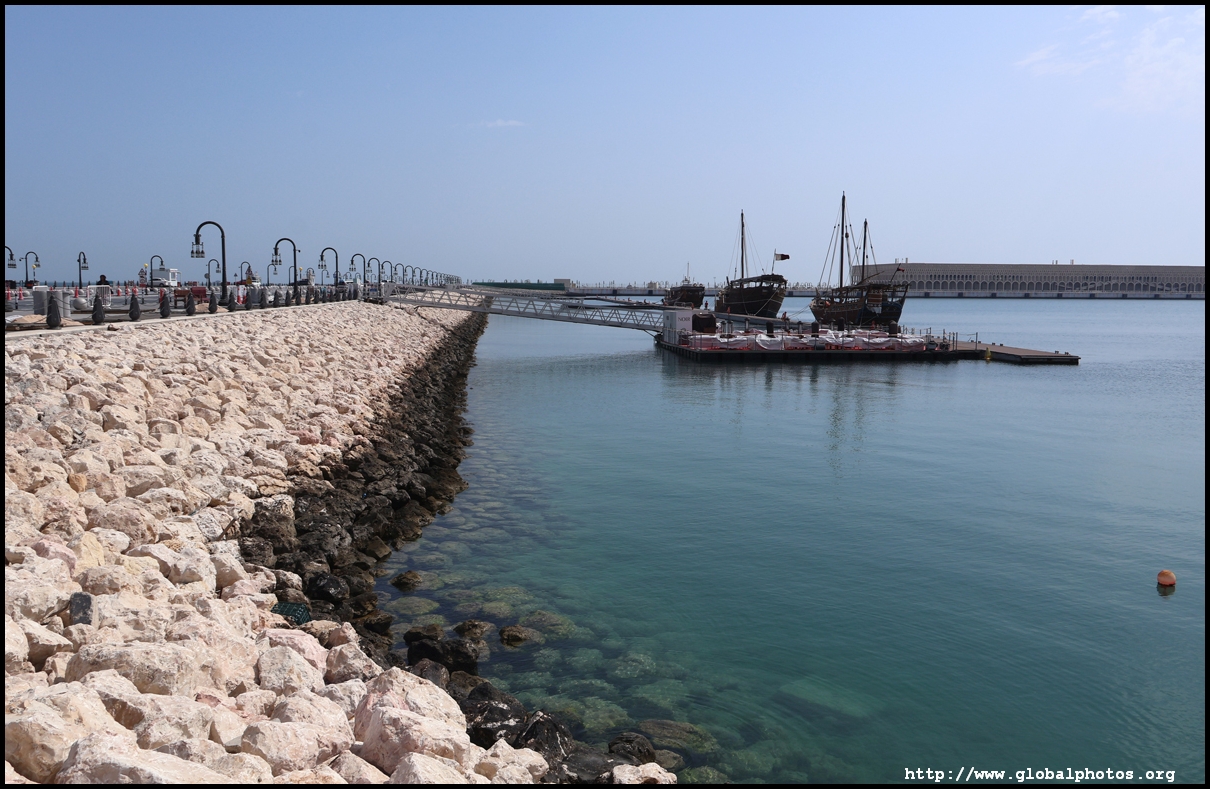 The Doha Port area today is a nice place for a walk. Just steps from the city centre, there is plenty of parkland and waterfront promenade where you can enjoy views of the skyline and yachts. Along the way, there are a few purpose-made attractions to entice you to stay.I came early in the morning during Ramadan before it got too hot. This area barely has any shade and even during March, it can get quite warm during the day. With the city's shops and restaurants shut during the daytime, there wasn't much to browse within the buildings but plenty of views outside to enjoy. To the east of Box Park, Mina District is a colourful neighbourhood with pedestrianized streets set against pastel-coloured buildings. This is a redevelopment of the old port into a new cruise terminal and fish market. At the northern end of the district, the views open up again and you have the skyline in front of you once more, this time slightly closer than Box Park.
