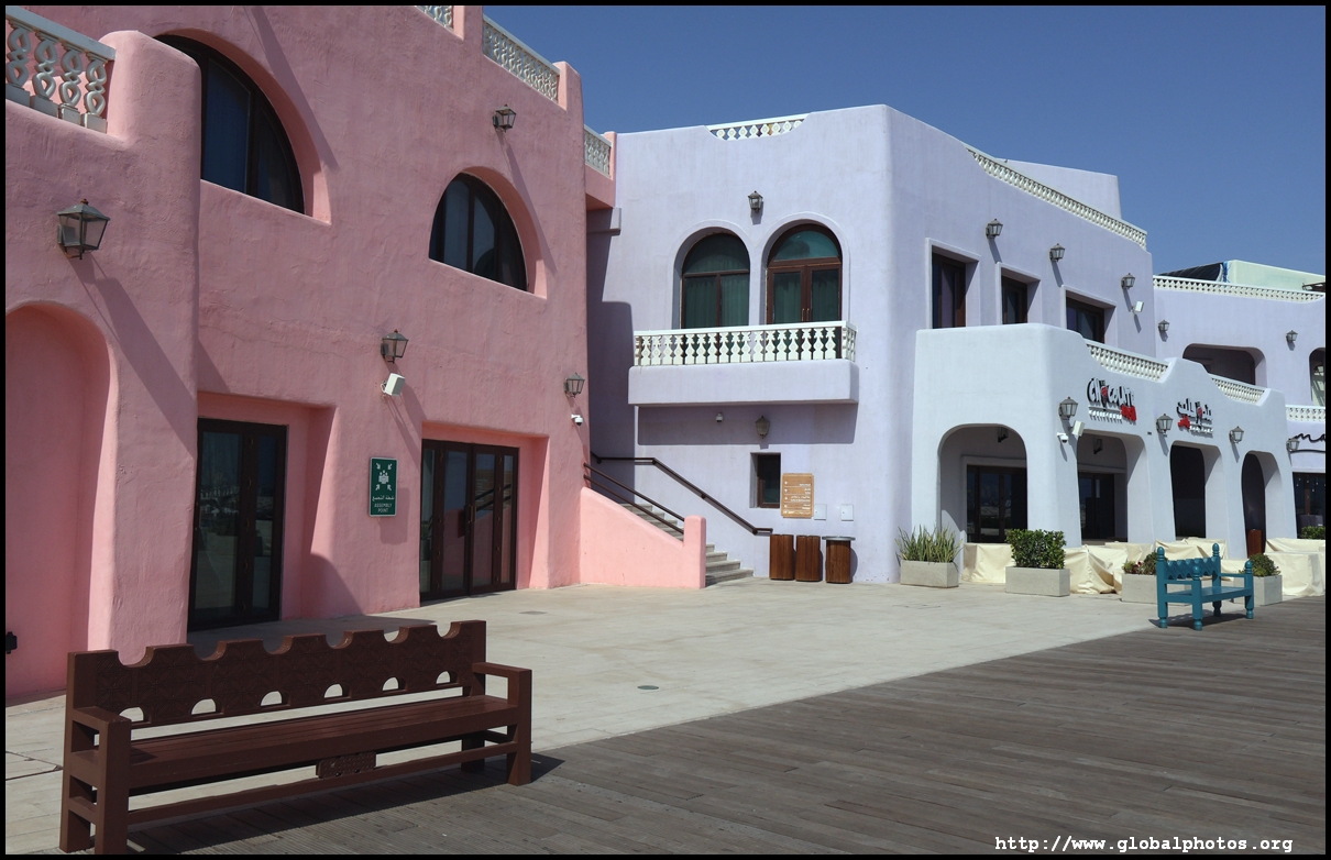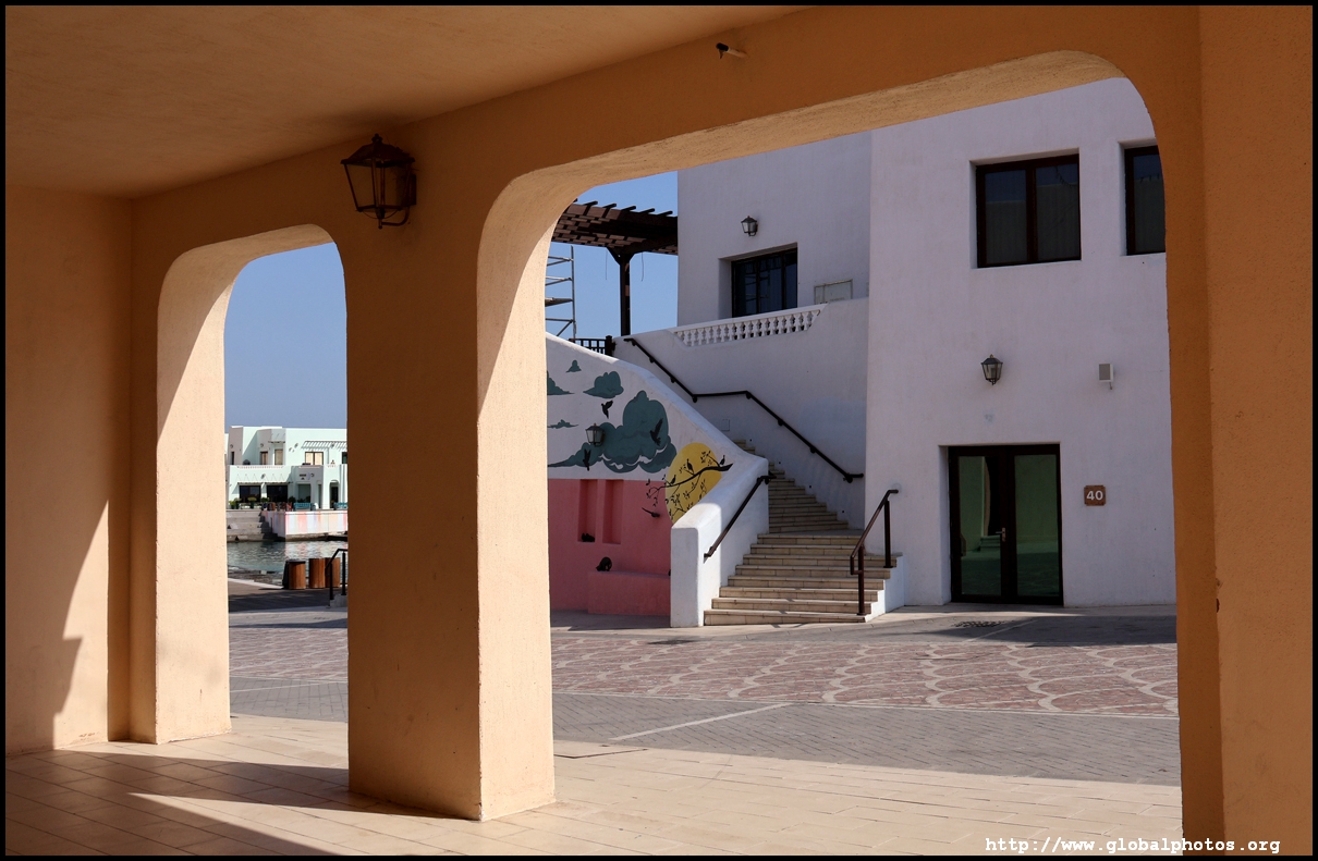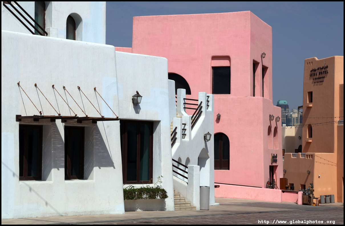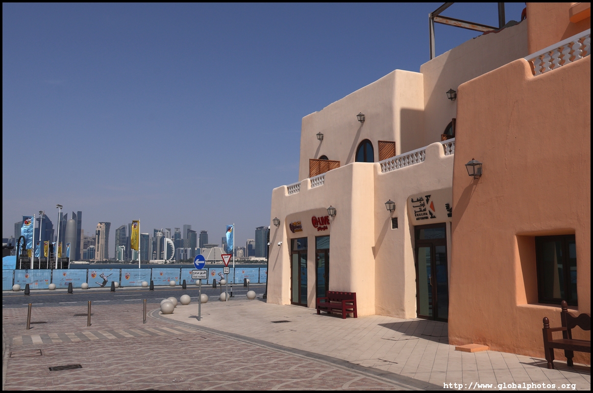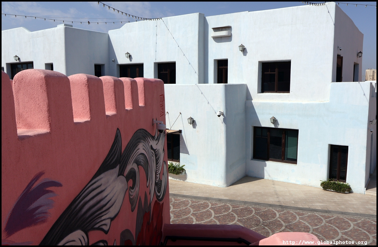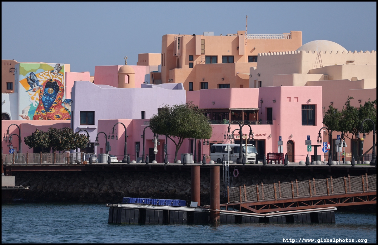 The Doha Port area today is a nice place for a walk. Just steps from the city centre, there is plenty of parkland and waterfront promenade where you can enjoy views of the skyline and yachts. Along the way, there are a few purpose-made attractions to entice you to stay.I came early in the morning during Ramadan before it got too hot. This area barely has any shade and even during March, it can get quite warm during the day. With the city's shops and restaurants shut during the daytime, there wasn't much to browse within the buildings but plenty of views outside to enjoy. To the east of Box Park, Mina District is a colourful neighbourhood with pedestrianized streets set against pastel-coloured buildings. This is a redevelopment of the old port into a new cruise terminal and fish market. At the northern end of the district, the views open up again and you have the skyline in front of you once more, this time slightly closer than Box Park.