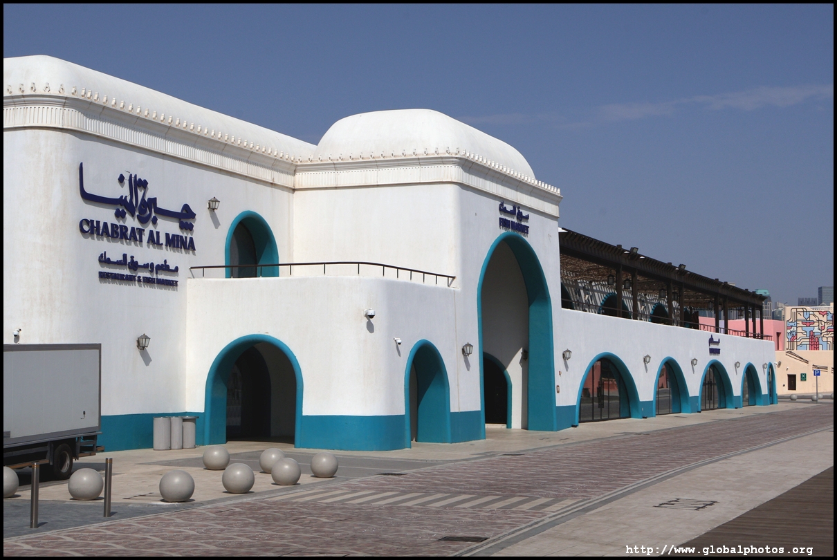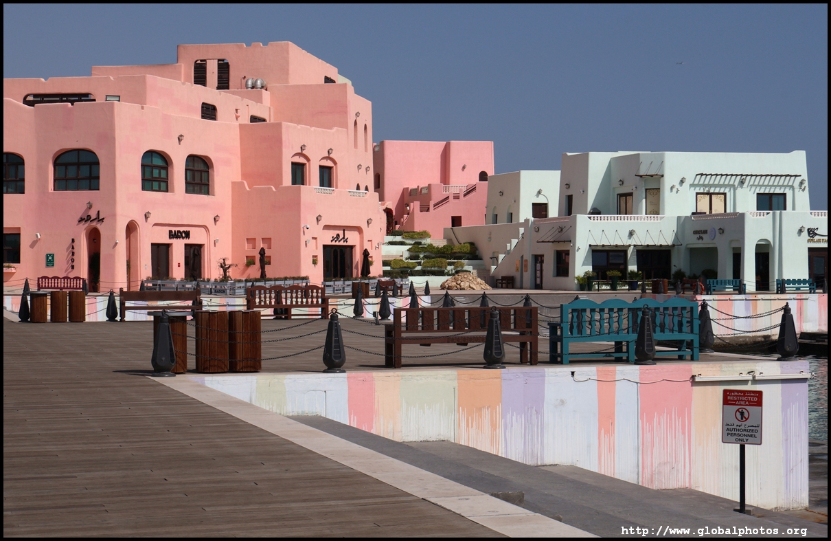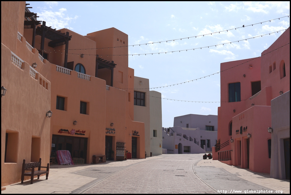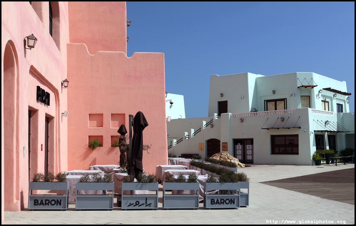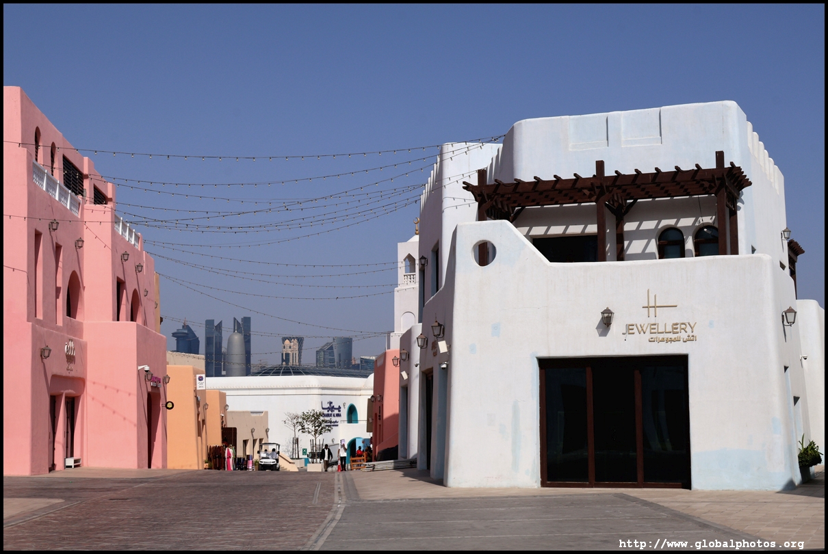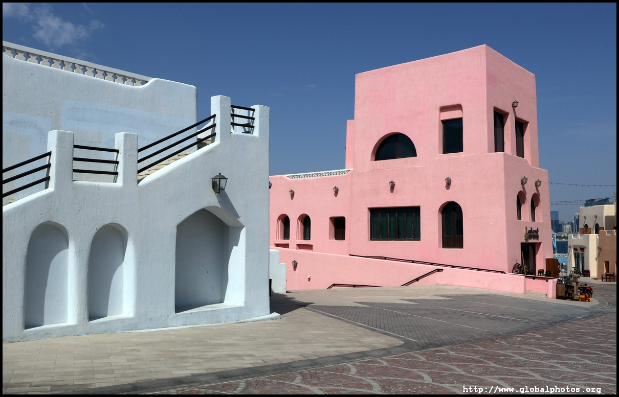 The Doha Port area today is a nice place for a walk. Just steps from the city centre, there is plenty of parkland and waterfront promenade where you can enjoy views of the skyline and yachts. Along the way, there are a few purpose-made attractions to entice you to stay.I came early in the morning during Ramadan before it got too hot. This area barely has any shade and even during March, it can get quite warm during the day. With the city's shops and restaurants shut during the daytime, there wasn't much to browse within the buildings but plenty of views outside to enjoy. To the east of Box Park, Mina District is a colourful neighbourhood with pedestrianized streets set against pastel-coloured buildings. This is a redevelopment of the old port into a new cruise terminal and fish market. At the northern end of the district, the views open up again and you have the skyline in front of you once more, this time slightly closer than Box Park.