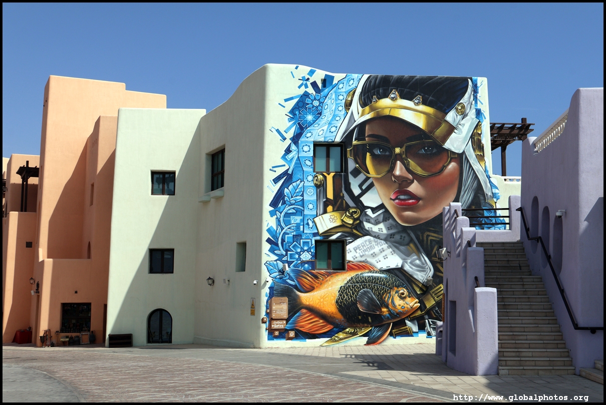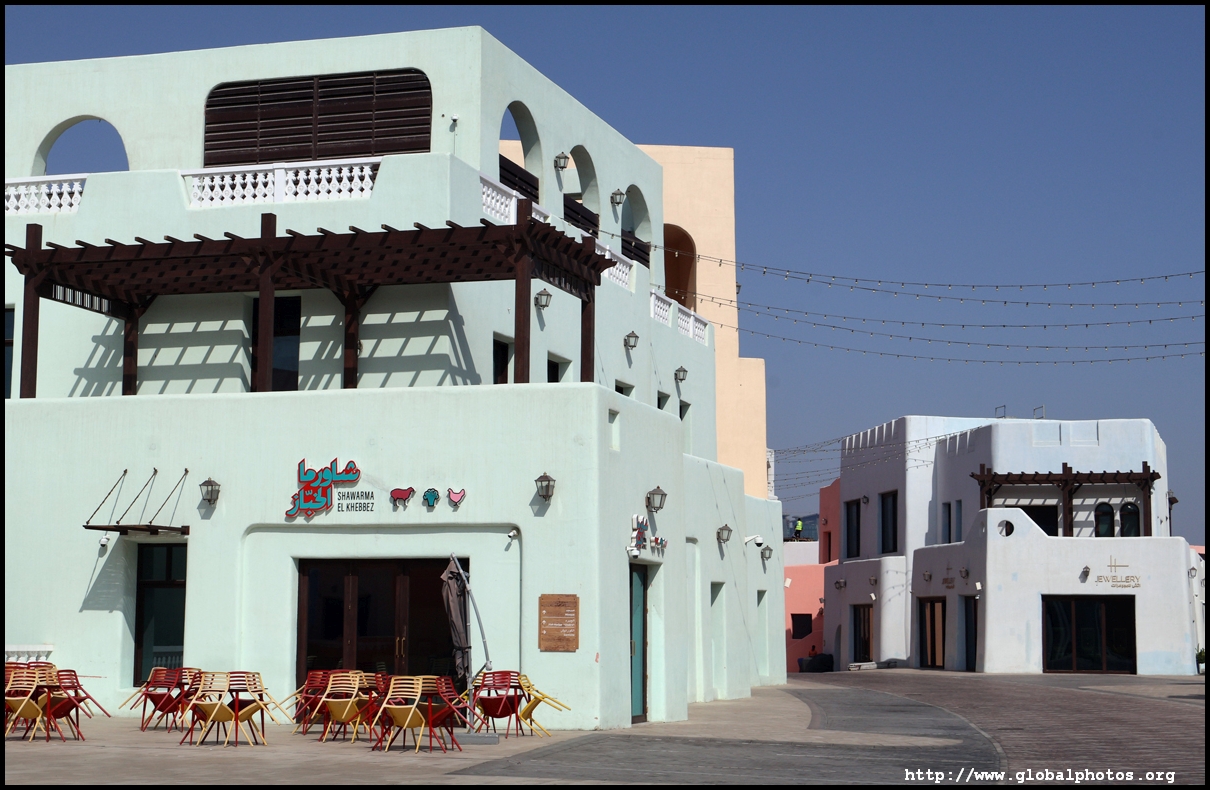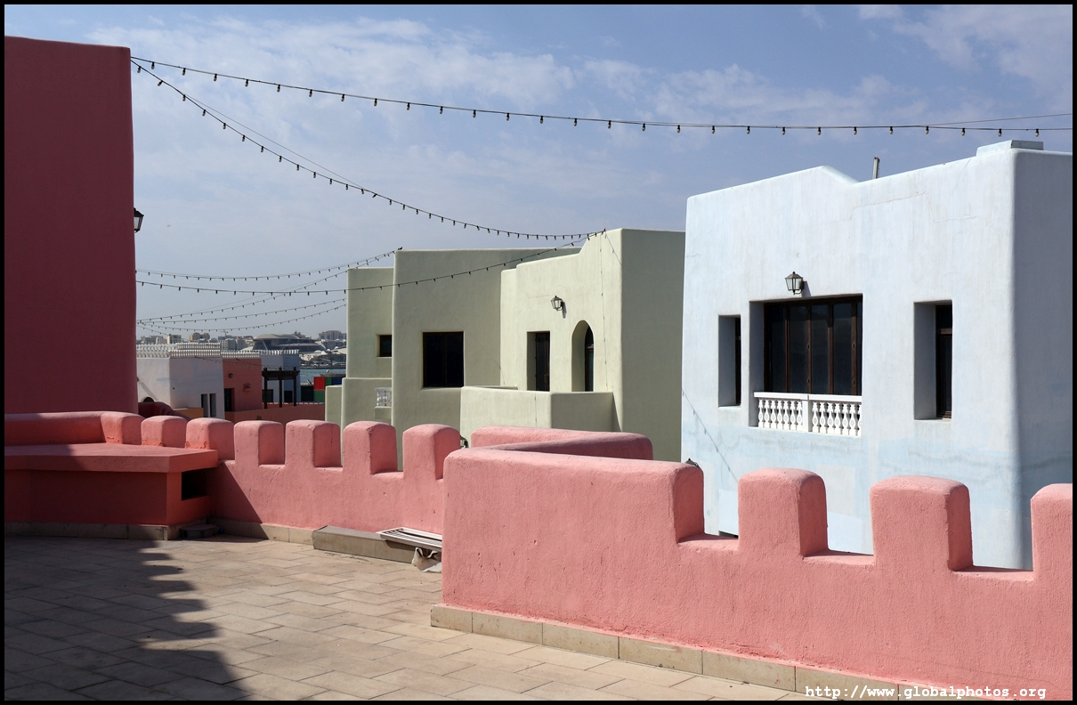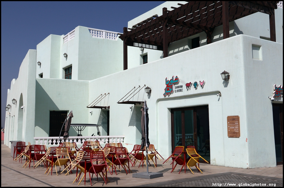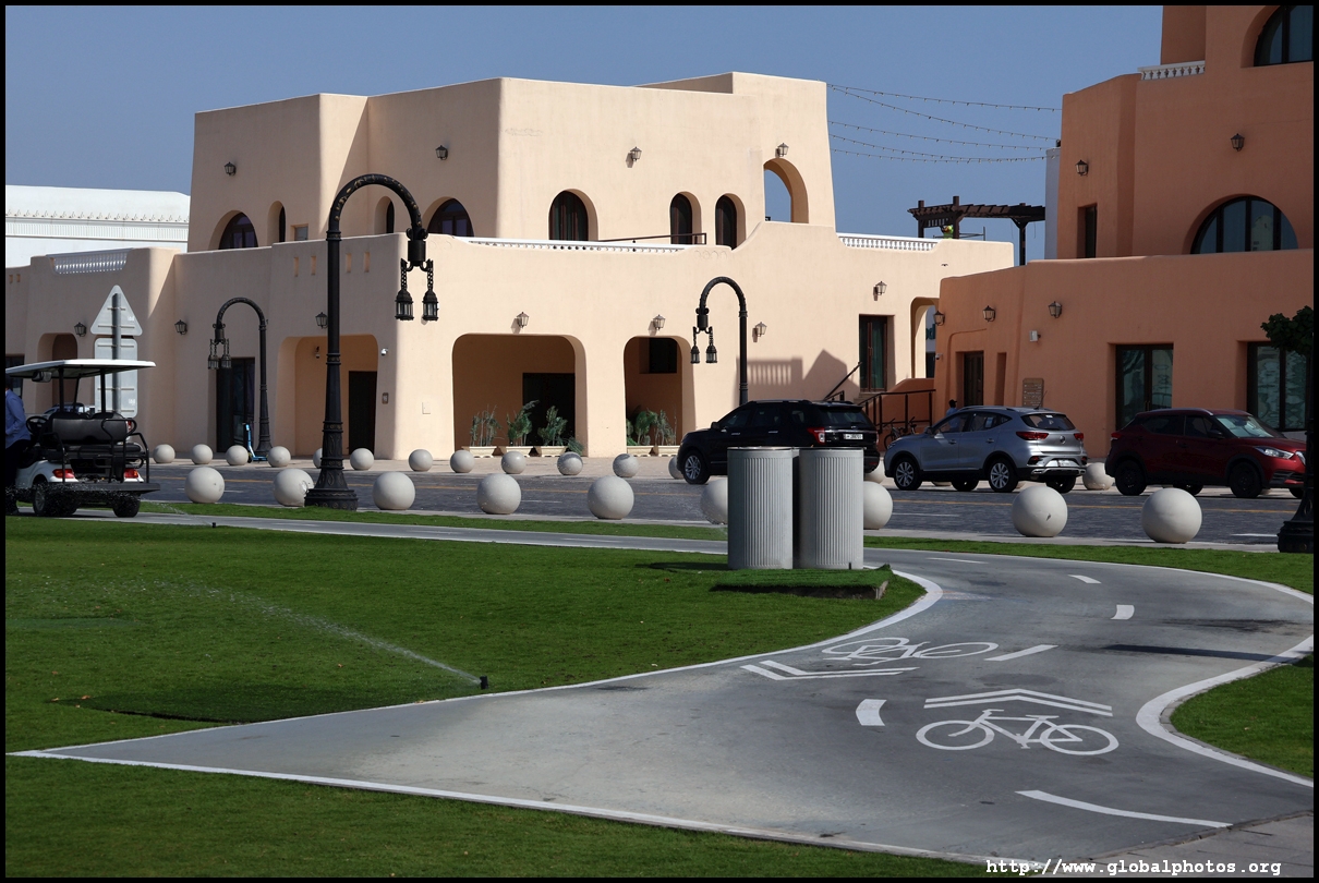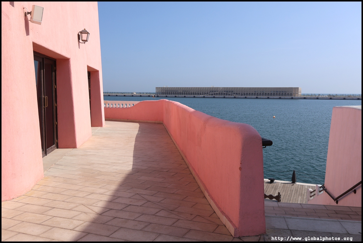 The Doha Port area today is a nice place for a walk. Just steps from the city centre, there is plenty of parkland and waterfront promenade where you can enjoy views of the skyline and yachts. Along the way, there are a few purpose-made attractions to entice you to stay.I came early in the morning during Ramadan before it got too hot. This area barely has any shade and even during March, it can get quite warm during the day. With the city's shops and restaurants shut during the daytime, there wasn't much to browse within the buildings but plenty of views outside to enjoy. To the east of Box Park, Mina District is a colourful neighbourhood with pedestrianized streets set against pastel-coloured buildings. This is a redevelopment of the old port into a new cruise terminal and fish market. At the northern end of the district, the views open up again and you have the skyline in front of you once more, this time slightly closer than Box Park.