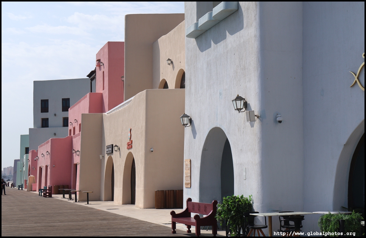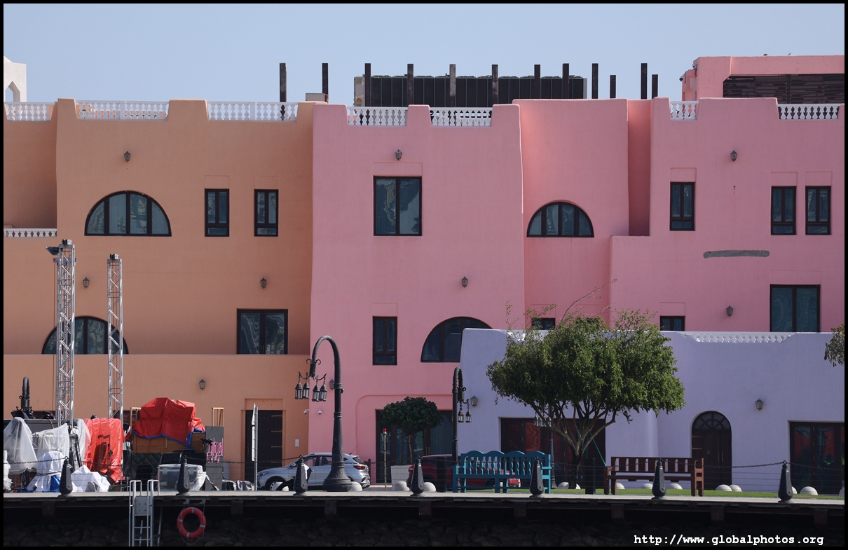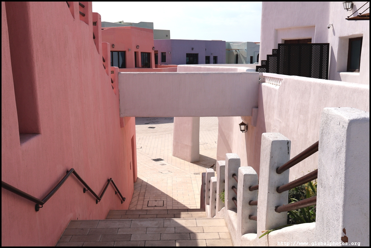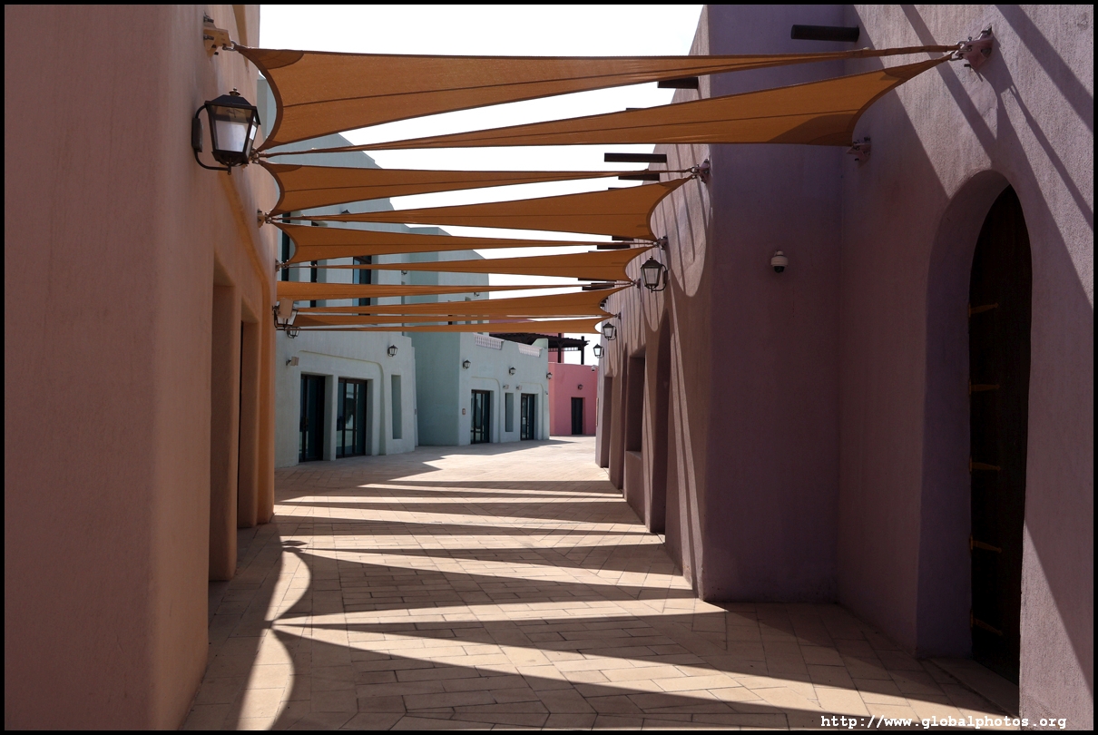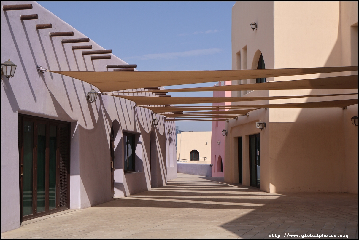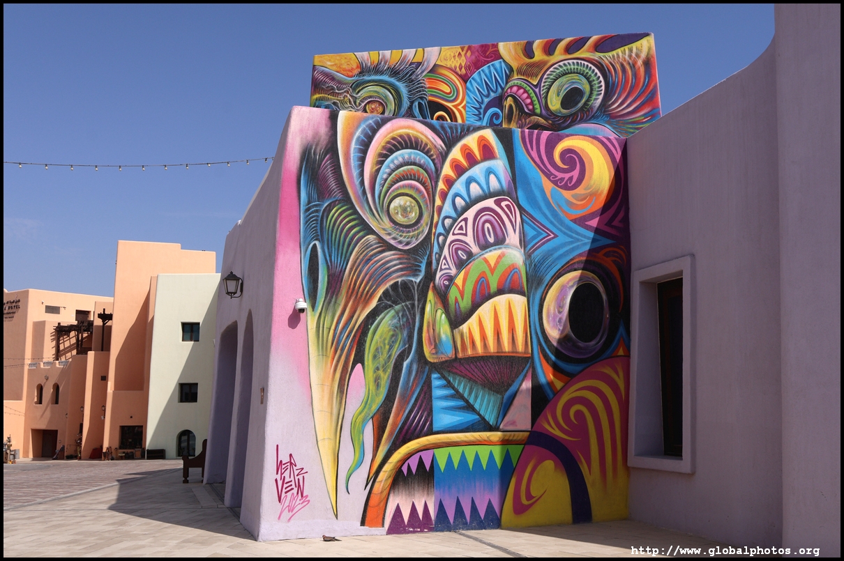 The Doha Port area today is a nice place for a walk. Just steps from the city centre, there is plenty of parkland and waterfront promenade where you can enjoy views of the skyline and yachts. Along the way, there are a few purpose-made attractions to entice you to stay.I came early in the morning during Ramadan before it got too hot. This area barely has any shade and even during March, it can get quite warm during the day. With the city's shops and restaurants shut during the daytime, there wasn't much to browse within the buildings but plenty of views outside to enjoy. To the east of Box Park, Mina District is a colourful neighbourhood with pedestrianized streets set against pastel-coloured buildings. This is a redevelopment of the old port into a new cruise terminal and fish market. At the northern end of the district, the views open up again and you have the skyline in front of you once more, this time slightly closer than Box Park.