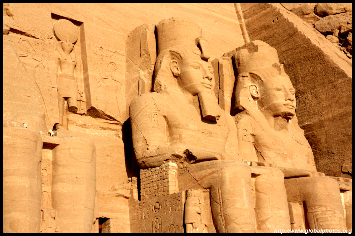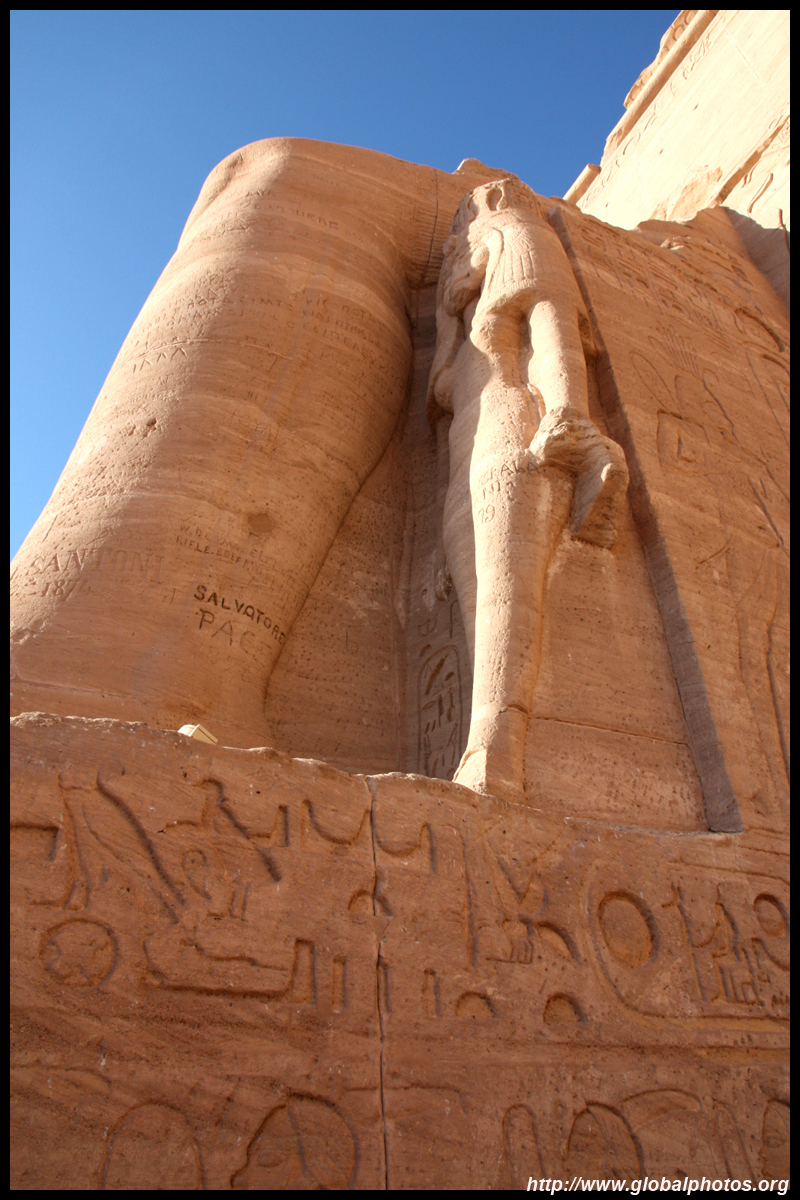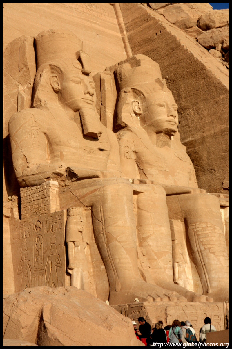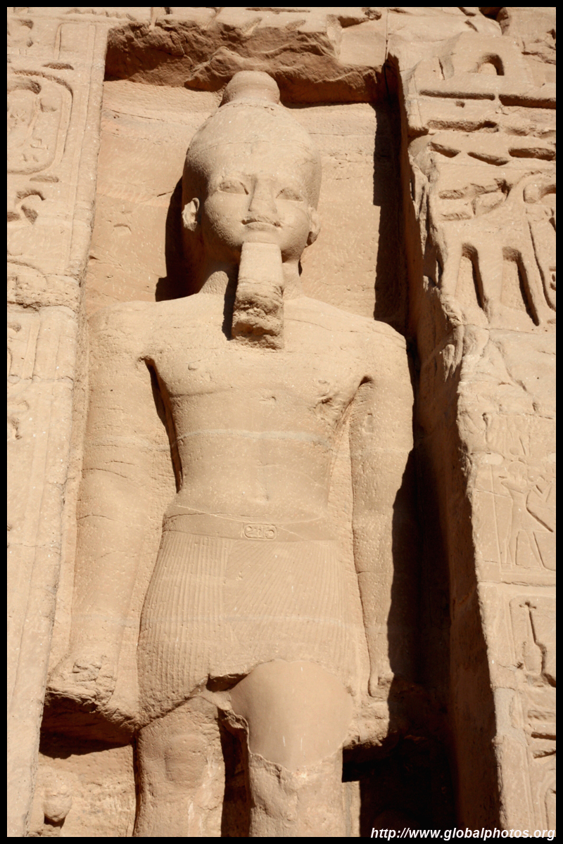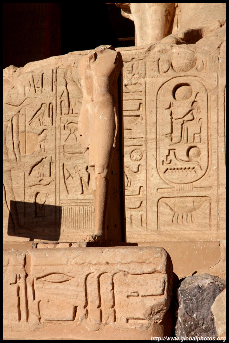 Notice on the left side there is a statue with a missing head. It was lost in an earthquake back in 27 BC.
