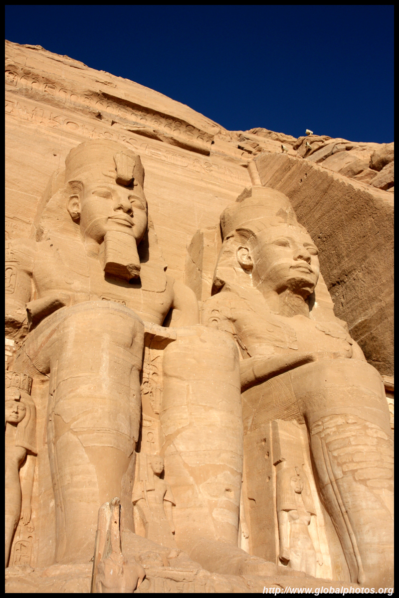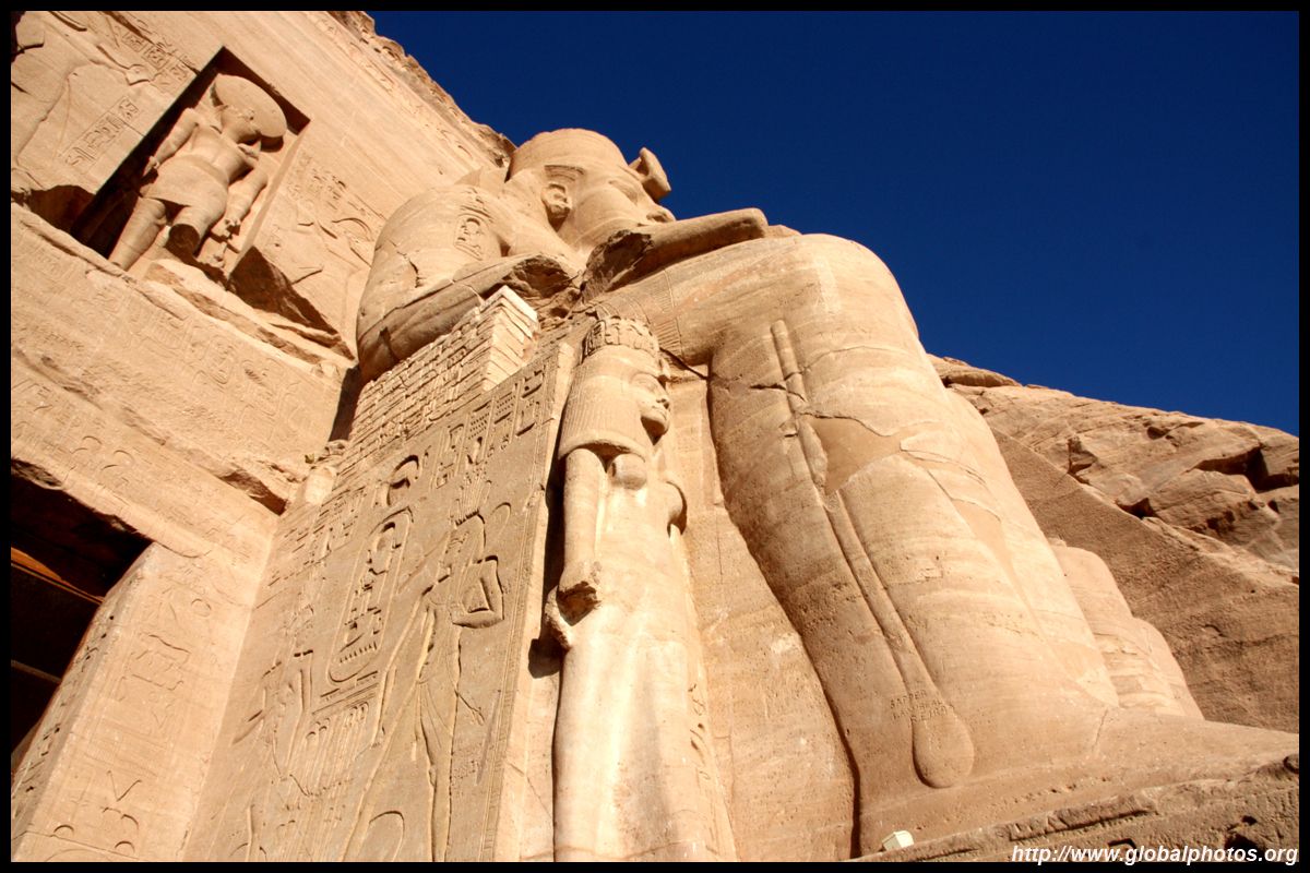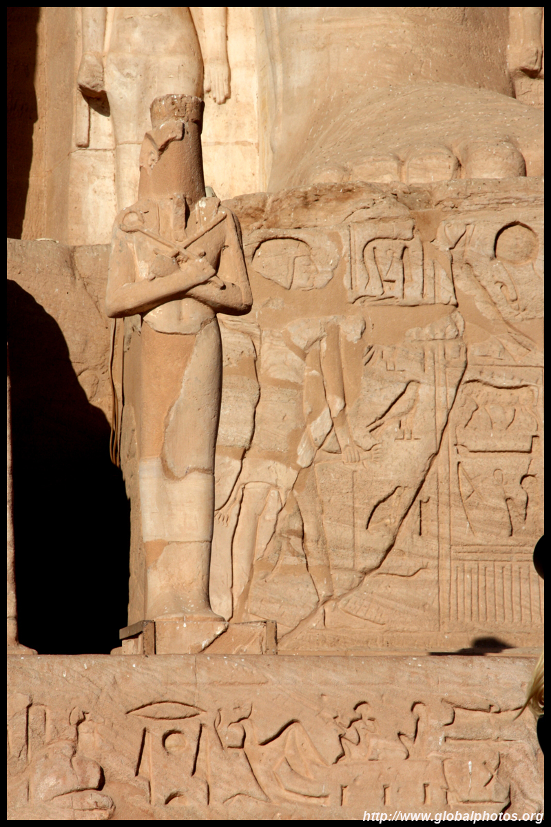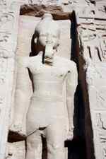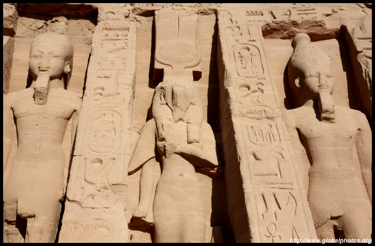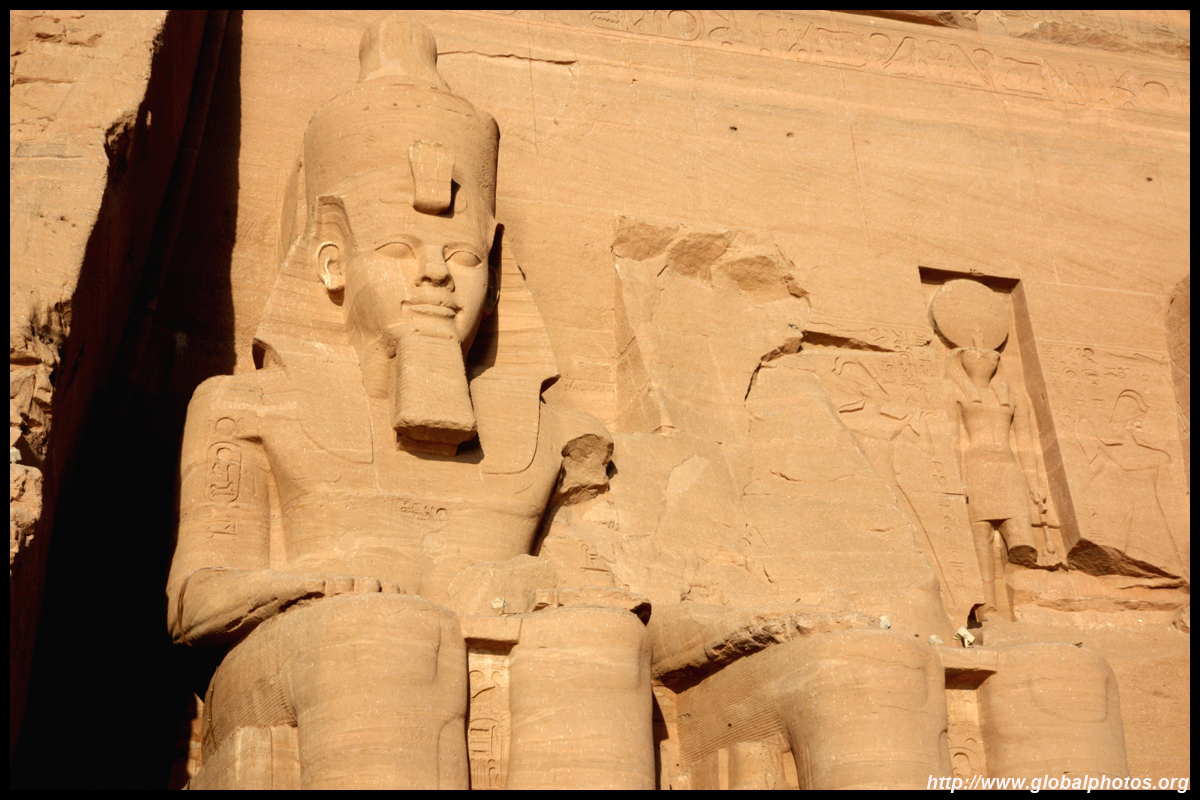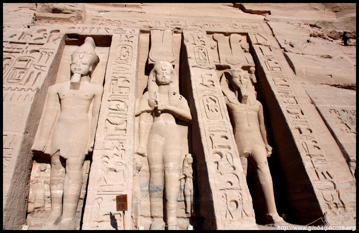 Notice on the left side there is a statue with a missing head. It was lost in an earthquake back in 27 BC.