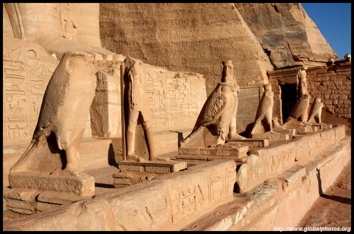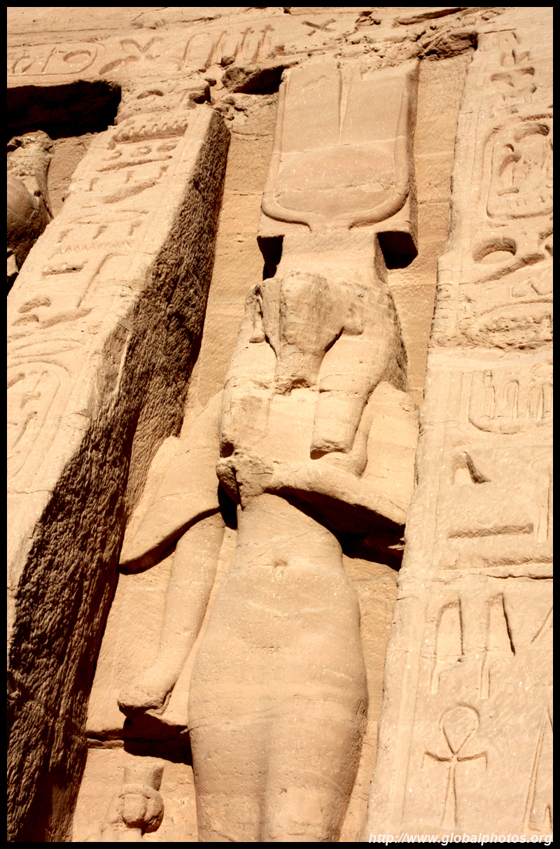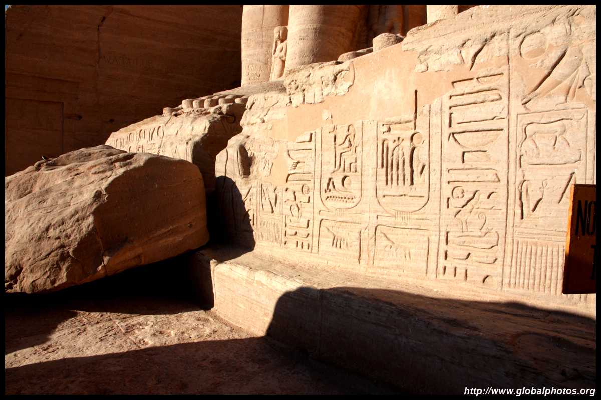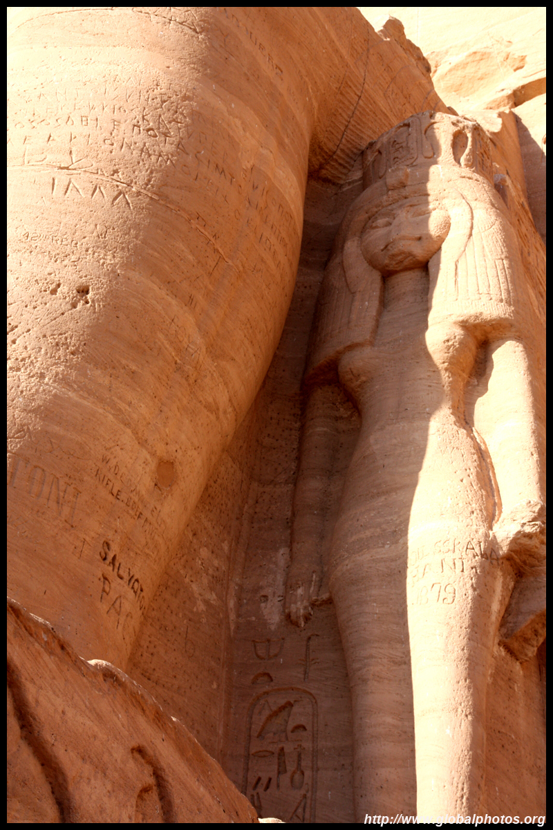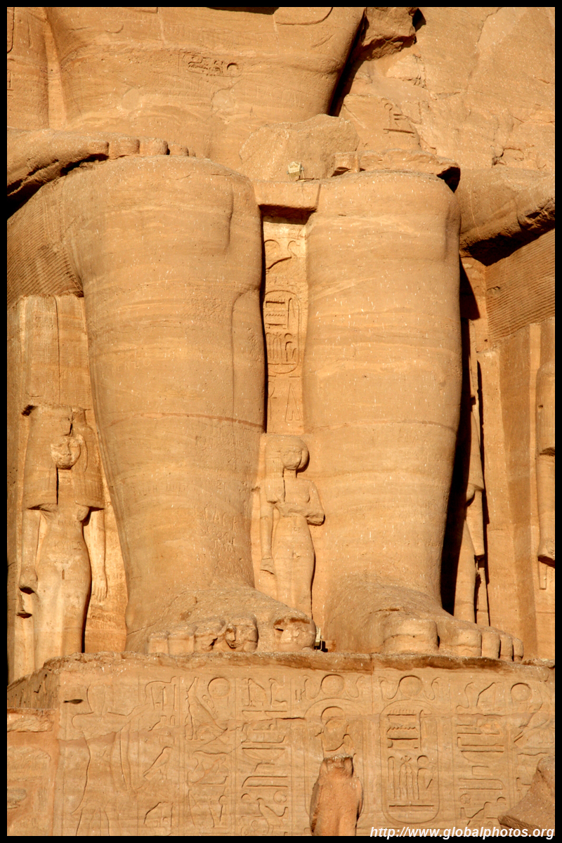Notice on the left side there is a statue with a missing head. It was lost in an earthquake back in 27 BC.