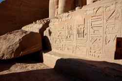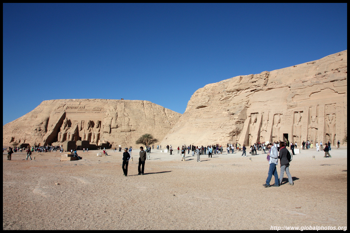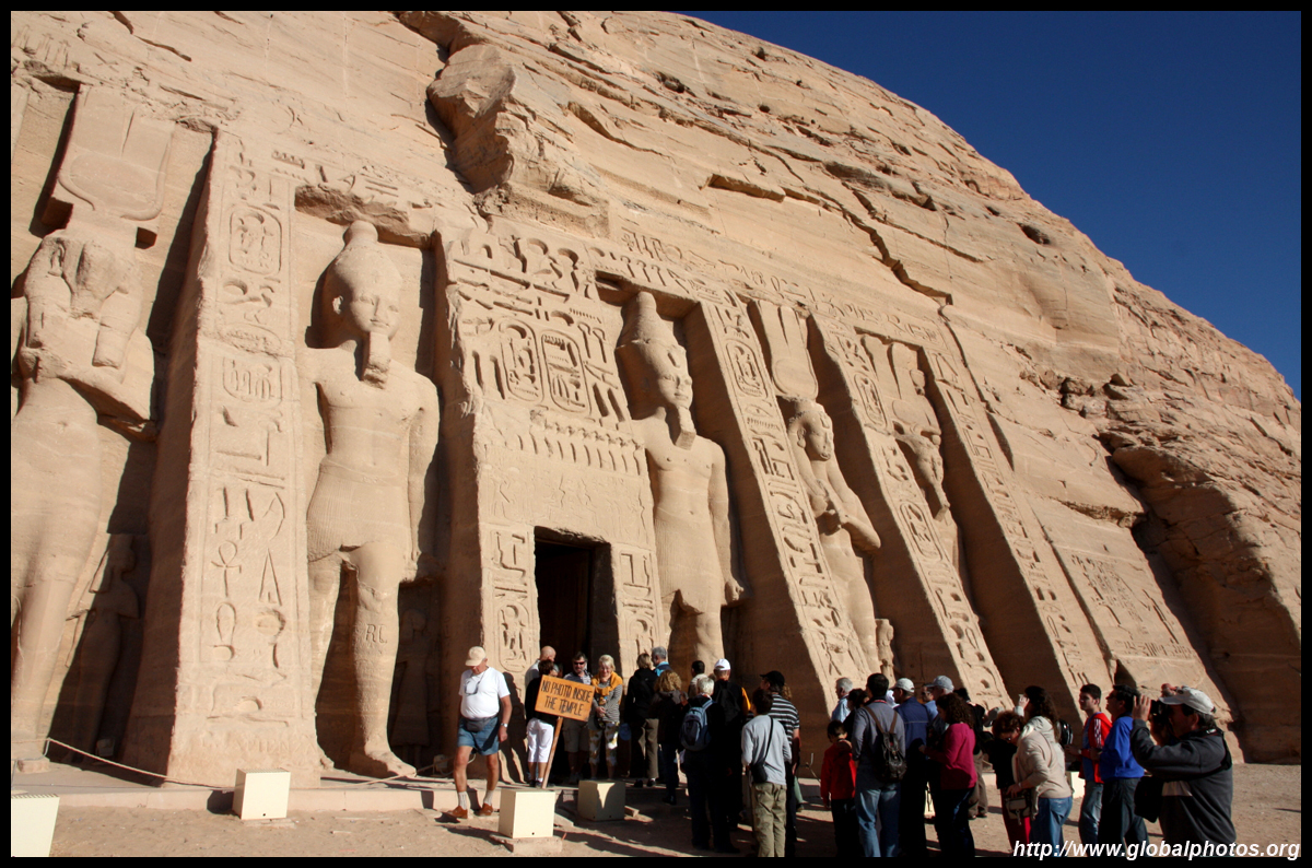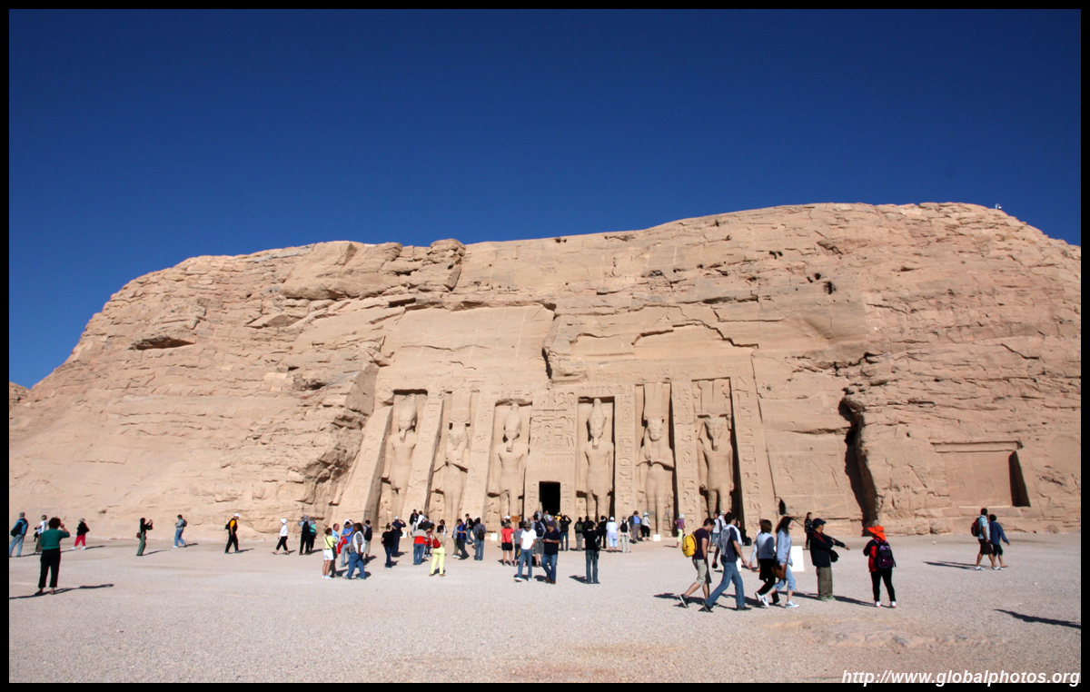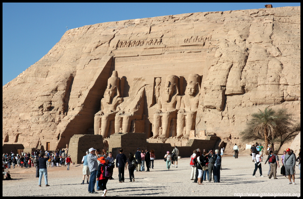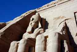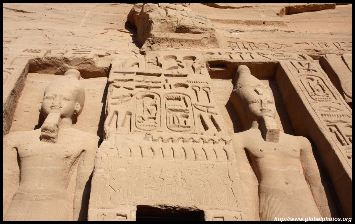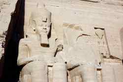 Notice on the left side there is a statue with a missing head. It was lost in an earthquake back in 27 BC.