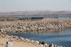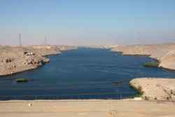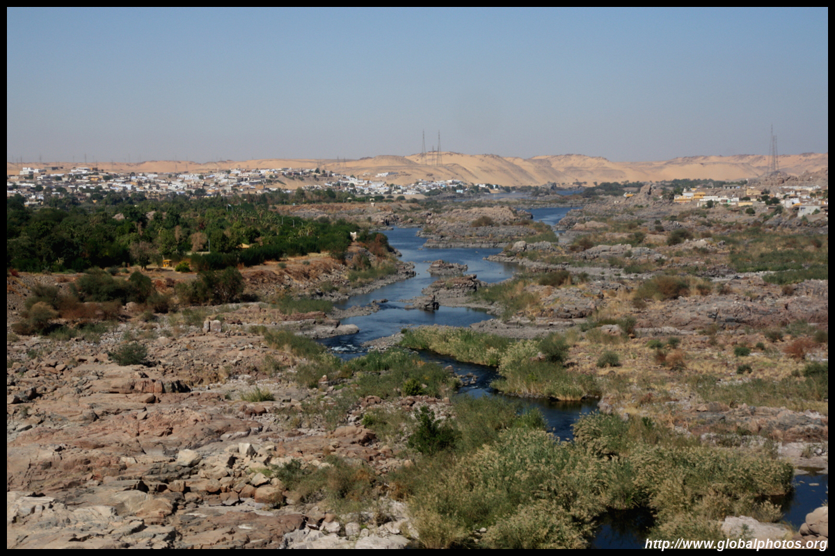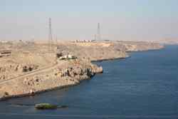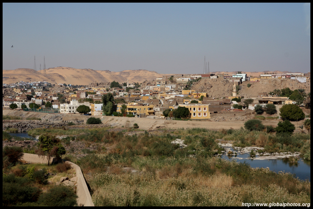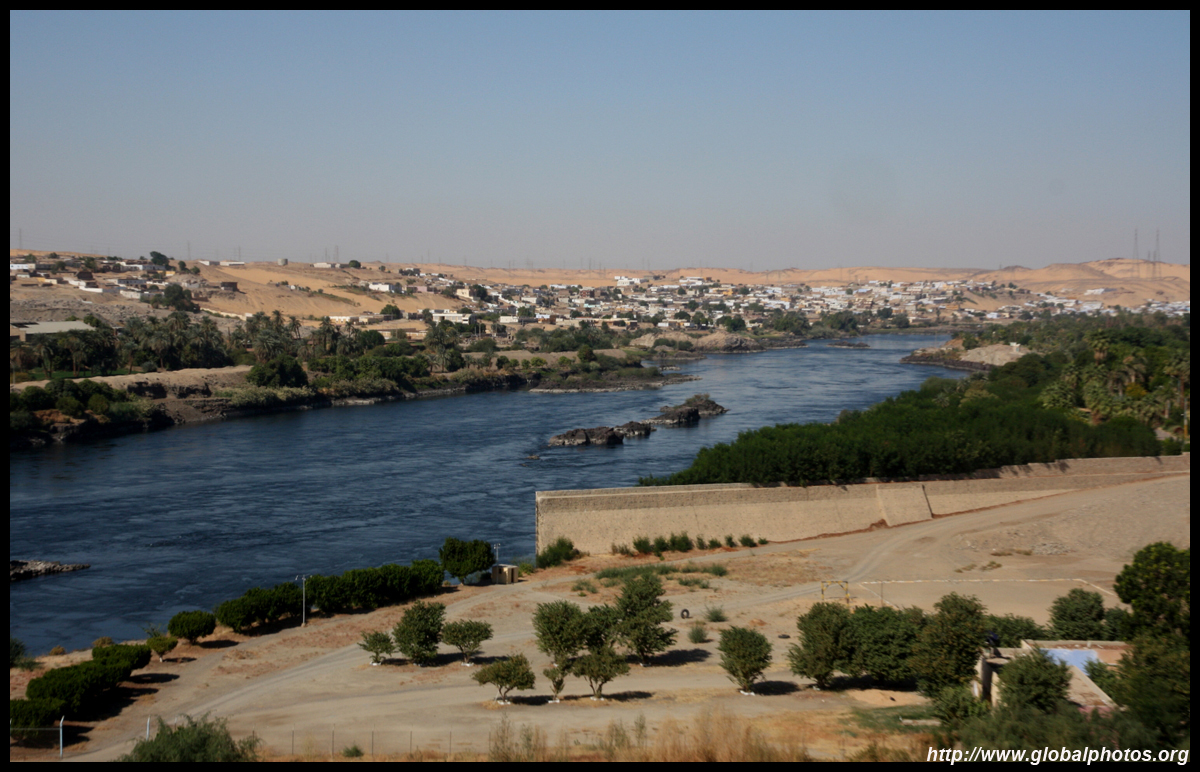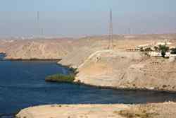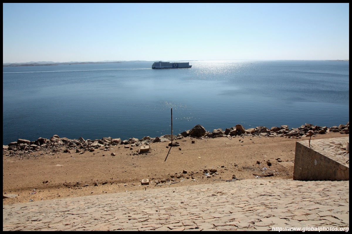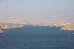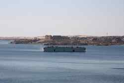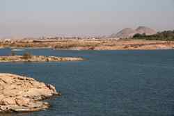 My Nile cruise ended in Aswan, Egypt's southernmost city. This was an important military position to guard the southern border since ancient times. The Nile divides the desert from the rest of town. Here, the sand shines against the afternoon sun on the west bank.