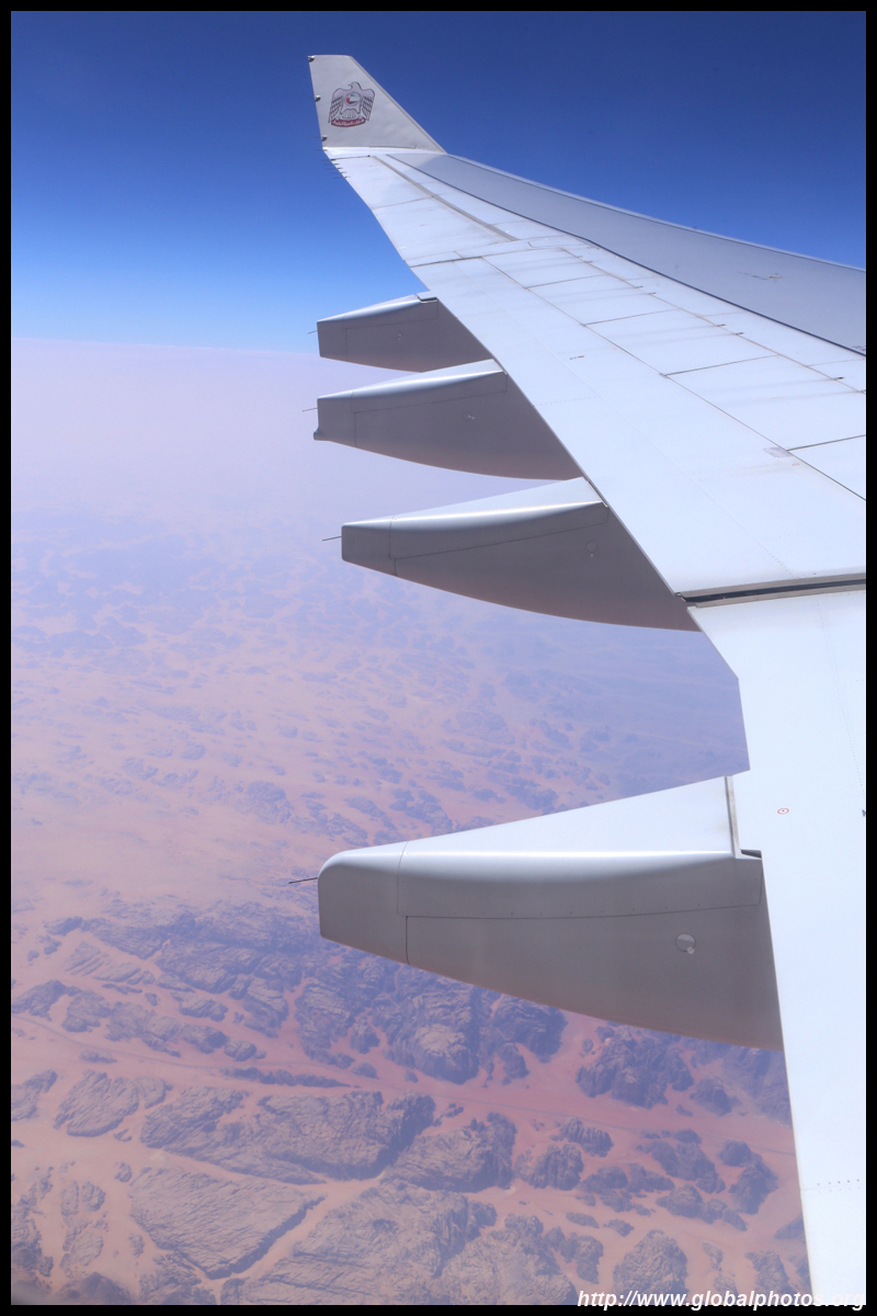 To begin, drinks and a snack were served. Meanwhile, I was peeking out to spot Qatar, the region's pariah for terrorist financing. We then crossed into Saudi Arabia's arid landscape. I had originally expected a more northerly route through Iran and Turkey.