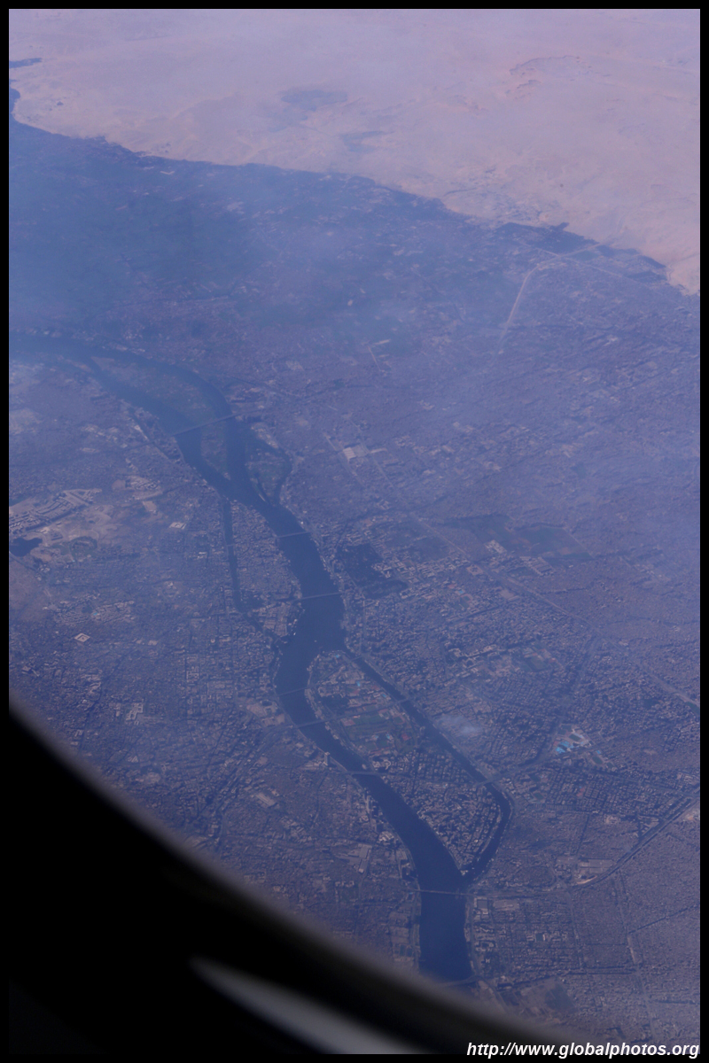 The heavy urban development in the narrow fertile valley looks like Cairo.
