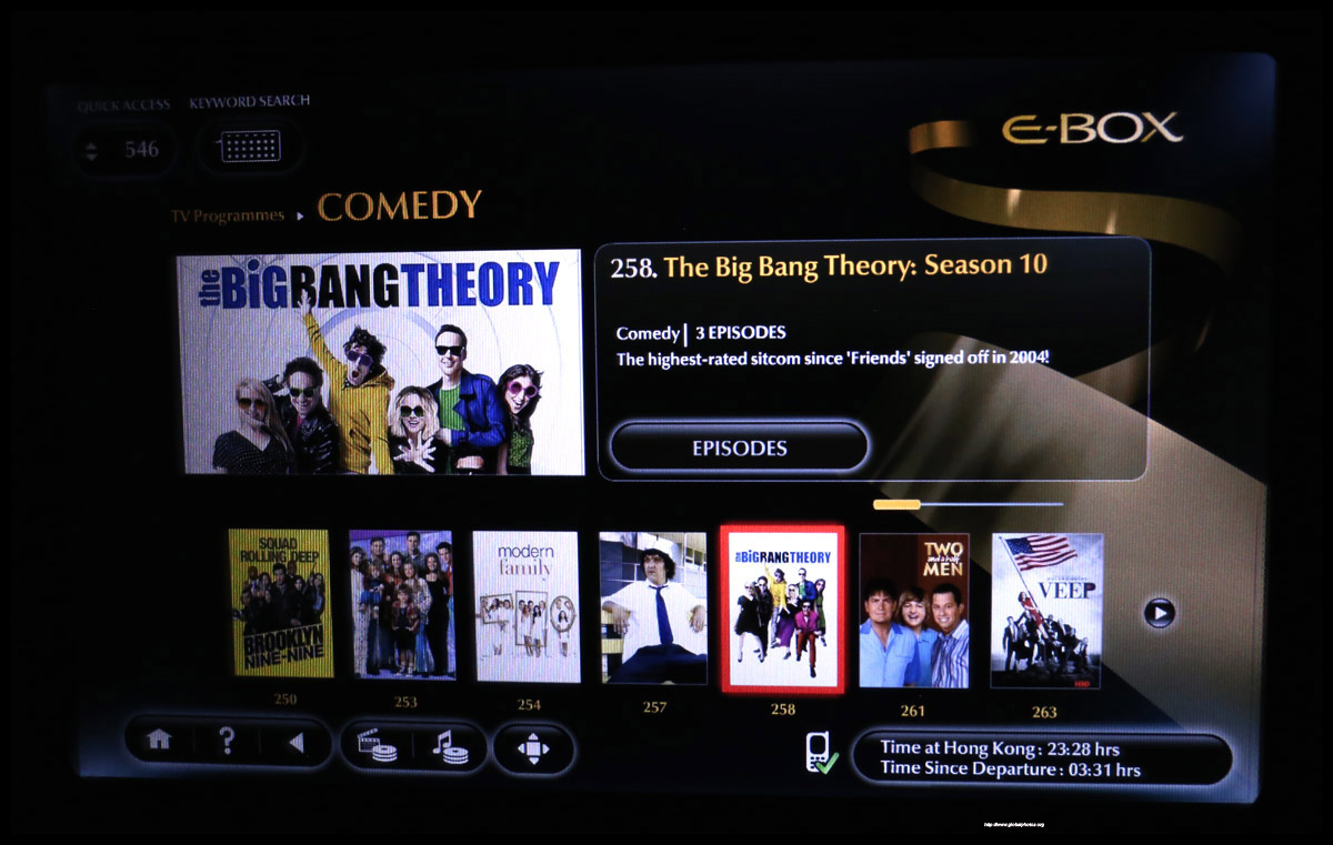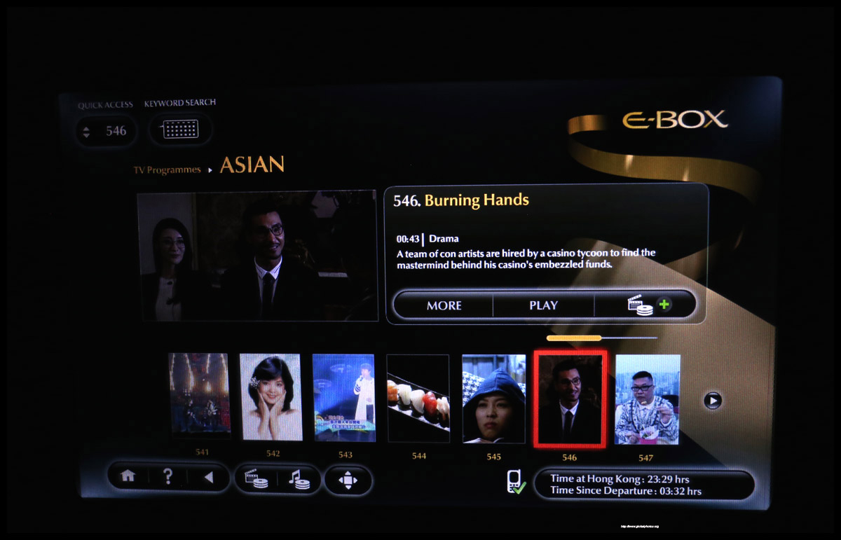The IFE menu was simple and fairly intuitive to navigate. I was surprised to find some Hong Kong TV shows.