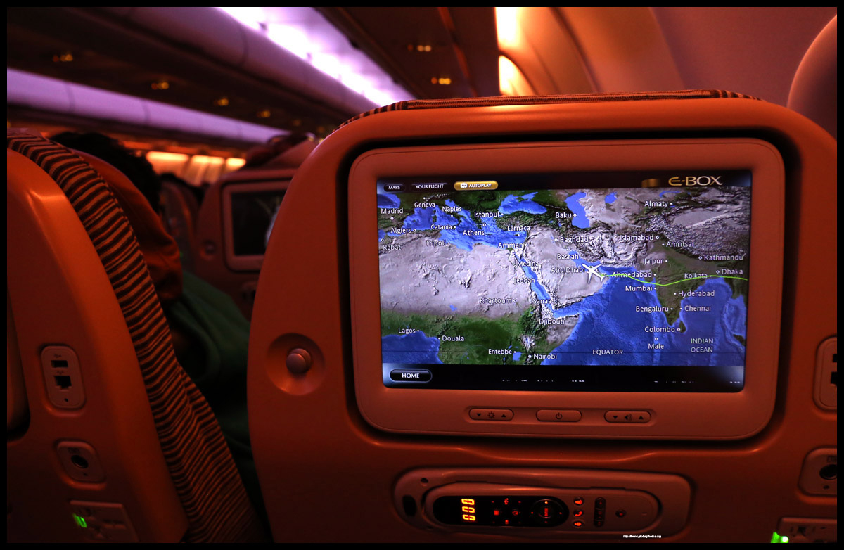 I settled into my window seat in cattle class. Before departure, they would play, and re-play the list of destinations they fly to, which was quite impressive.