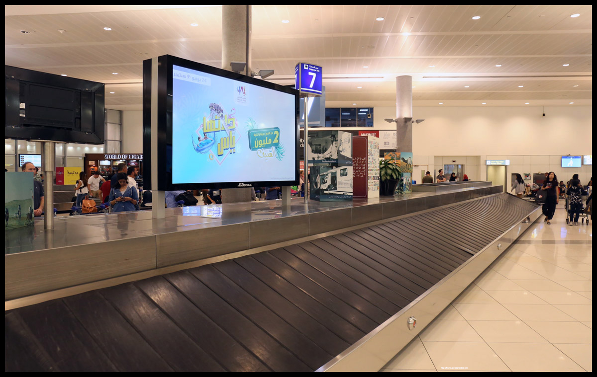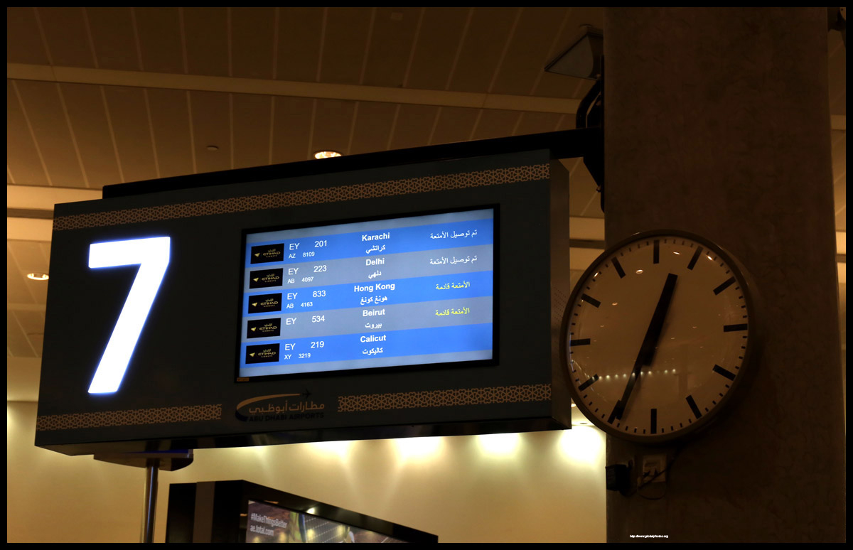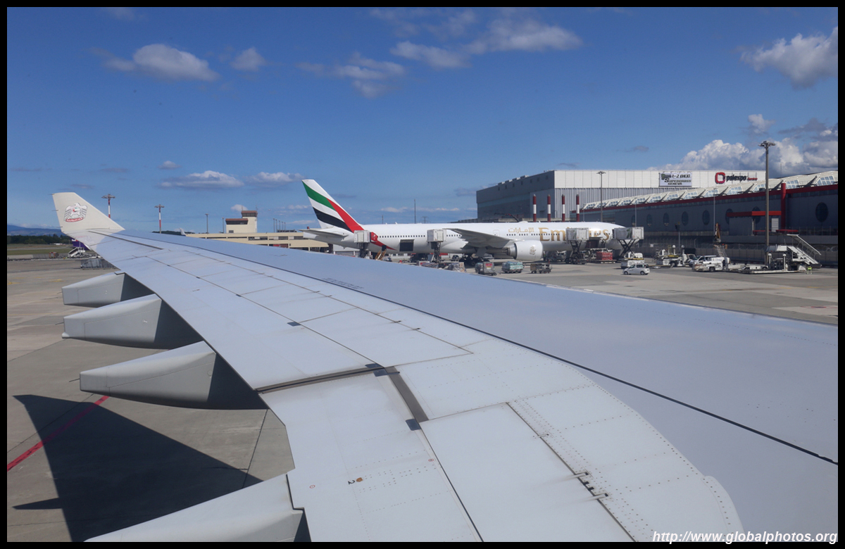 A long check-in line with minimal staff assistance was a welcome start to my morning in Abu Dhabi. There were no more delays today, so I was finally looking forward to leaving 40C heat for a more temperate Geneva. Terminal 3 is a much nicer and newer facility than the antique Terminal 1. As I captured a photo of the empty row on check-in desks, a security agent came to tell me that was not allowed. Strange.