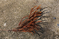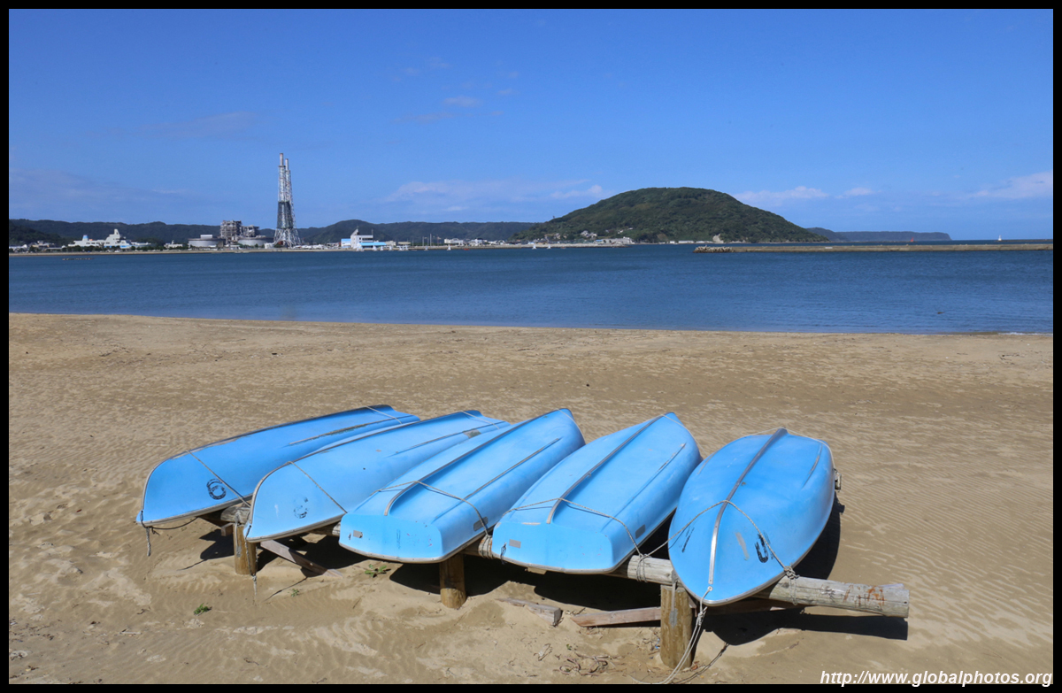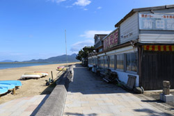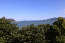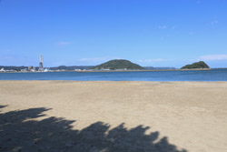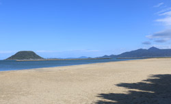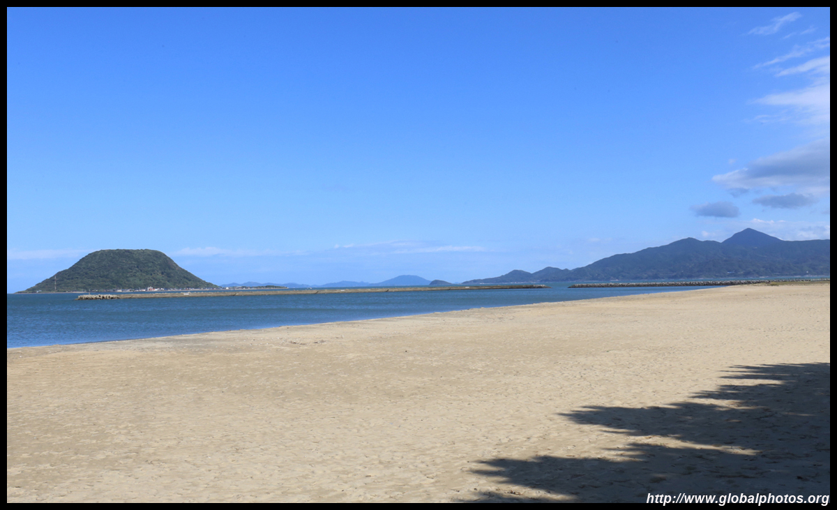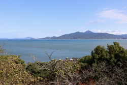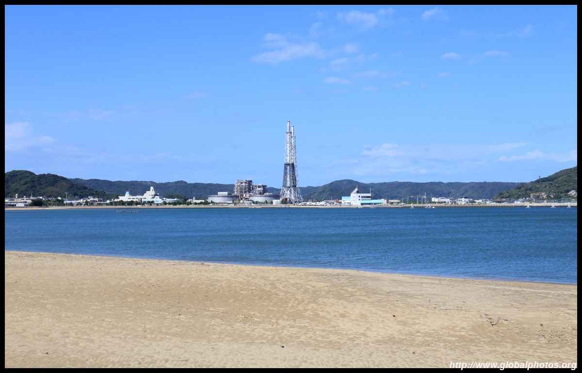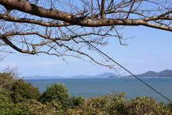 A short walk later, I arrived at an empty beach with a beautiful view of islands, the sea, and unfortunately, a few industrial chimneys as well.
