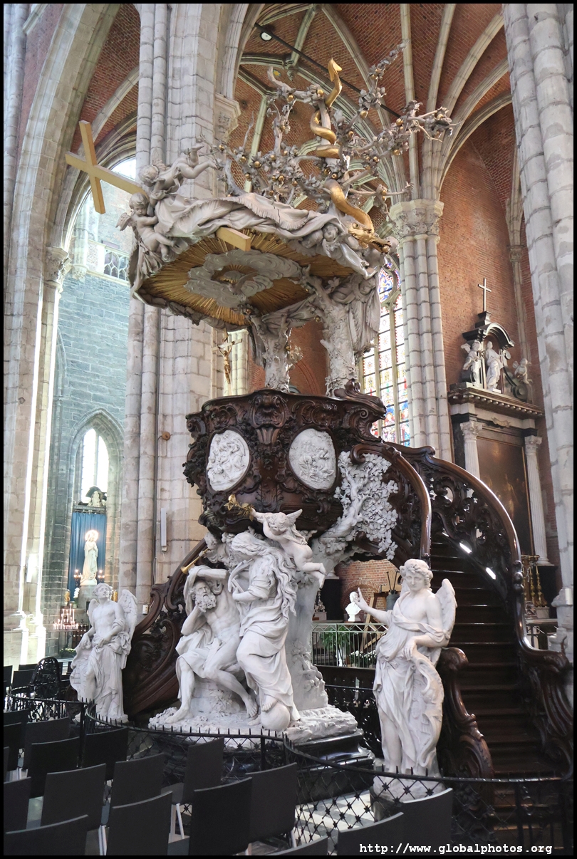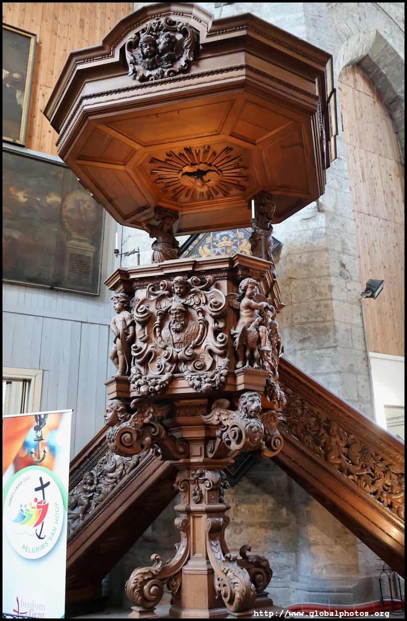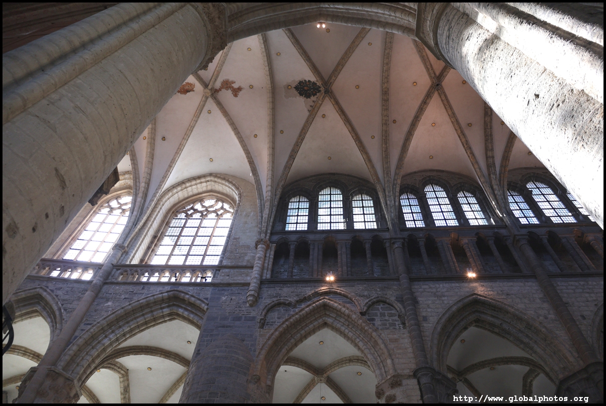 The Church of St. John the Baptist was converted in the 15th and 16th centuries to Saint Bavo's Cathedral at a time when the city was rich, powerful, and wanted larger and more extravagant churches. What we see today is the 3rd church on the site, with a 82m-high tower that marks it as one of the 3 towers in Ghent's medieval skyline.