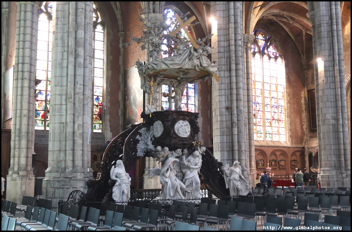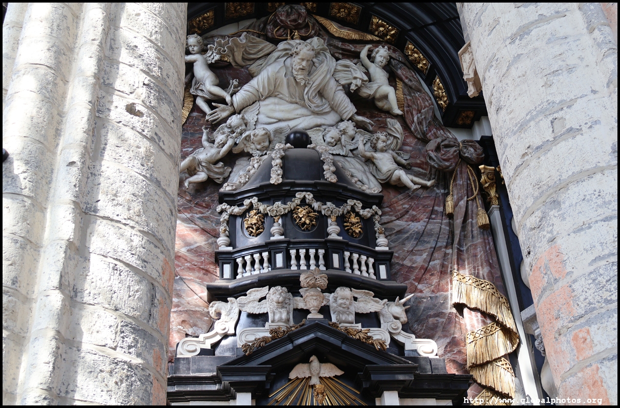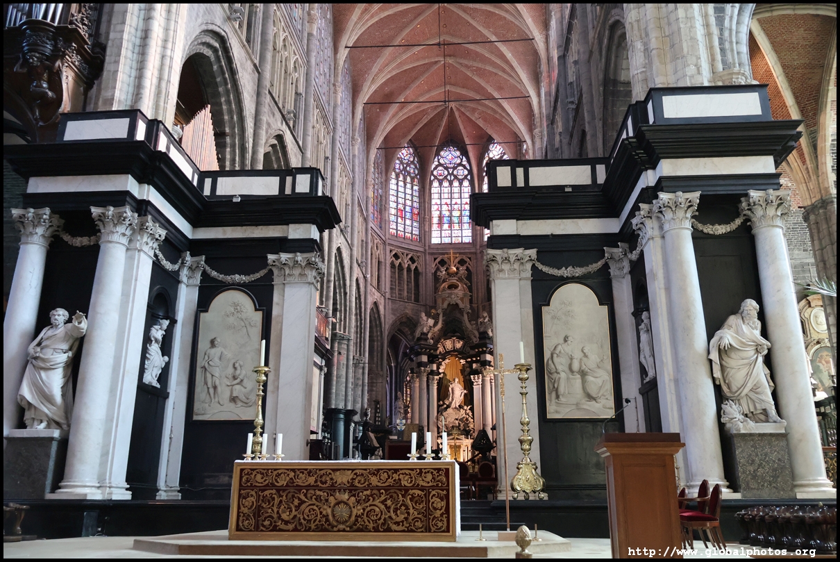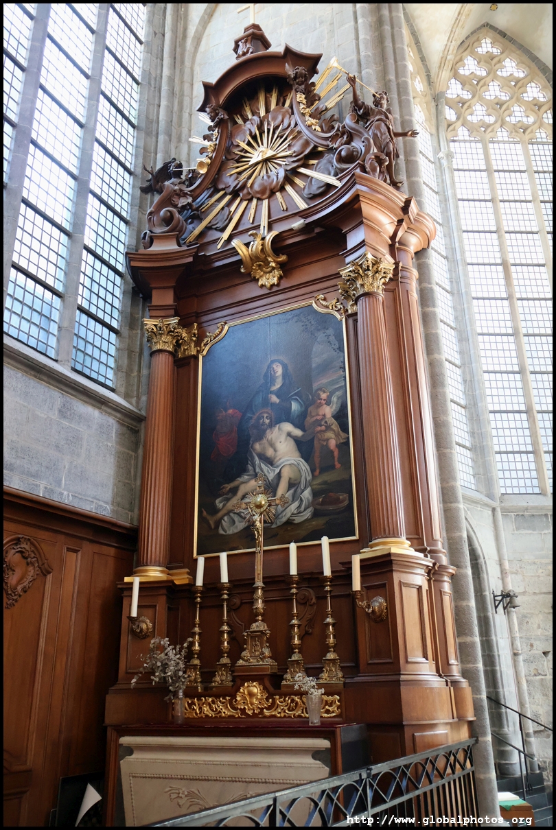 The Church of St. John the Baptist was converted in the 15th and 16th centuries to Saint Bavo's Cathedral at a time when the city was rich, powerful, and wanted larger and more extravagant churches. What we see today is the 3rd church on the site, with a 82m-high tower that marks it as one of the 3 towers in Ghent's medieval skyline.