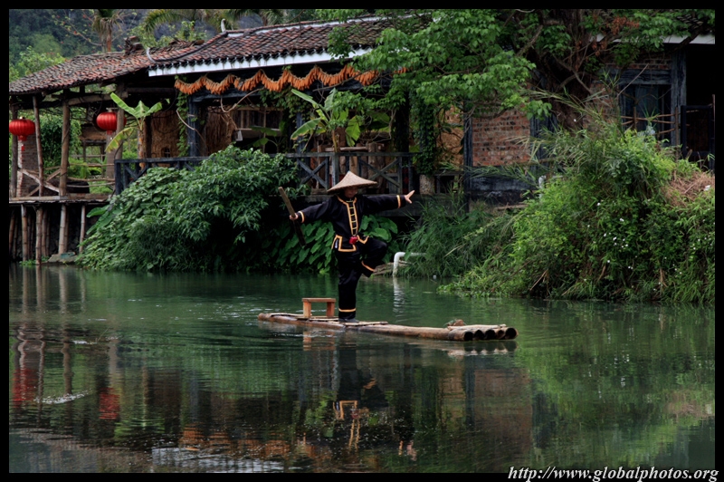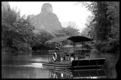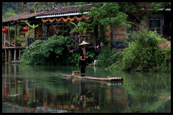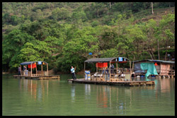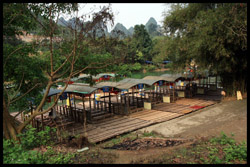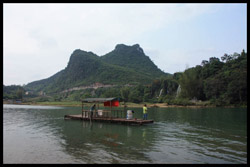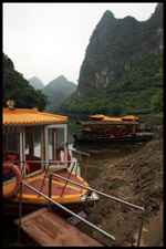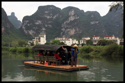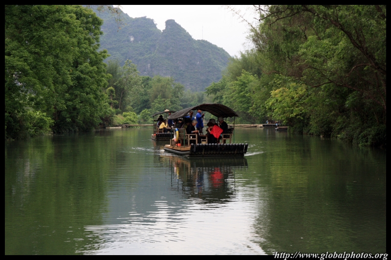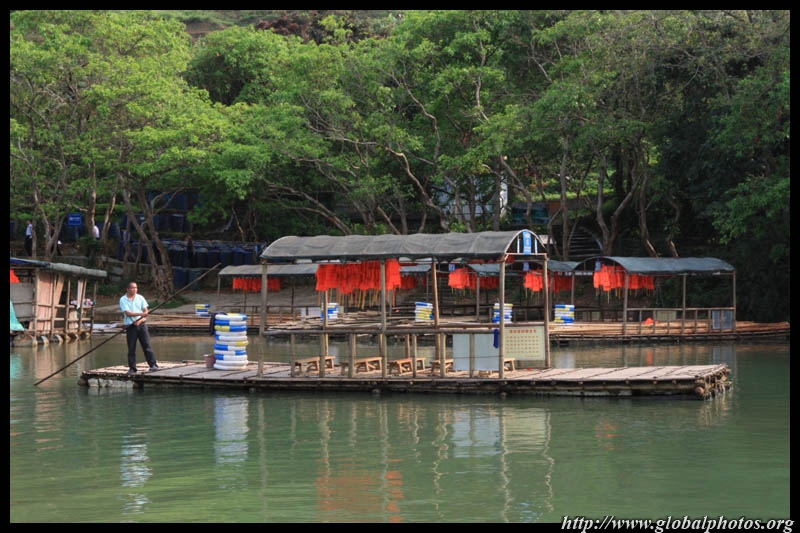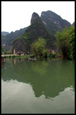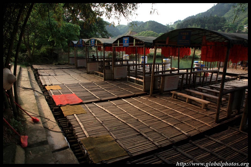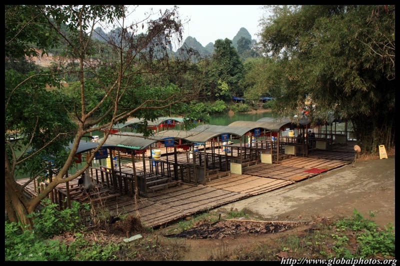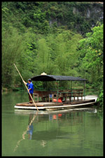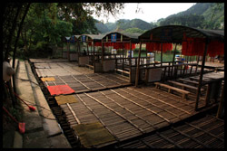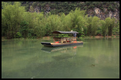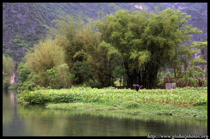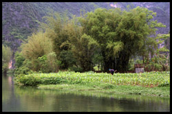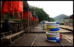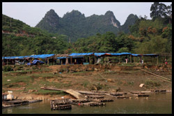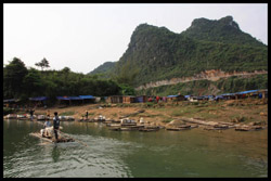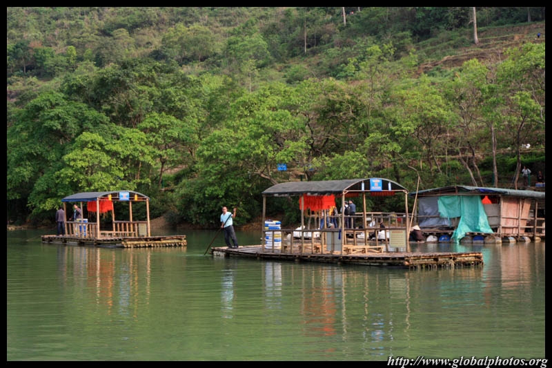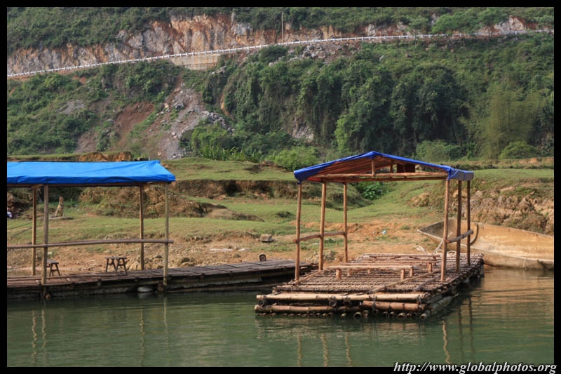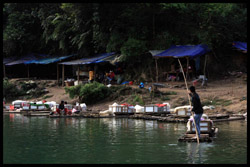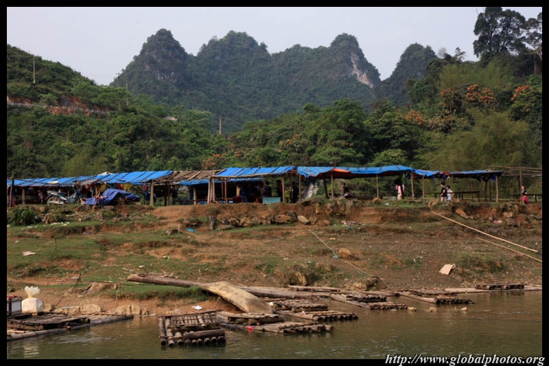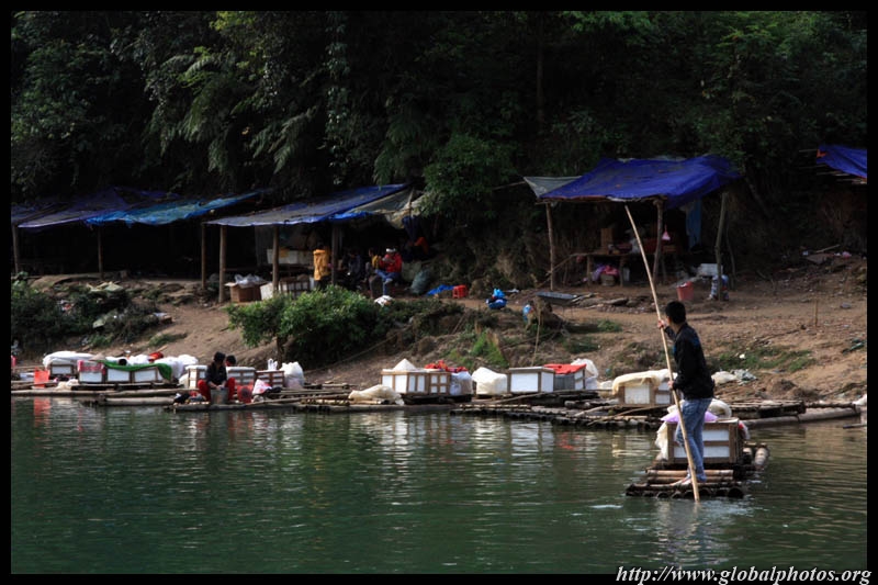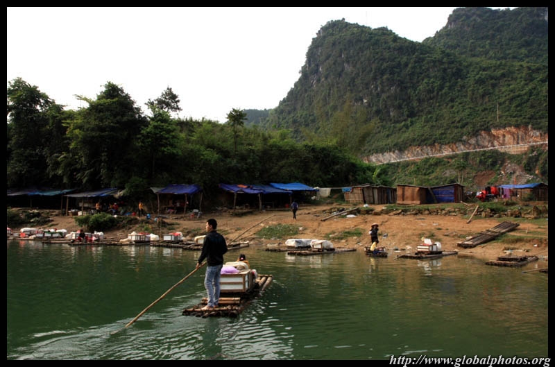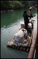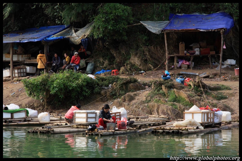 Vietnamese merchants sell various goods on their bamboo rafts along the river. They cross the maritime boundary and can even dock on the Chinese side, but they're not allowed to go onshore. I didn't see any border guards in the area to enforce the boundary.