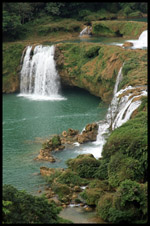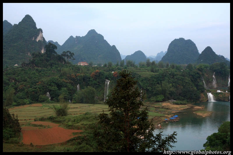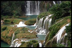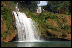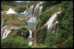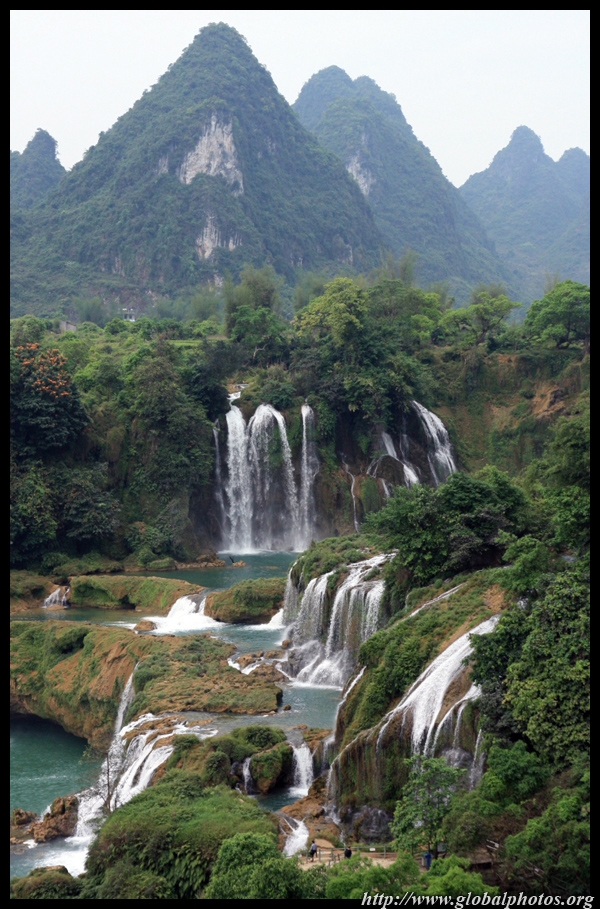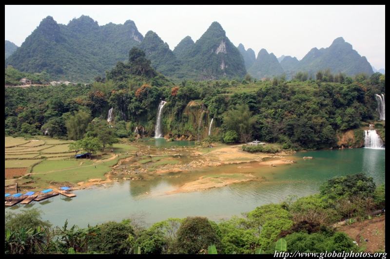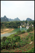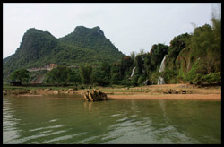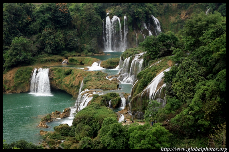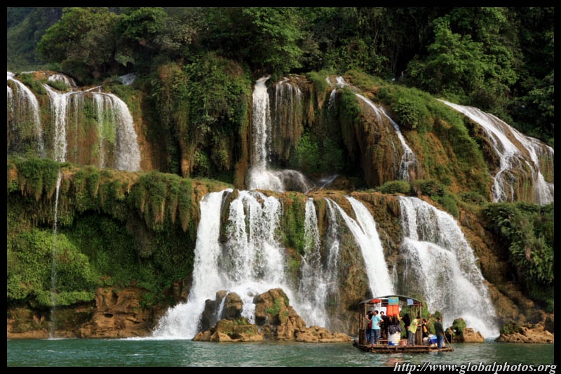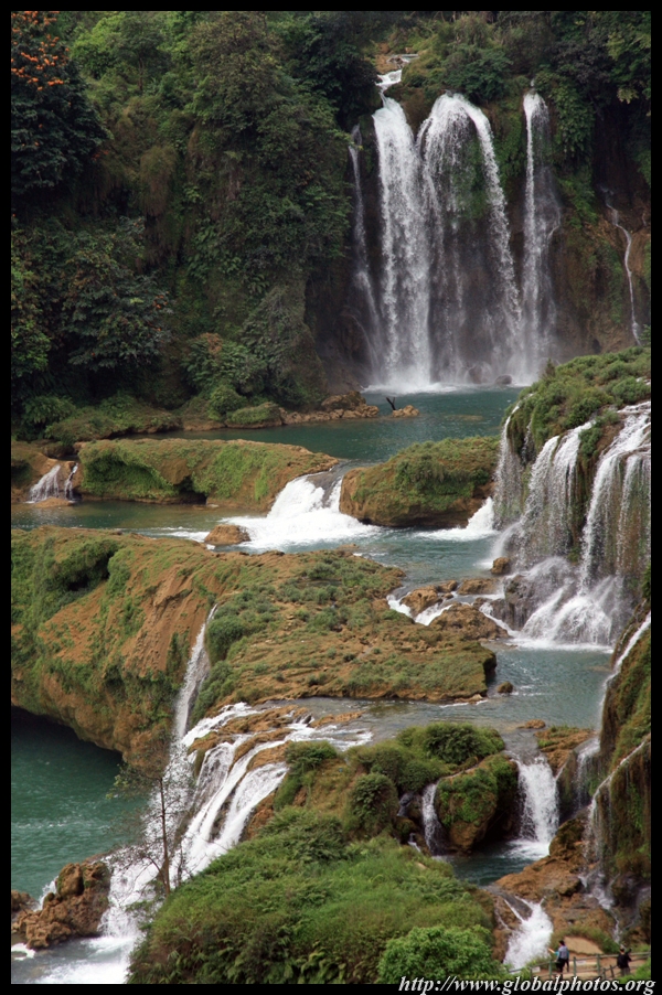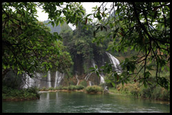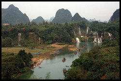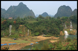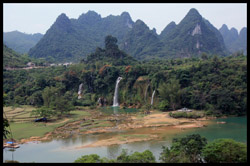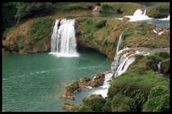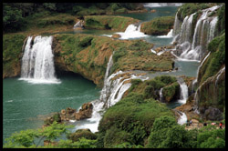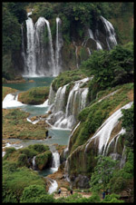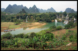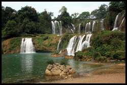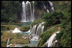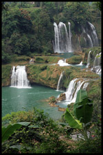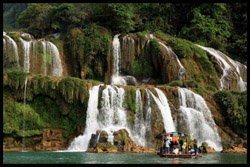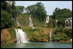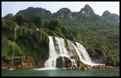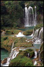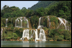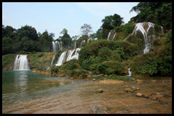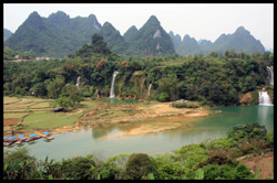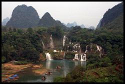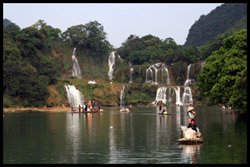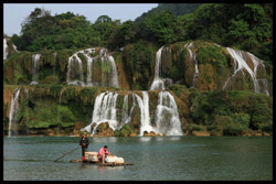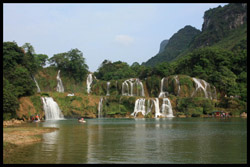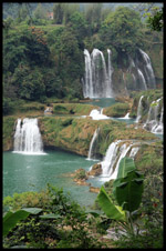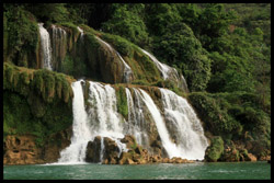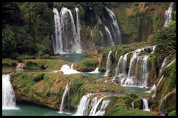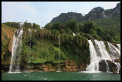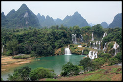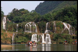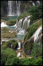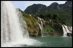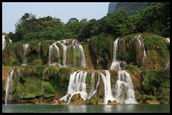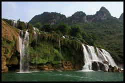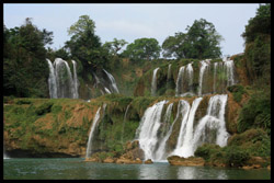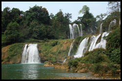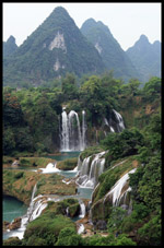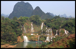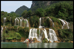 Detian Waterfalls straddles along the Vietnamese border and is the 4th largest transnational falls in the world. The 70m-drop is separated into several tiers and the falls is some 200m wide.