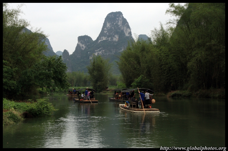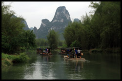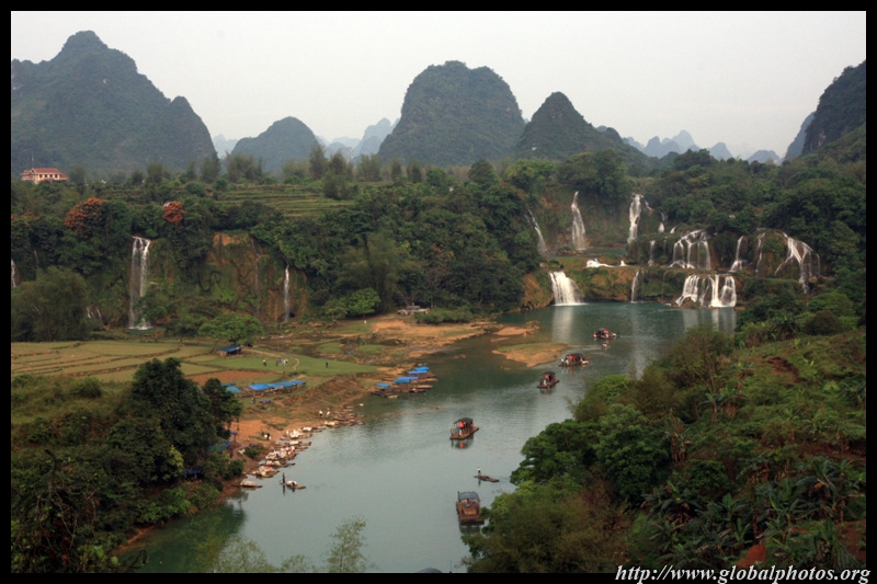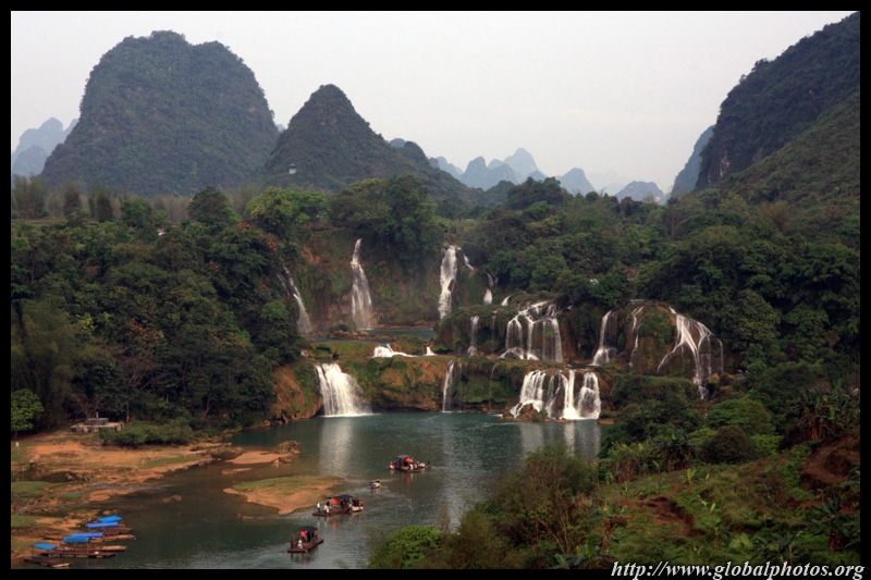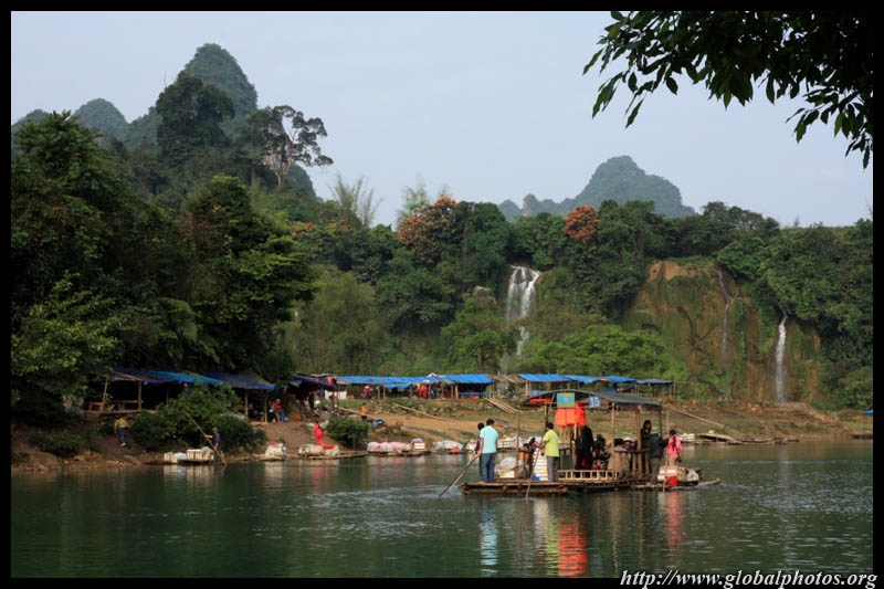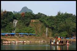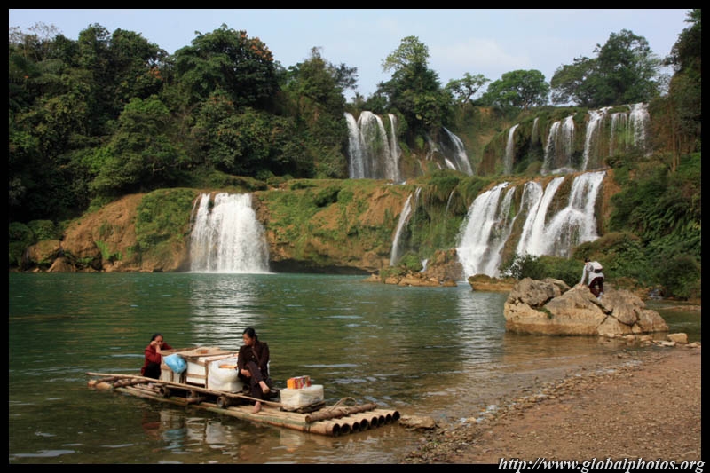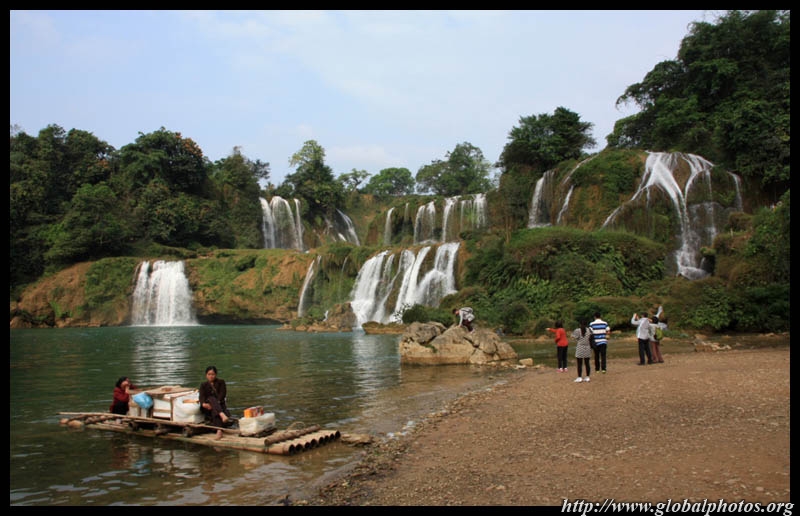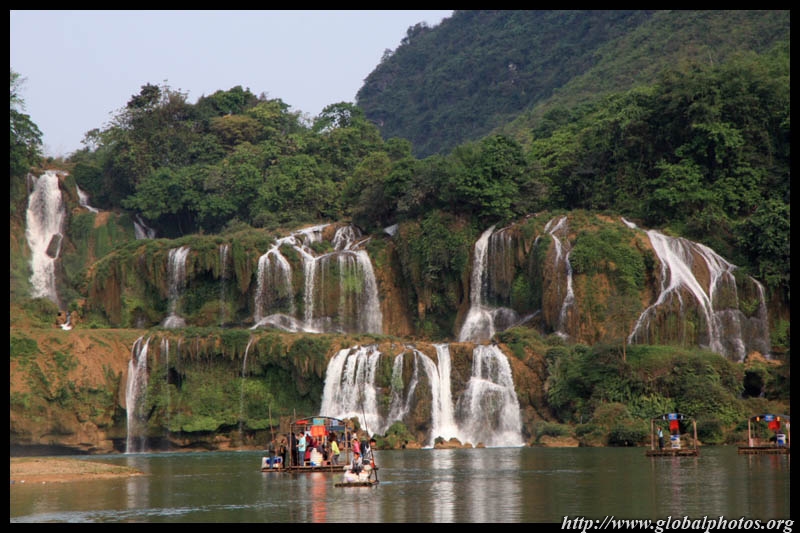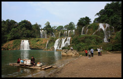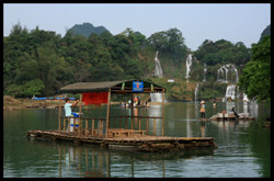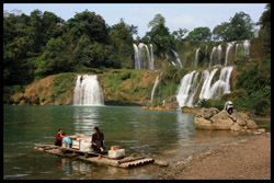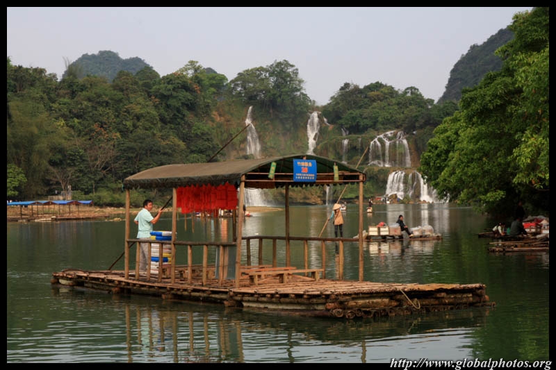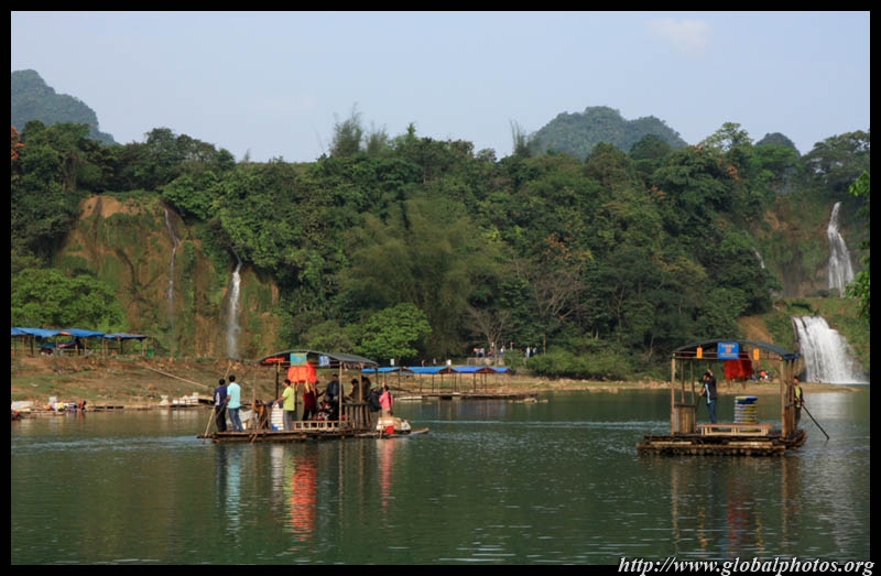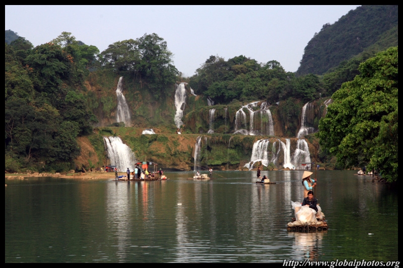 Bamboo boats depart from the Chinese side for an up-close view of the falls.