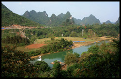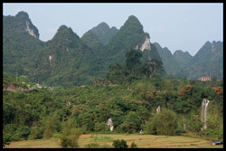 This part of Guangxi is sparsely populated, and with good reason. There are a lot of mountains and transport is reliant on narrow but well-paved roads.
