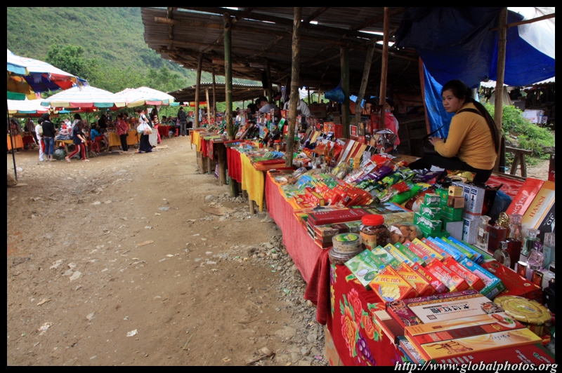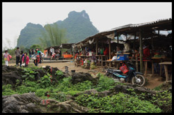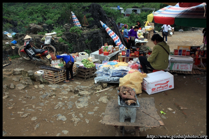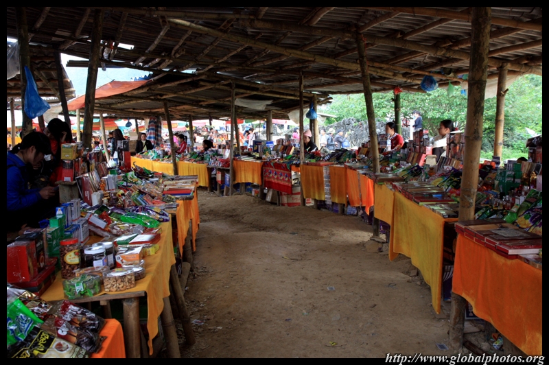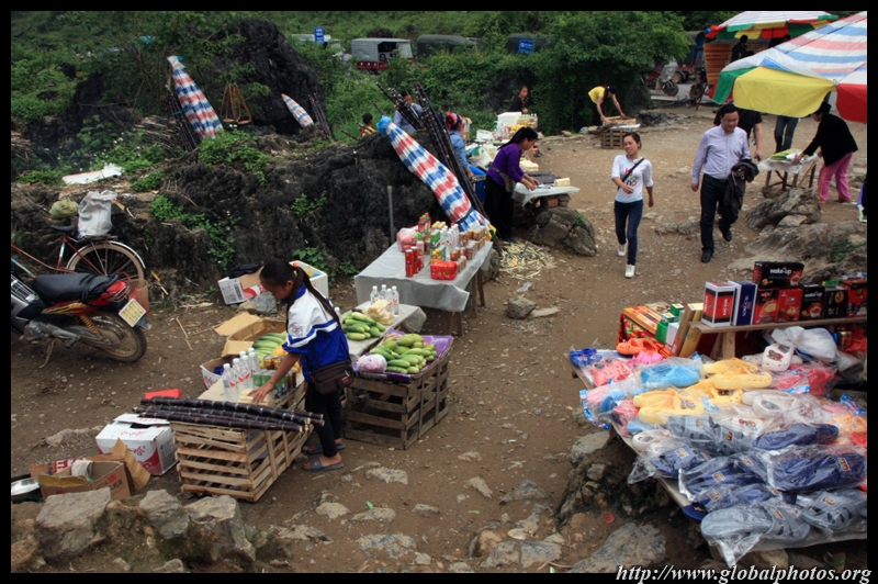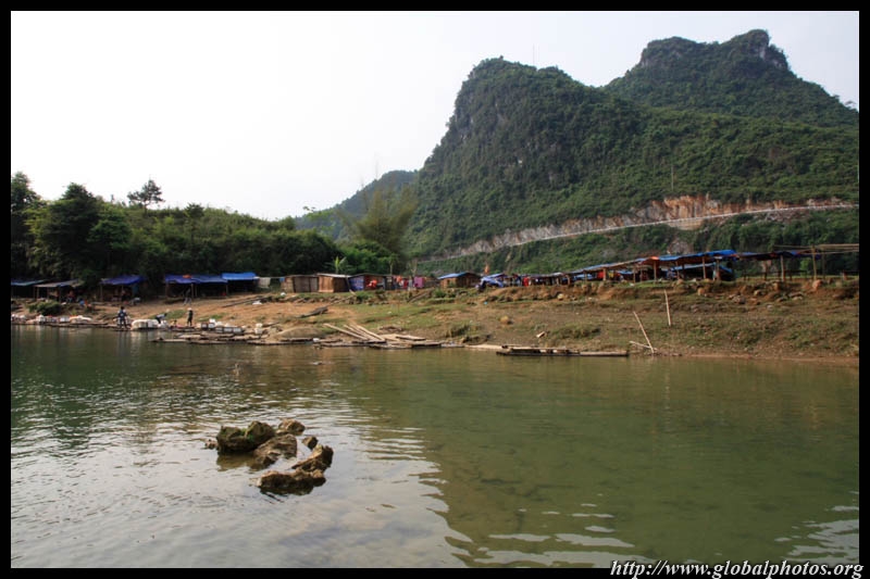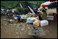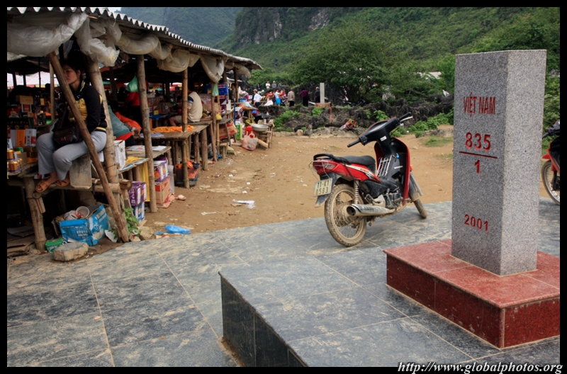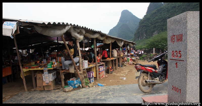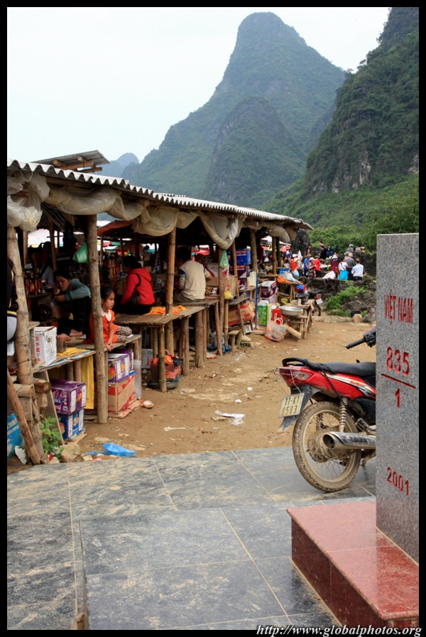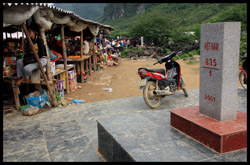 Notice the market is exclusively on the Vietnamese side of the border. The Chinese market is behind the trees in the background and doesn't actually front the border itself.
