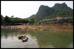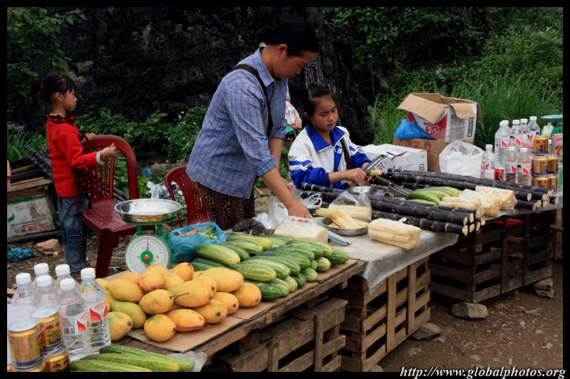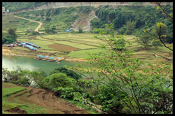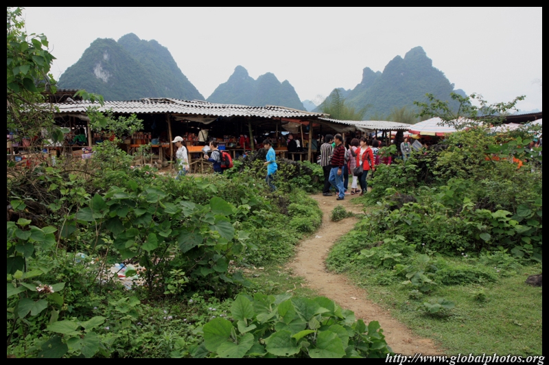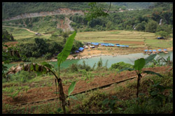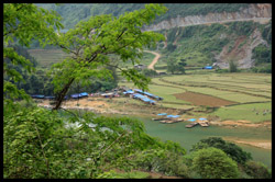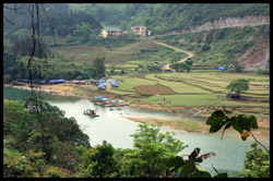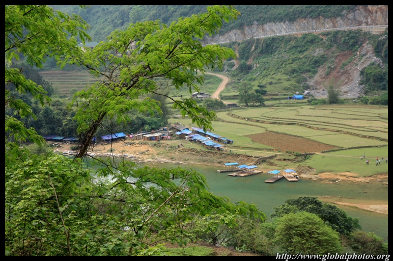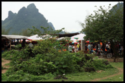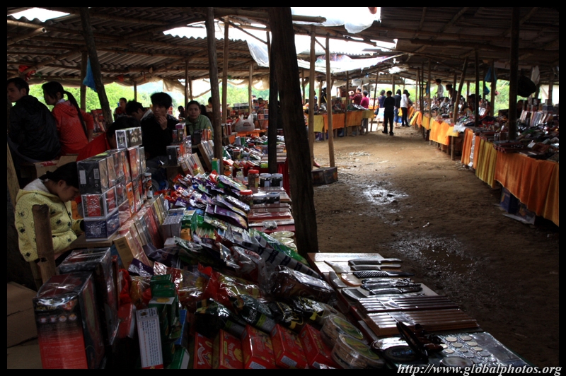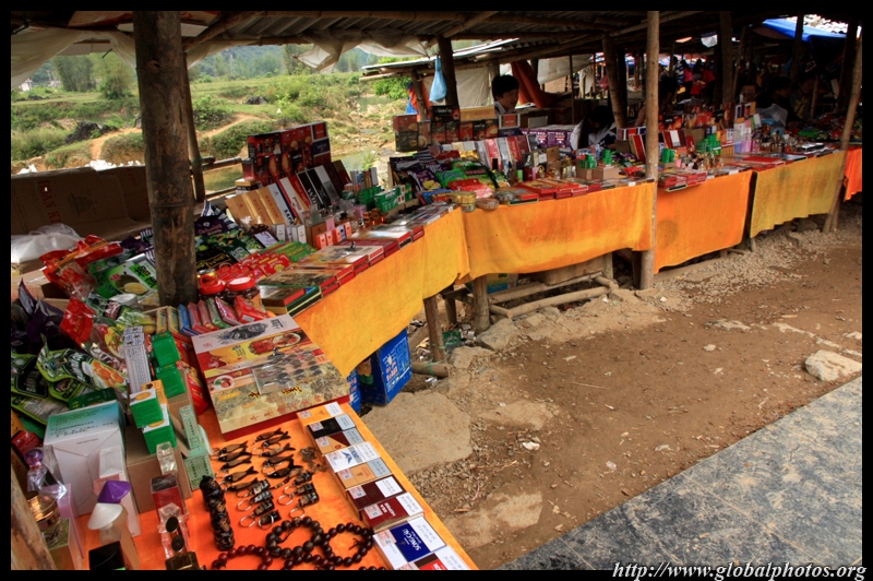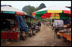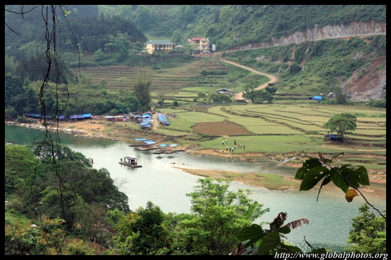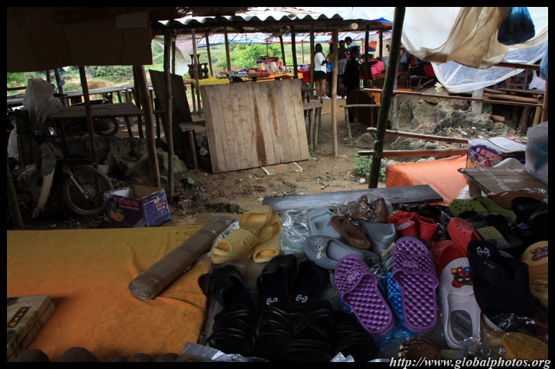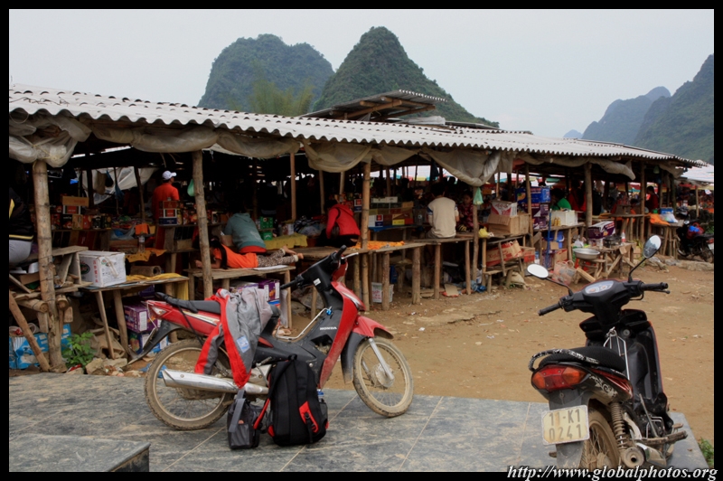 Notice the market is exclusively on the Vietnamese side of the border. The Chinese market is behind the trees in the background and doesn't actually front the border itself.