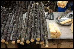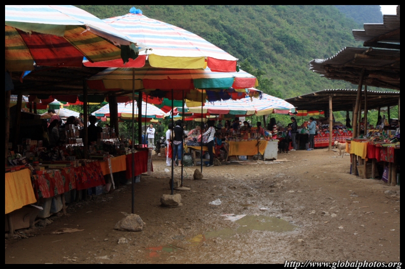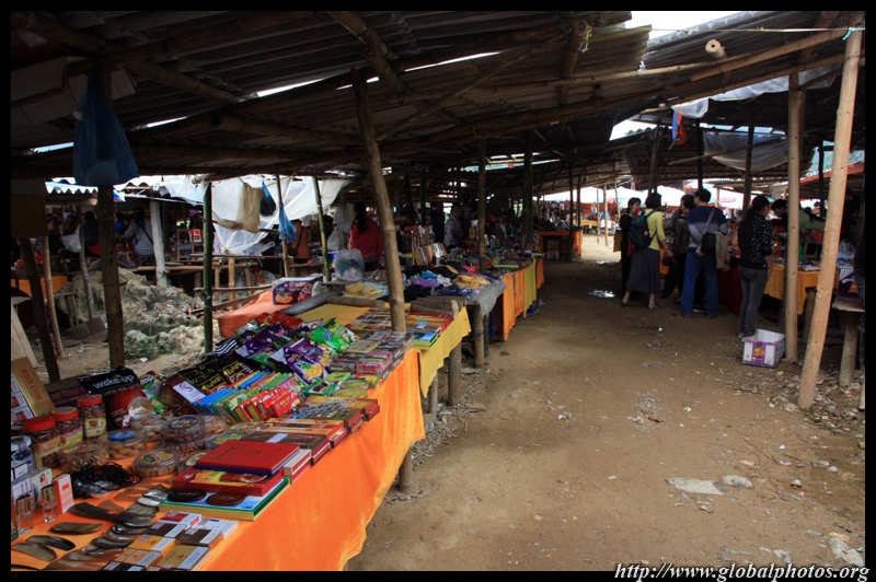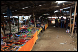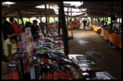 A short walk from the top of the falls is the land border. Again, there are no border guards. A bustling market extends along both sides of the border.