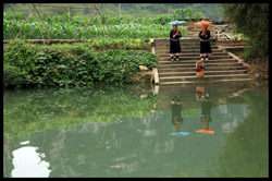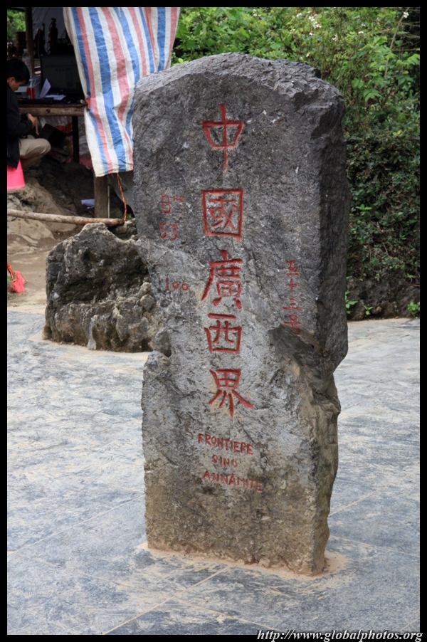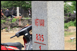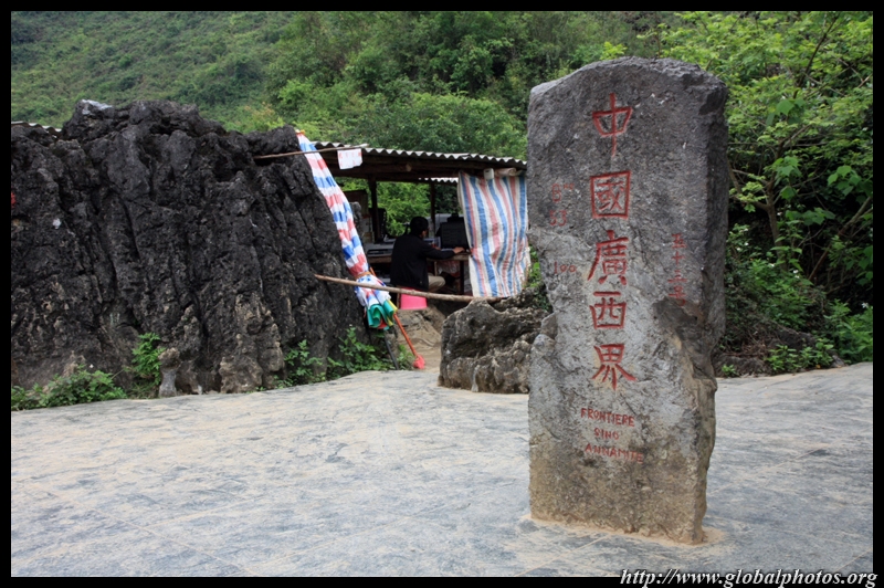 On this side of the river, you see the Chinese boundary marker. Across on the other side is the Vietnamese one.