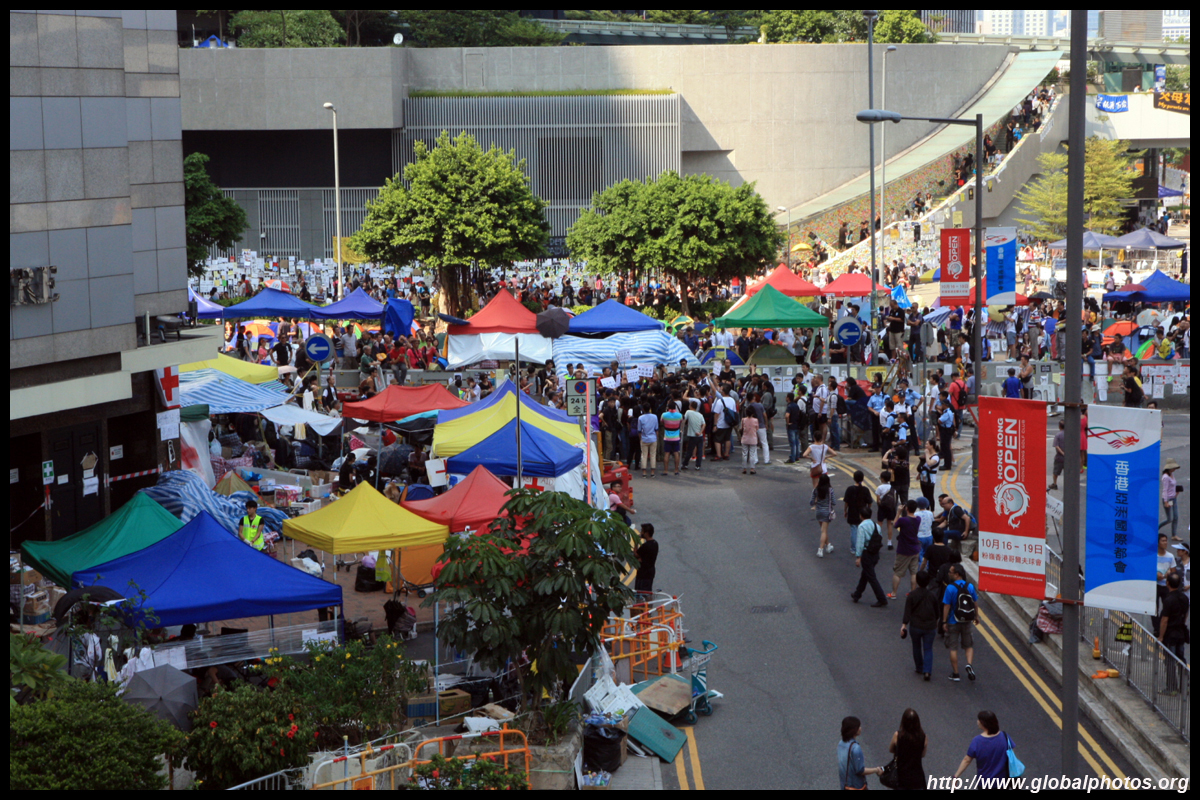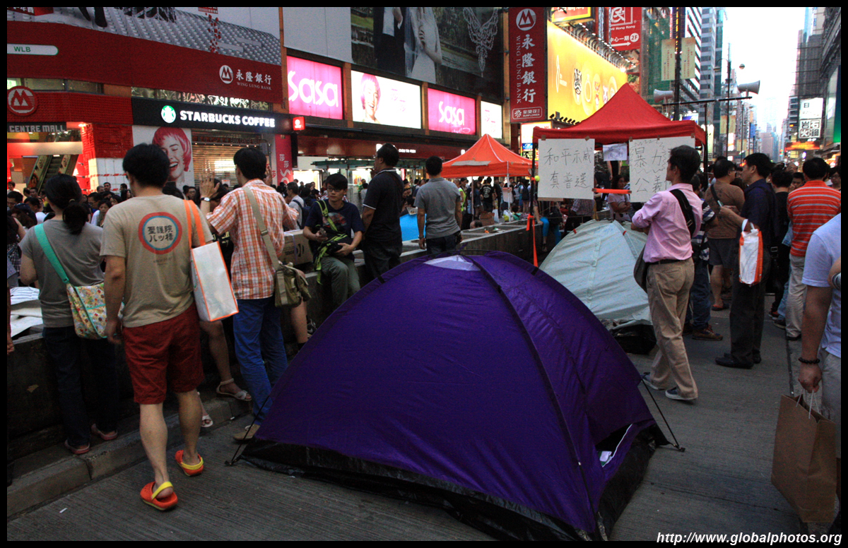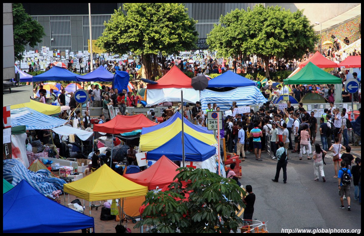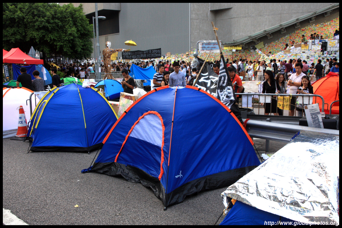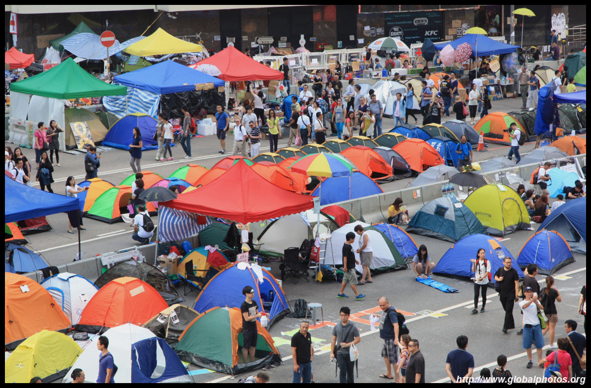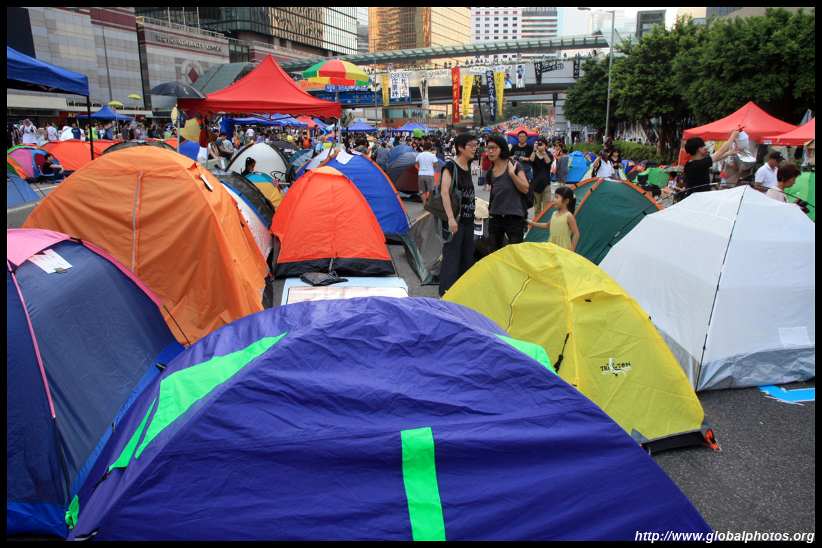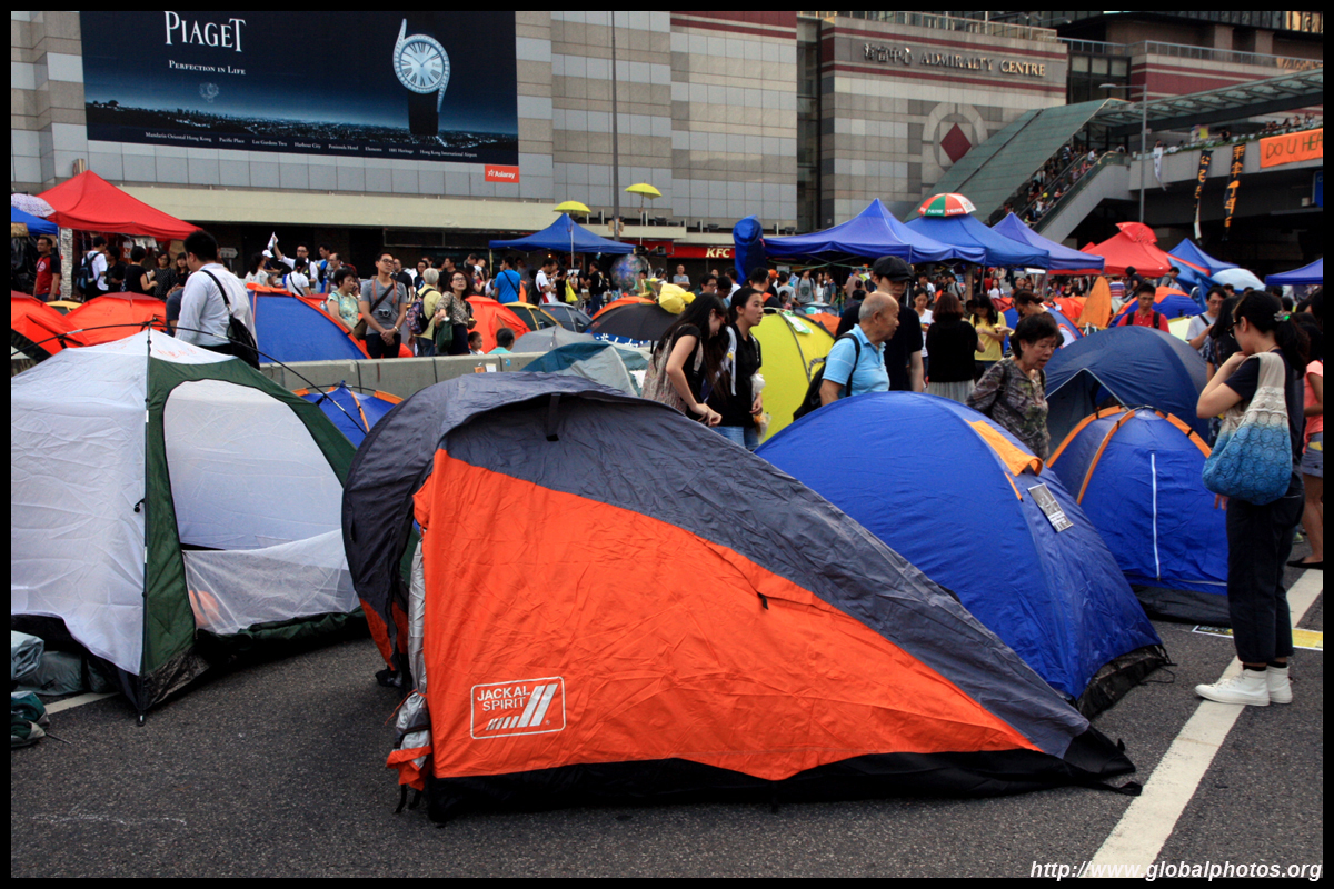 The Occupy Central civil disobedience protest began on September 28, 2014 to voice out against restrictions to universal suffrage being proposed. While originally meant to paralyze the financial district, spillover protests appeared in many parts of the city. The main protest camp was outside the government headquarters in Admiralty.