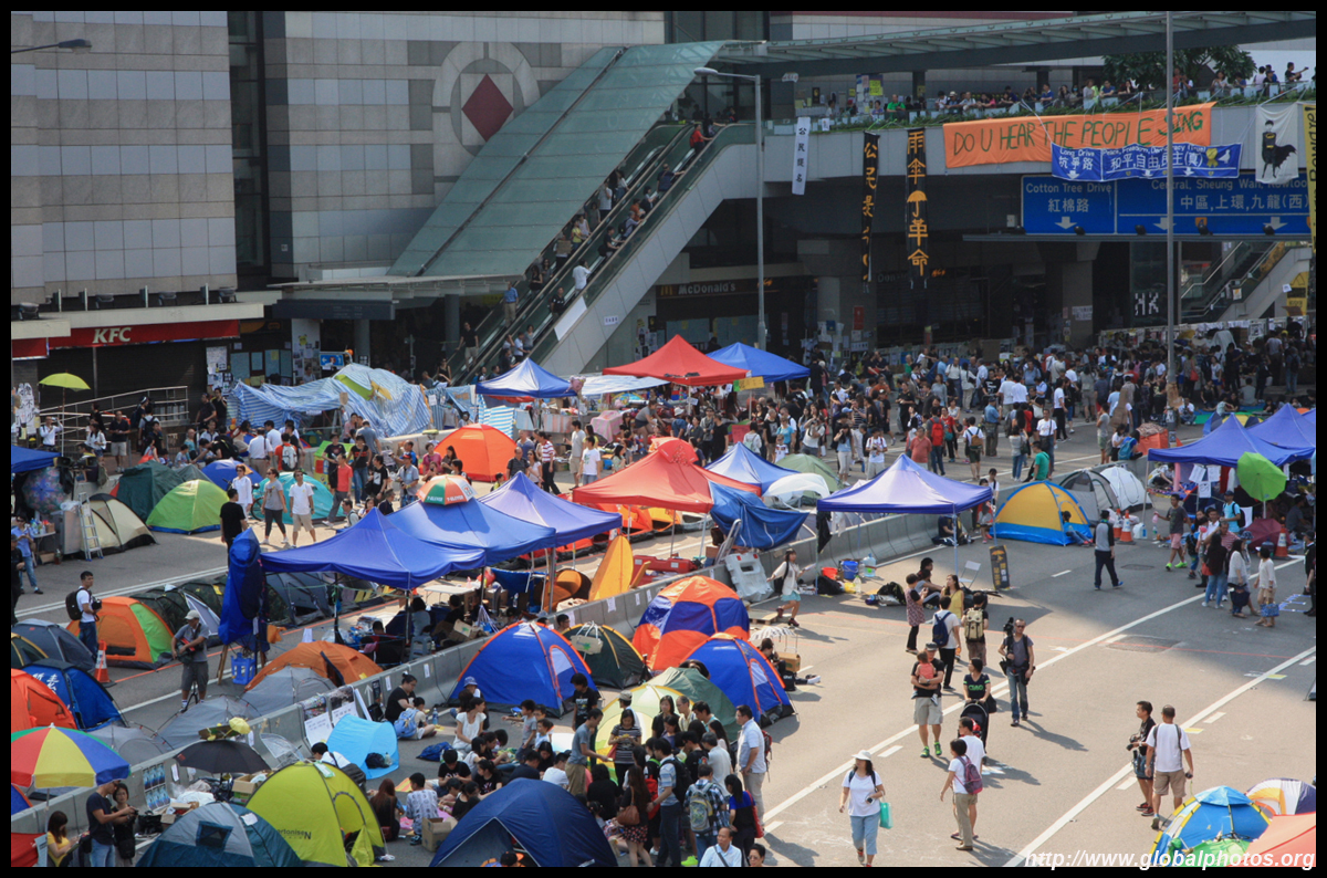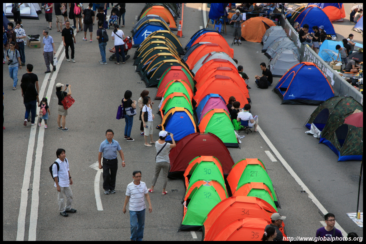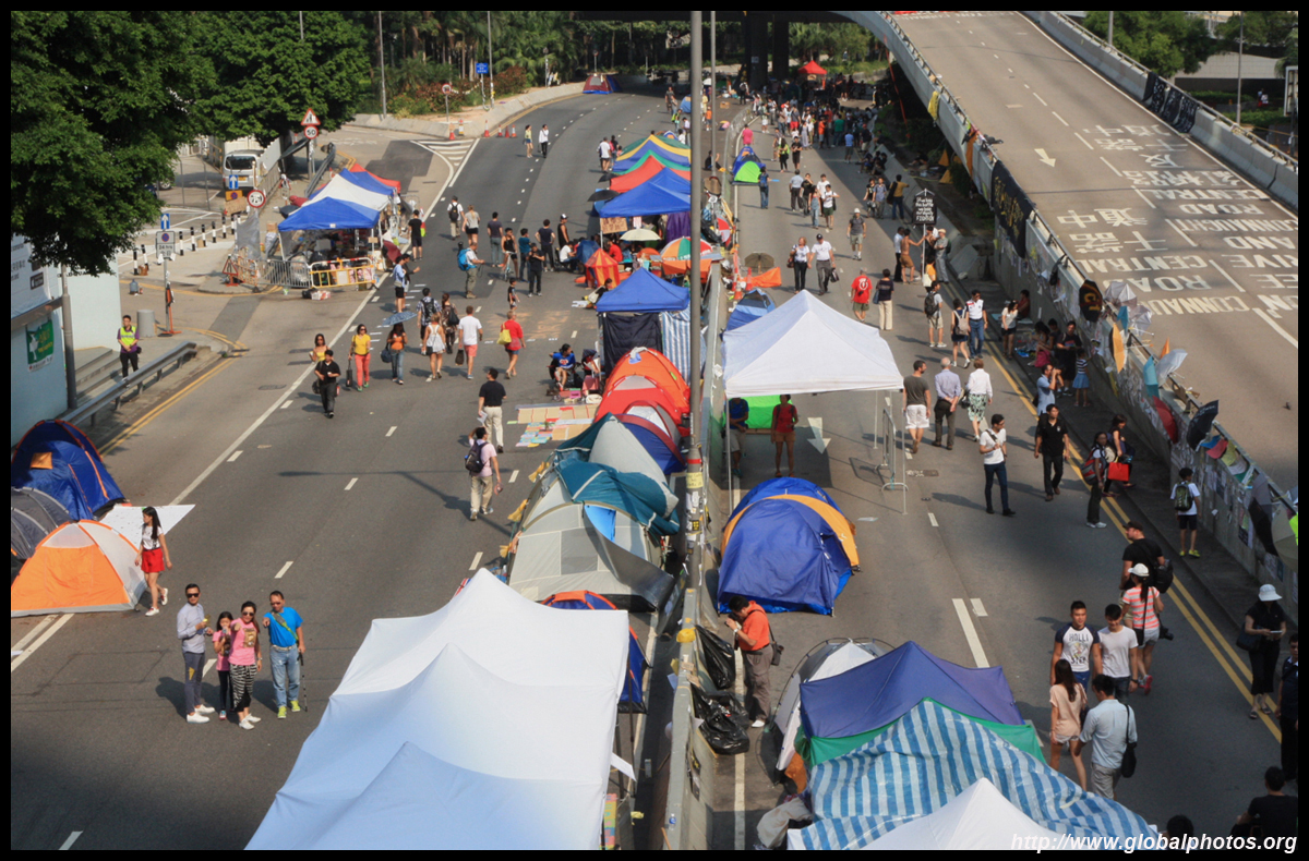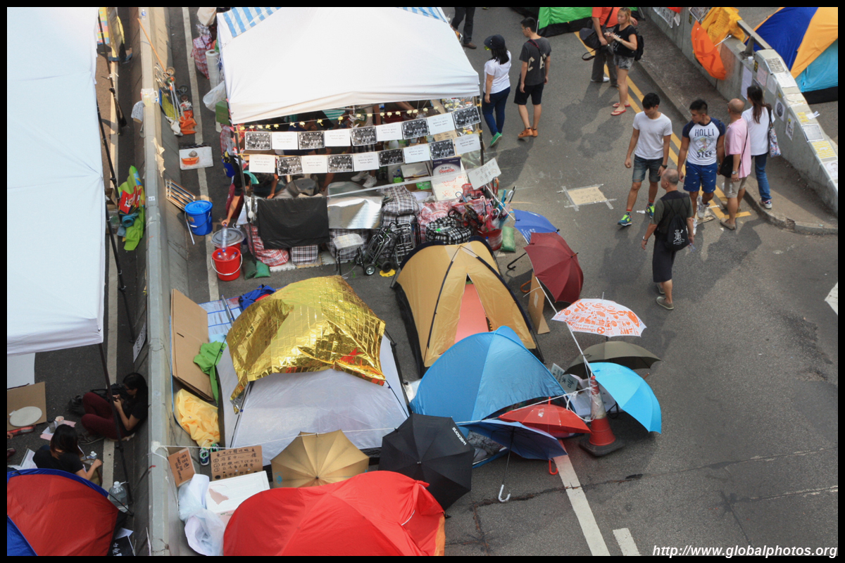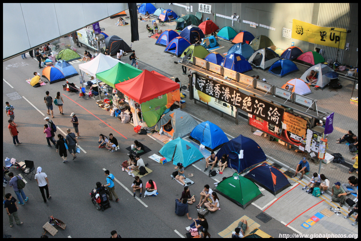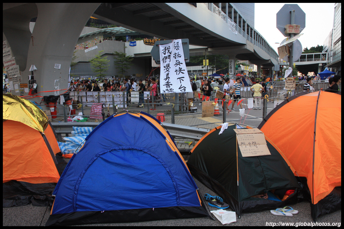 The Occupy Central civil disobedience protest began on September 28, 2014 to voice out against restrictions to universal suffrage being proposed. While originally meant to paralyze the financial district, spillover protests appeared in many parts of the city. The main protest camp was outside the government headquarters in Admiralty.