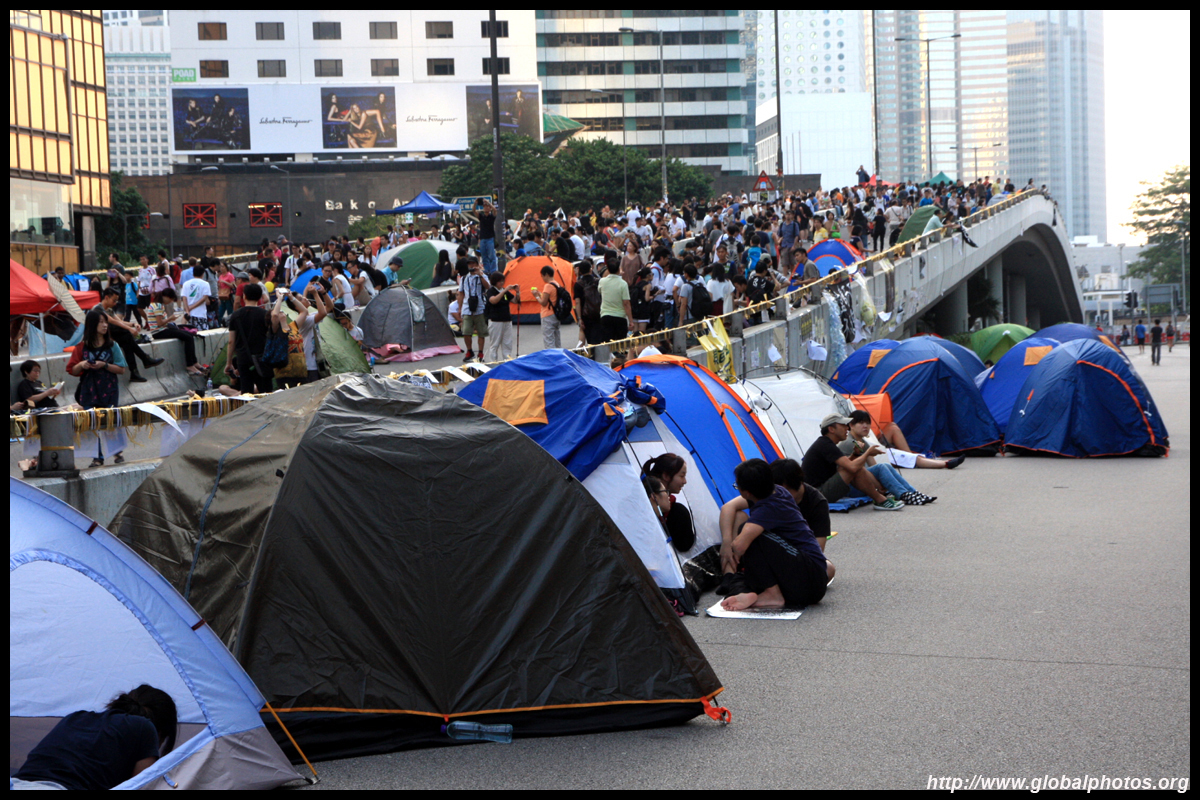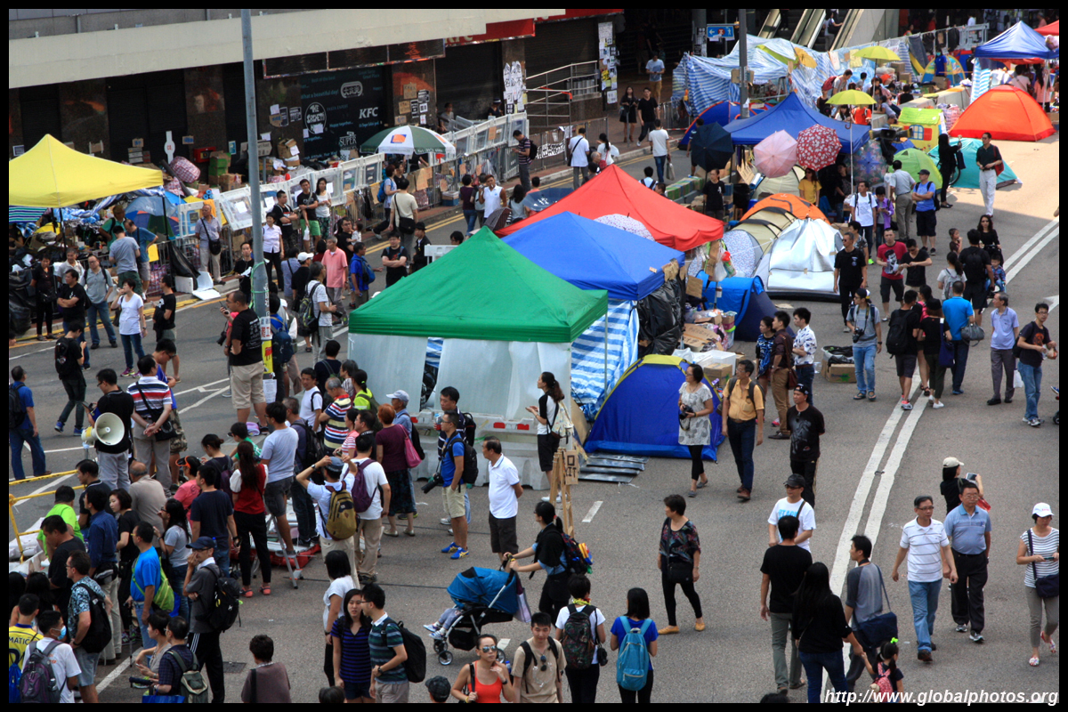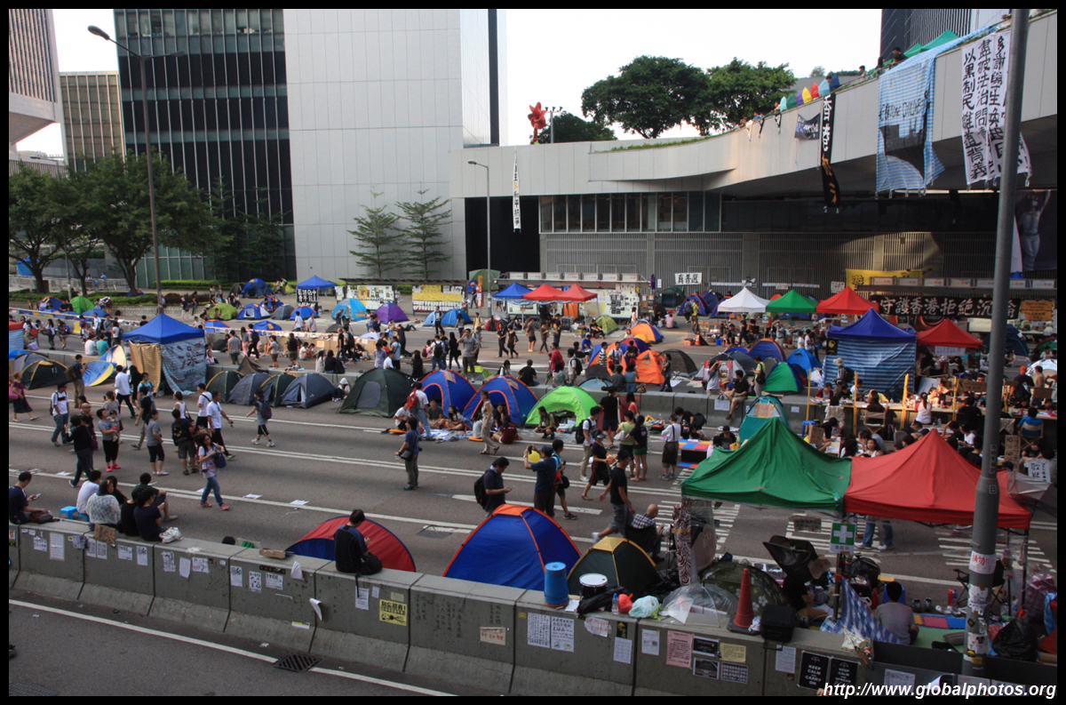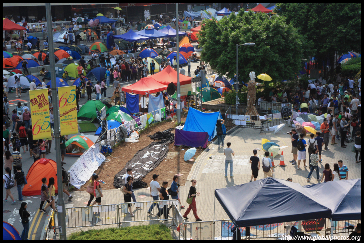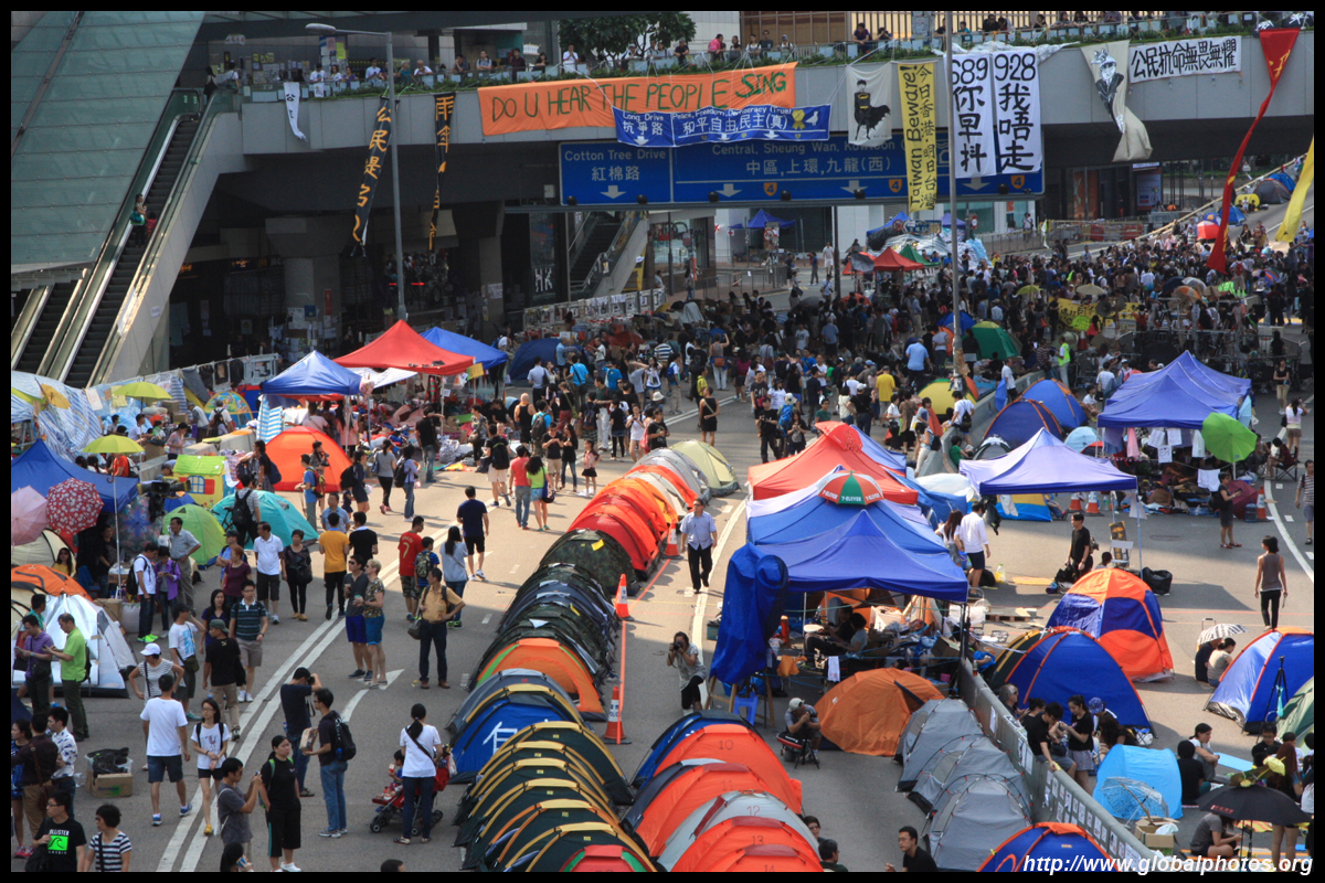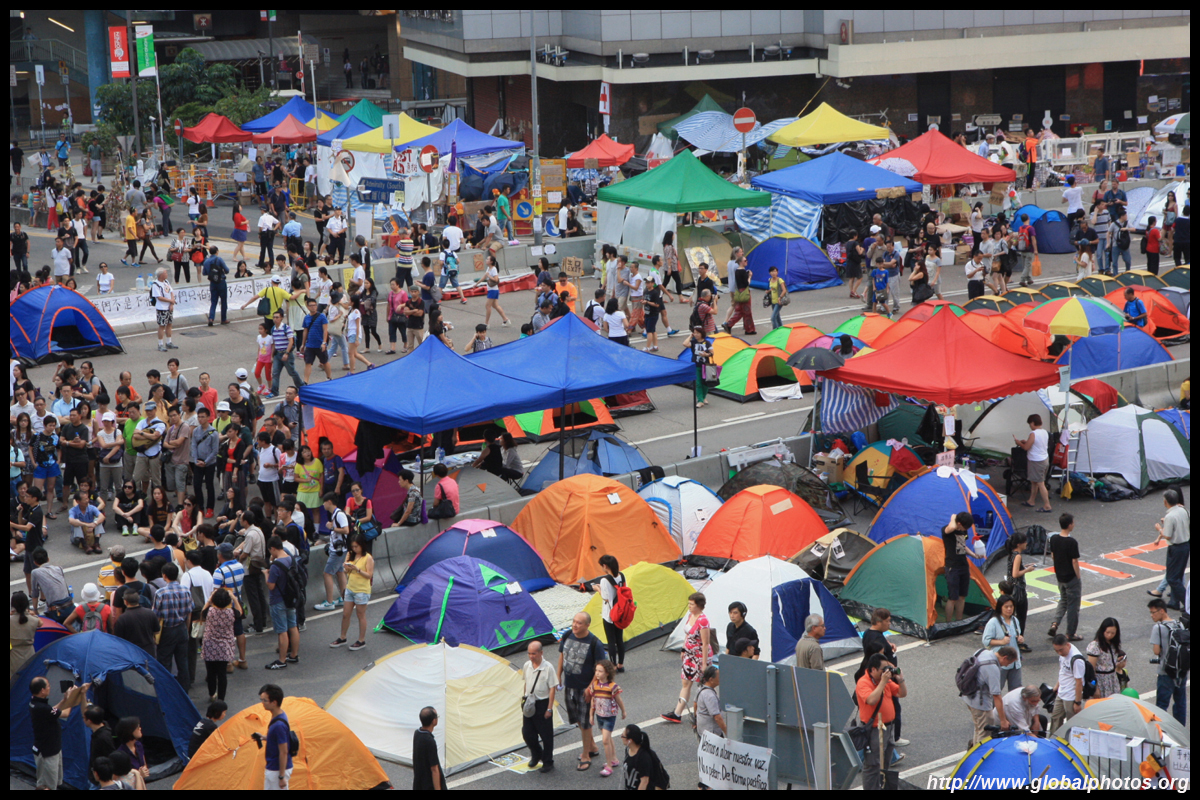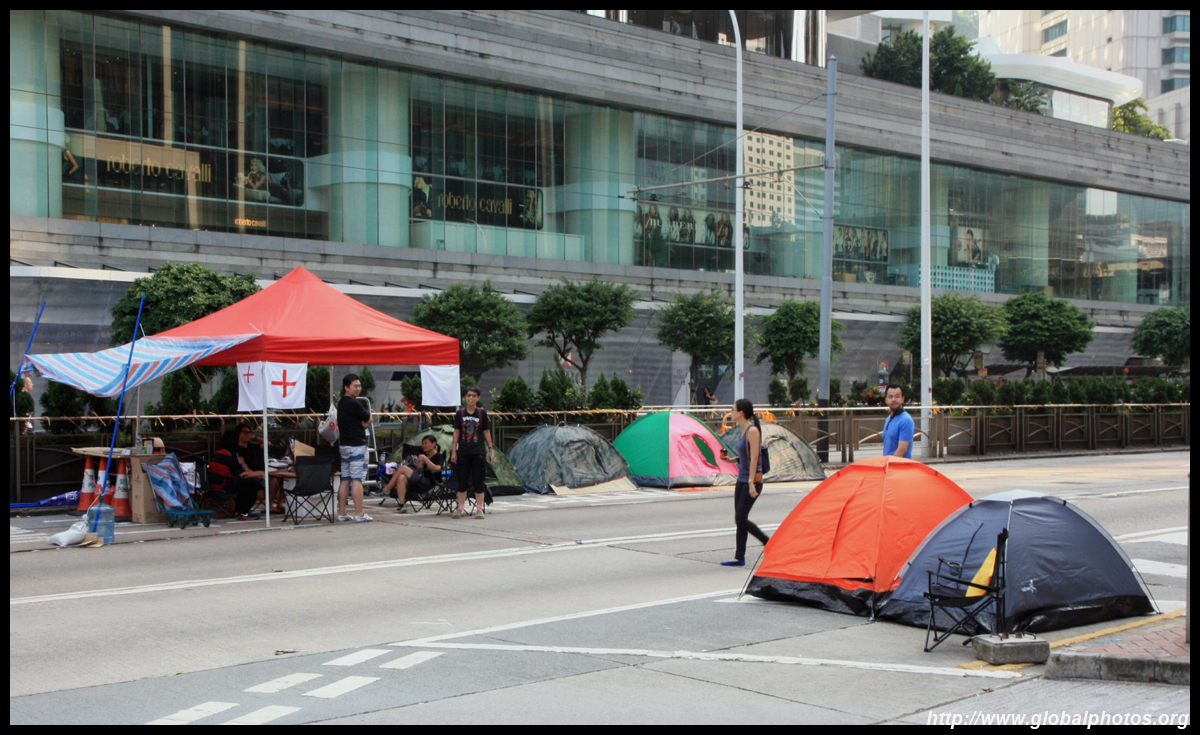 The Occupy Central civil disobedience protest began on September 28, 2014 to voice out against restrictions to universal suffrage being proposed. While originally meant to paralyze the financial district, spillover protests appeared in many parts of the city. The main protest camp was outside the government headquarters in Admiralty.