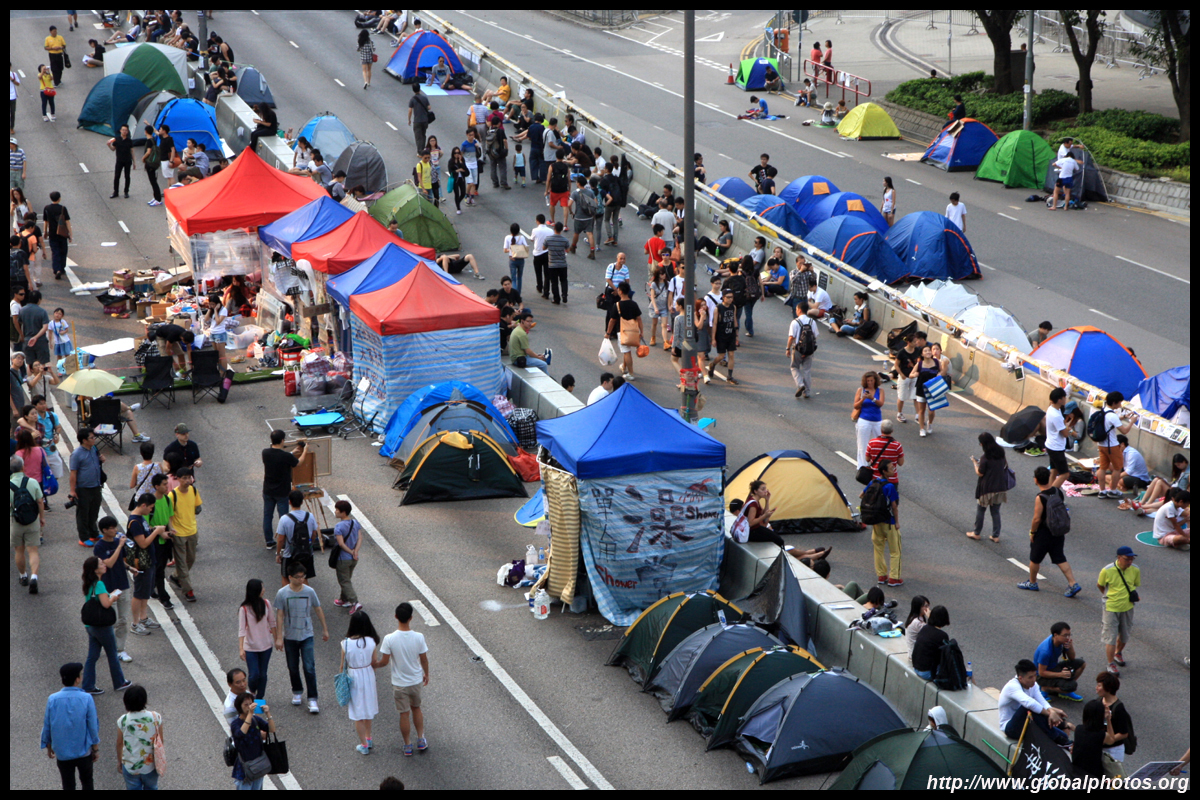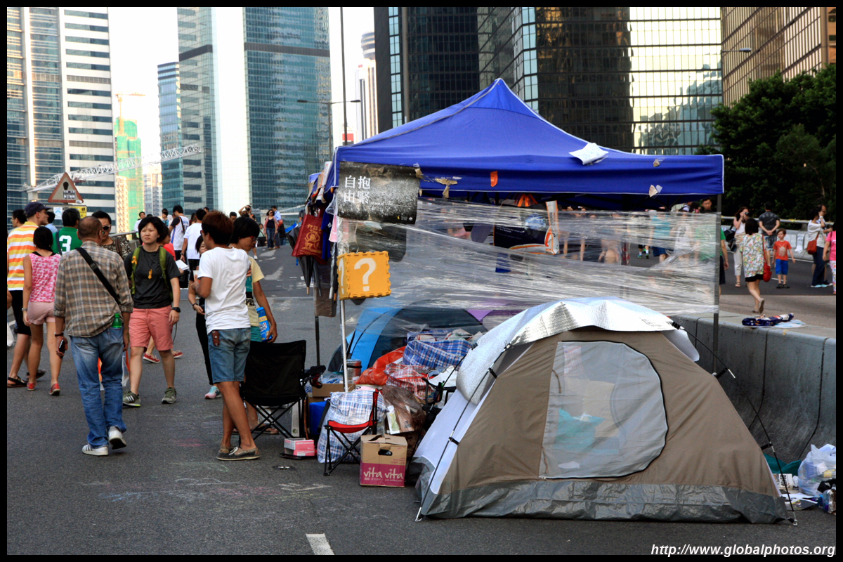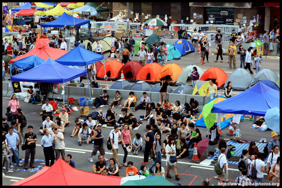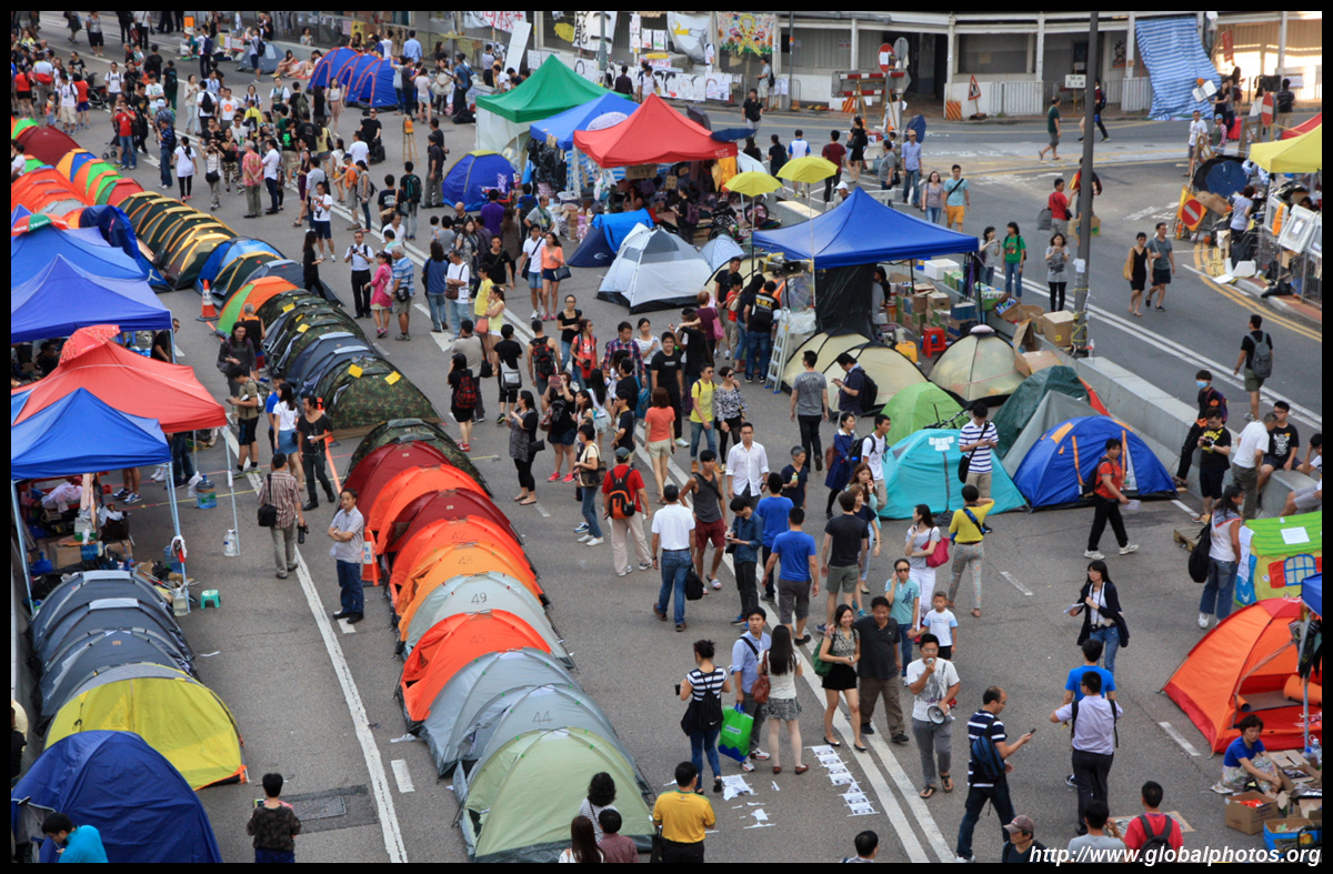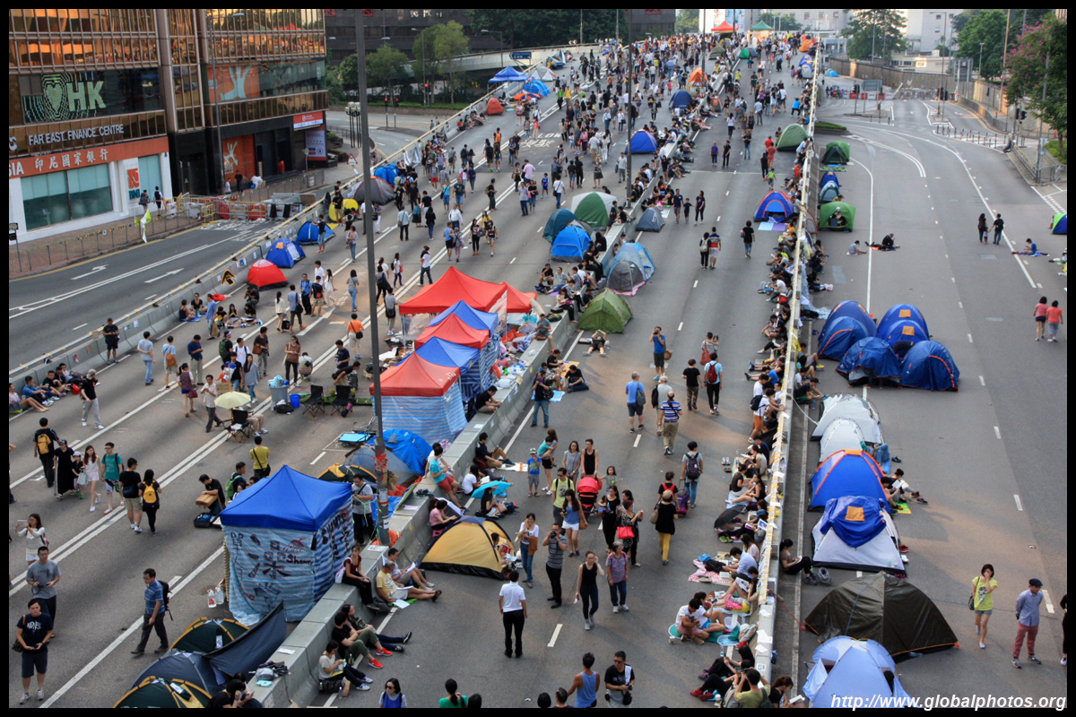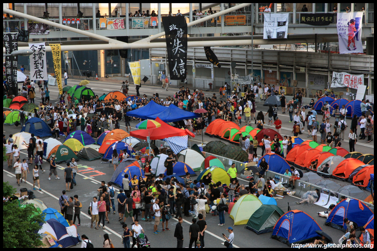 The Occupy Central civil disobedience protest began on September 28, 2014 to voice out against restrictions to universal suffrage being proposed. While originally meant to paralyze the financial district, spillover protests appeared in many parts of the city. The main protest camp was outside the government headquarters in Admiralty.